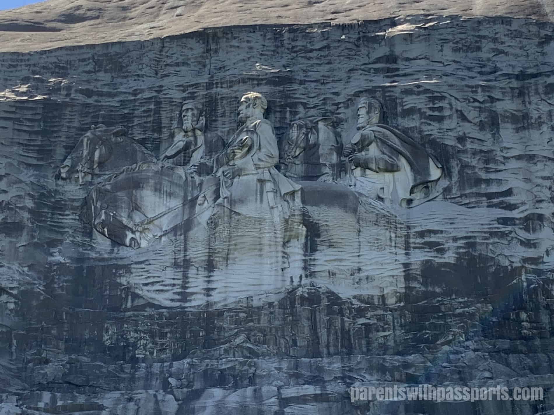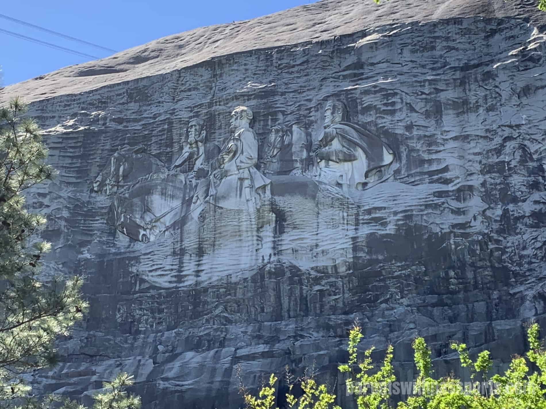 Stone Mountain is at once a popular attraction and a controversial monument.  The mountain has historical ties to the Klu Klux Klan and its record-breaking sculpture is in fact a Confederate memorial.  The three men carved into the side of the mountain are Confederate President Jefferson Davis and Confederate Generals Robert E. Lee and Thomas “Stonewall” Jackson.
