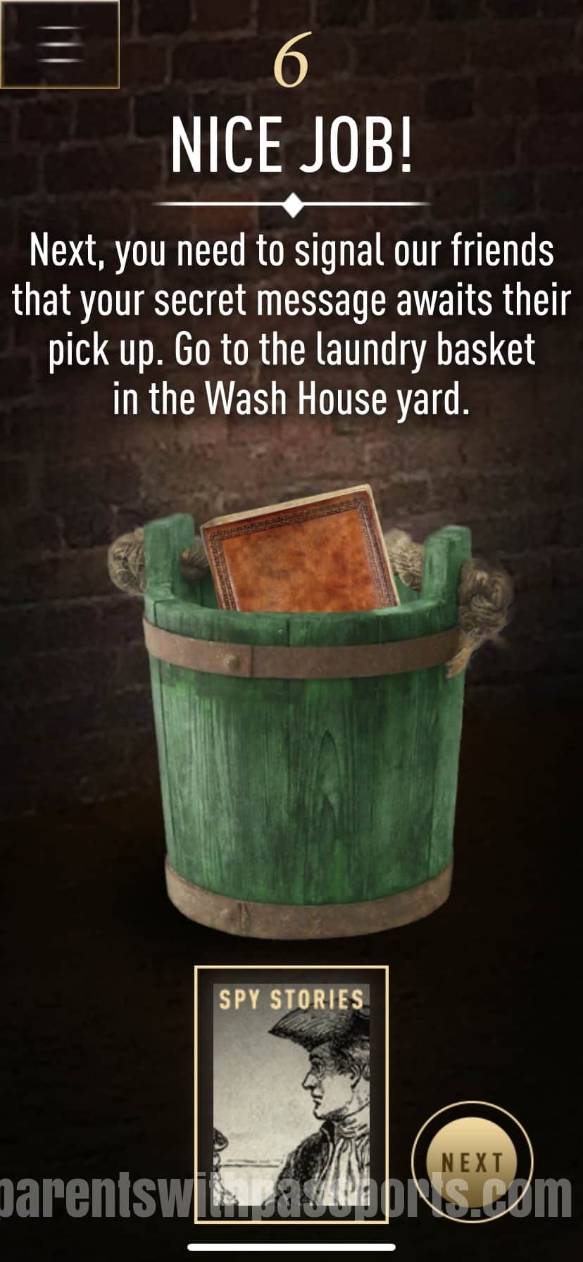 There are 8 different challenges that focus on different espionage techniques, from ciphers to decoding. The first clue told us go to the well at the edge of the 12 acre field. Once in the correct place, the app recognizes that you are there, plays a quick video story and gives you a challenge to complete. After you successfully complete the challenge, you are directed to the next location.