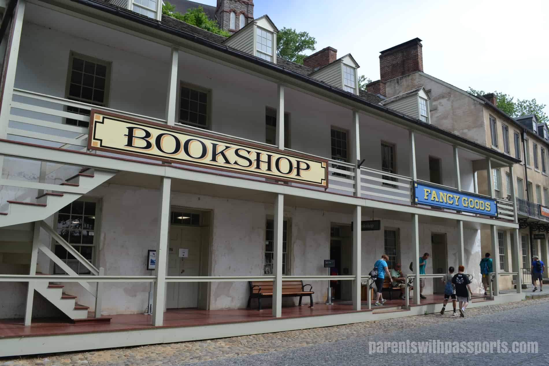 The bus dropped us off in the Lower Town. From the shuttle stop, we had a nice view of Shenandoah Street. My boys were intrigued by the “Fancy Goods” store and disappointed to find it is not a stand-alone store of all fancy goods but just a part of the National Park Bookshop. While the fancy goods may not have their own store, the bookshop had some neat things and was definitely worth a stop.