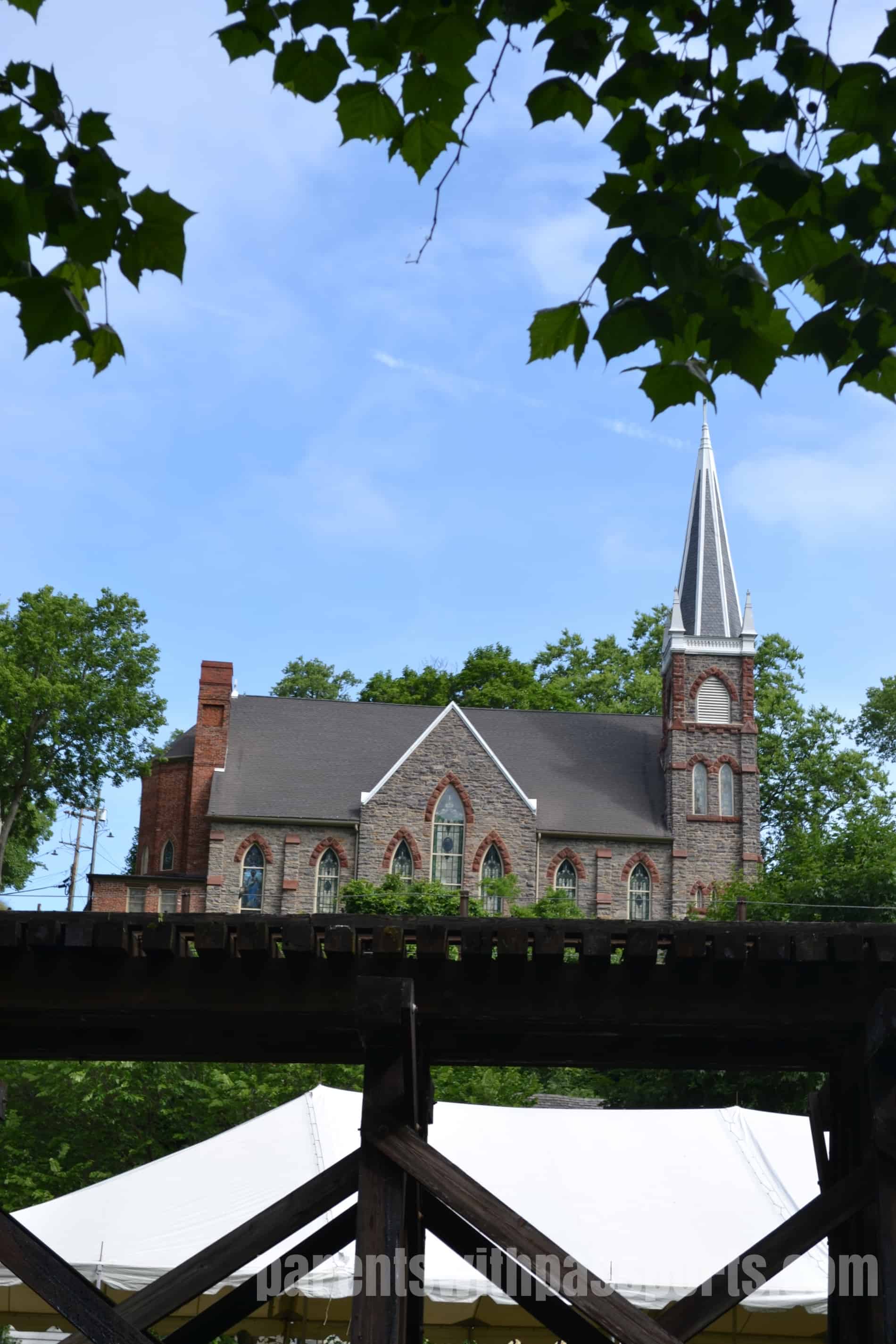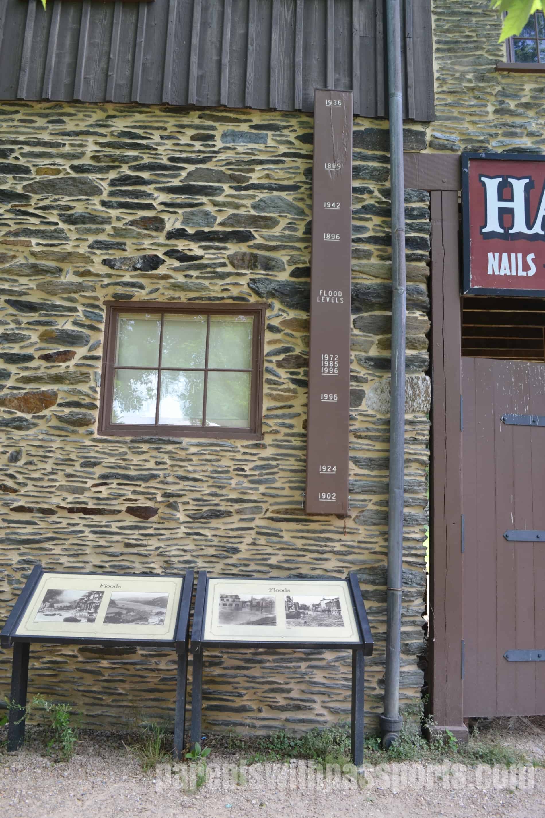 There was a pretty view of St. Peter’s Church, sitting high on the hill above town. And my boys were amazed at the measuring stick showing different flood levels along the Shenandoah over the years.
