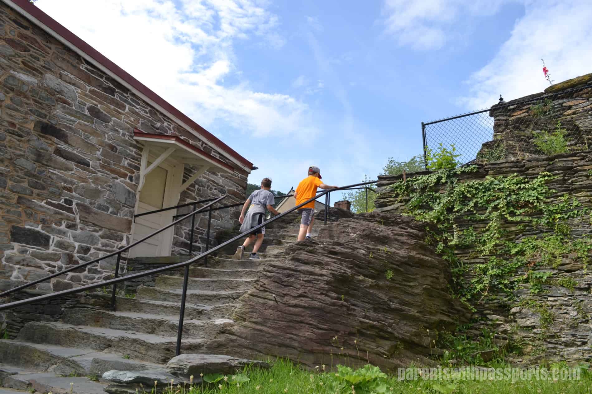 The walk up to the rock is a fairly challenging climb that is actually part of the Appalachian Trail. An innocuous but well-worn set of stone steps tucked away on the side of the road is part of the trail and leads you to Jefferson’s Rock. Although our distance travelled on the trail was short, it was neat to say we had been on the Appalachian Trail. A sign at the base of the steps identified landmarks you could reach along the trail in Harpers Ferry or challenged you to “keep walking 1,000 miles south to Springer Mountain, Georgia.”