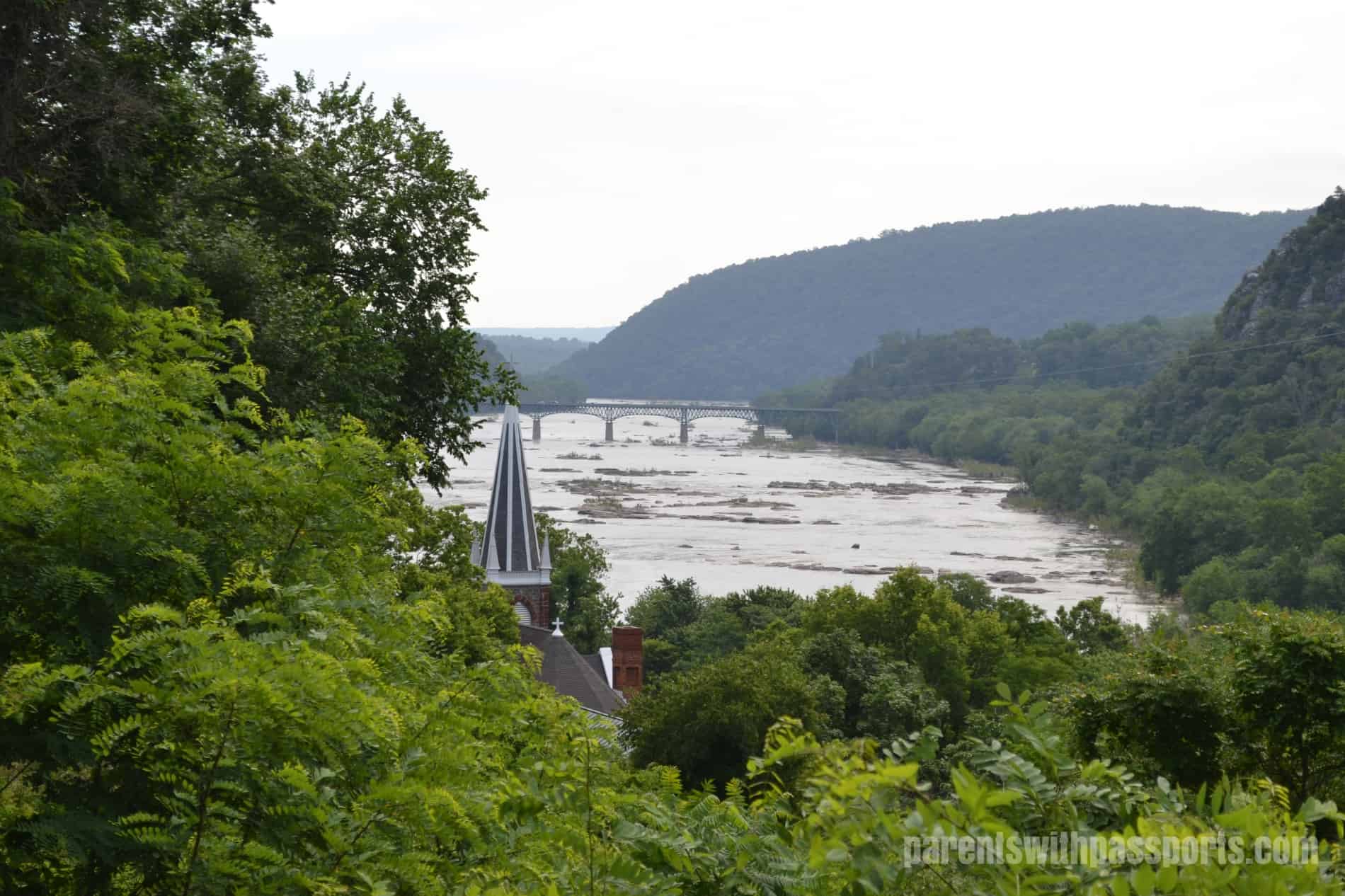 We arrived on a Saturday evening and stayed at a Hampton Inn in the neighboring town of Charles Town. Because it is a national historic site, there are only 2 hotels actually in Harpers Ferry, and they didn’t seem like anything to write home about. Charles Town was super close by, had a variety of hotels to choose from, and offered many different restaurant options as well. (It also has a casino but that didn’t really fit into our family-friendly trip planning.)