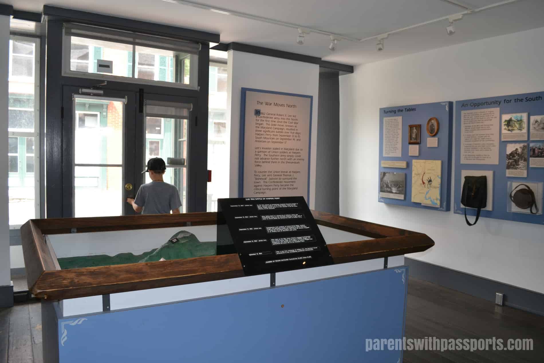 We stopped in a museum called “Defeat and Victory: The 1862 Battle of Harpers Ferry.” Located inside an historic building, it had a bit of an amateur feel to it. It looked almost like a collection of high school history projects (albeit very well done ones) . There were several informal museums like this throughout town, where you just walked inside an old building and looked at its various displays.