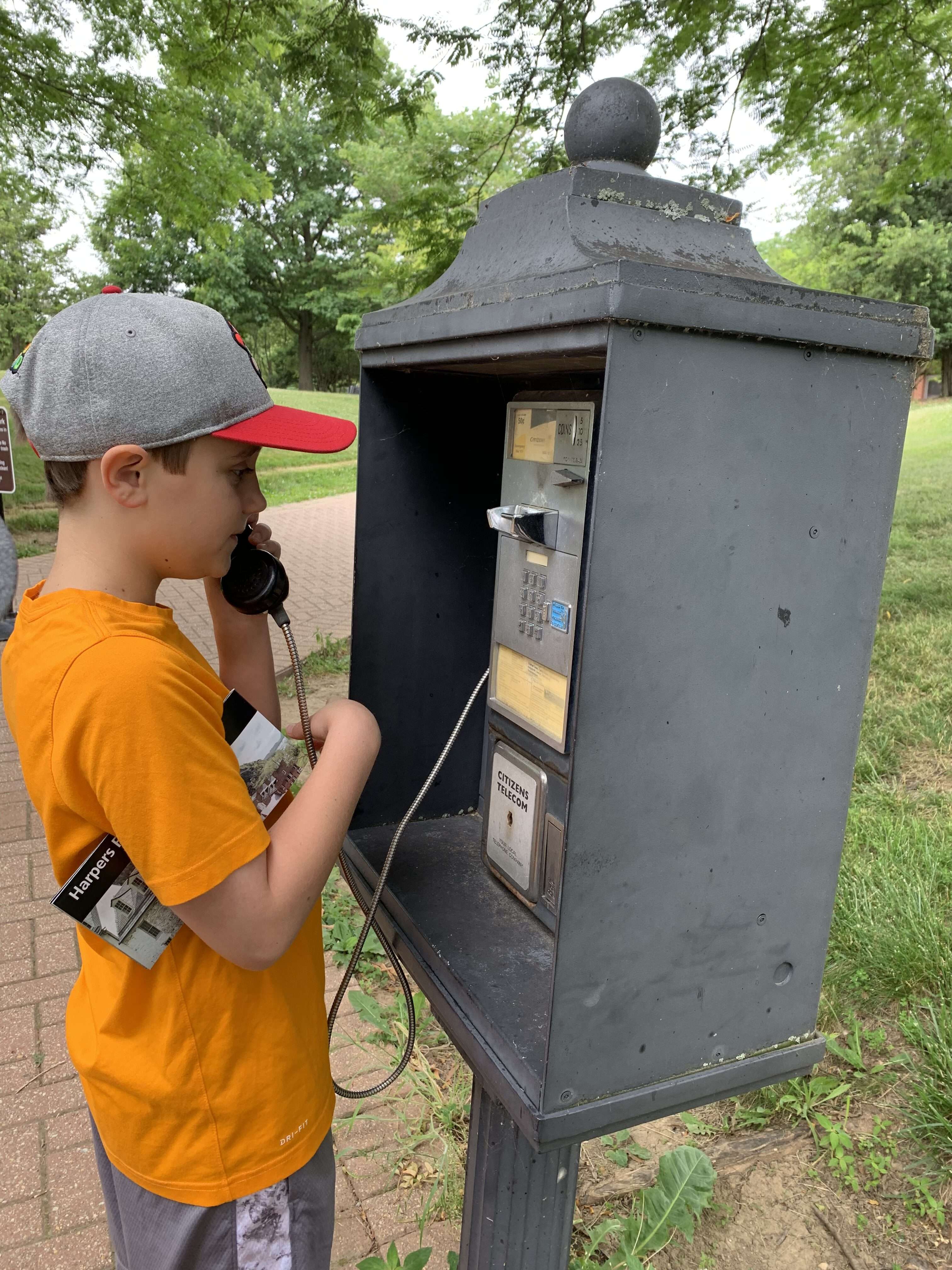 Before we even left the visitor center, the boys had their first historic sighting. A pay phone! I had to explain to them what this crazy device was.