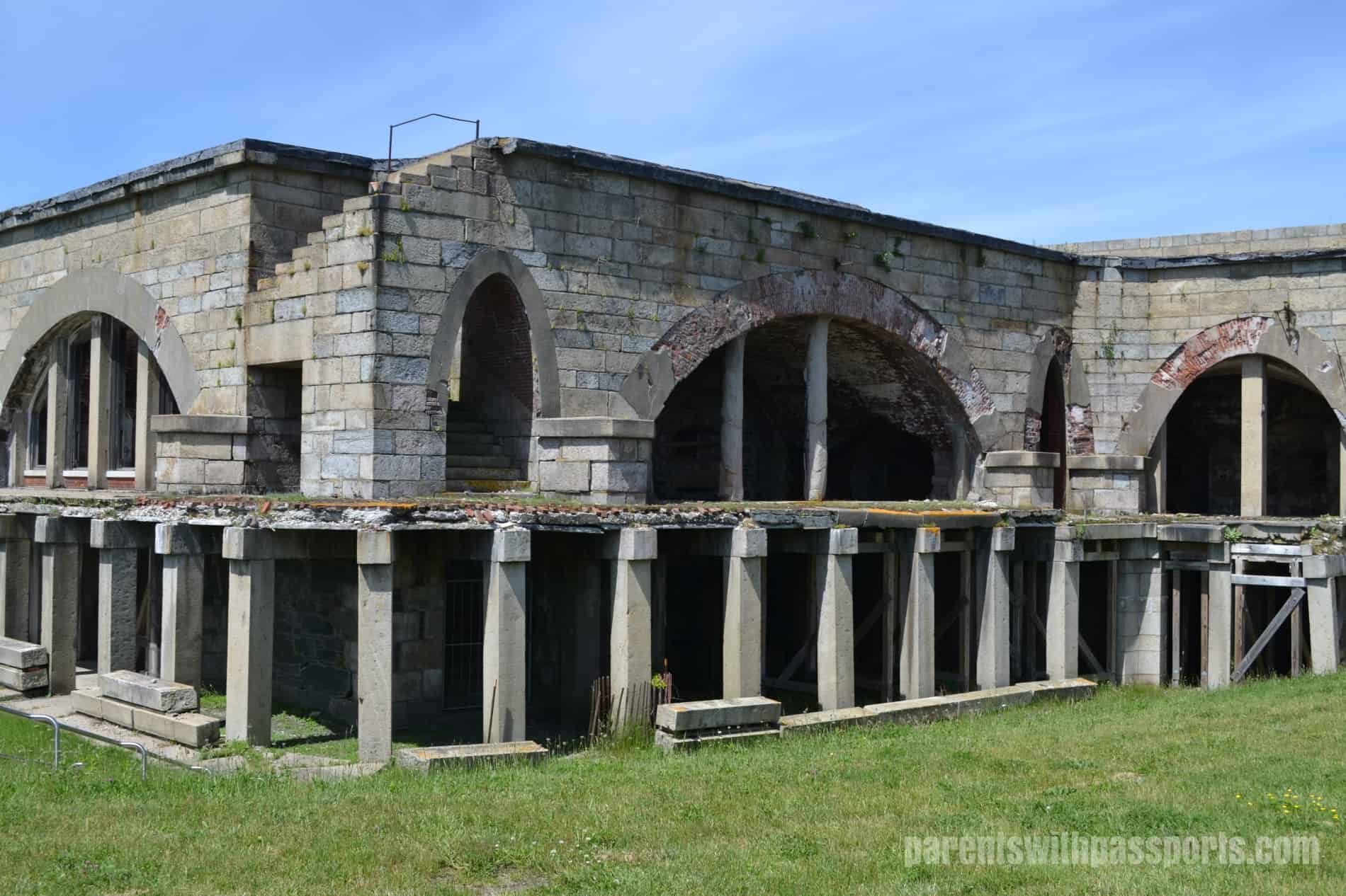 As our tour guide kept pointing out, “nobody came”.  As he also pointed out, if they had come and a battle had been fought there, this impressive fortress would have been designated as a national park and well-preserved.  Thankfully, the Fort Adams Trust was formed in the 1990s and they began restoration of the fort.  You can see their progress today, but there is still a long way to go.
