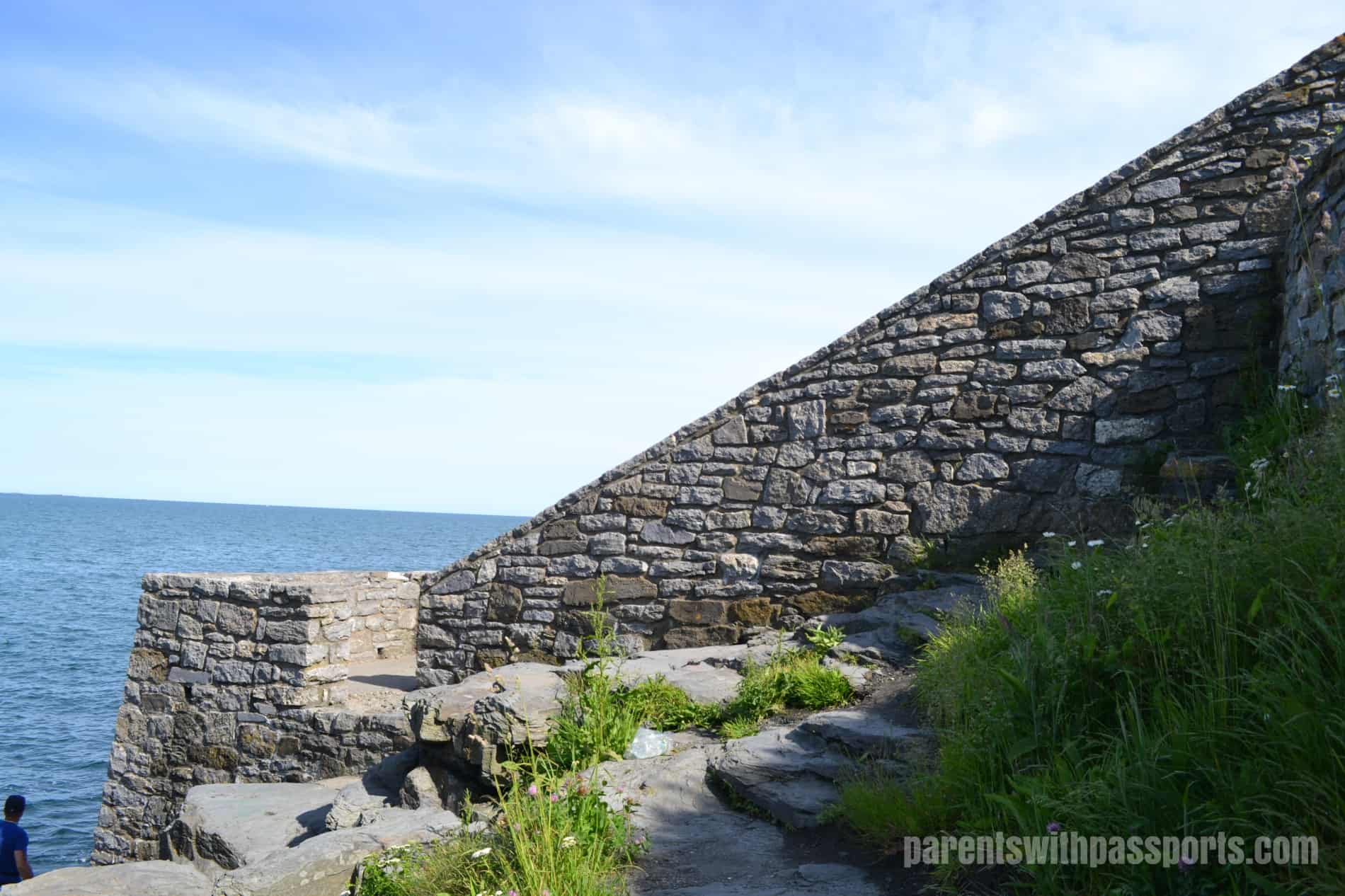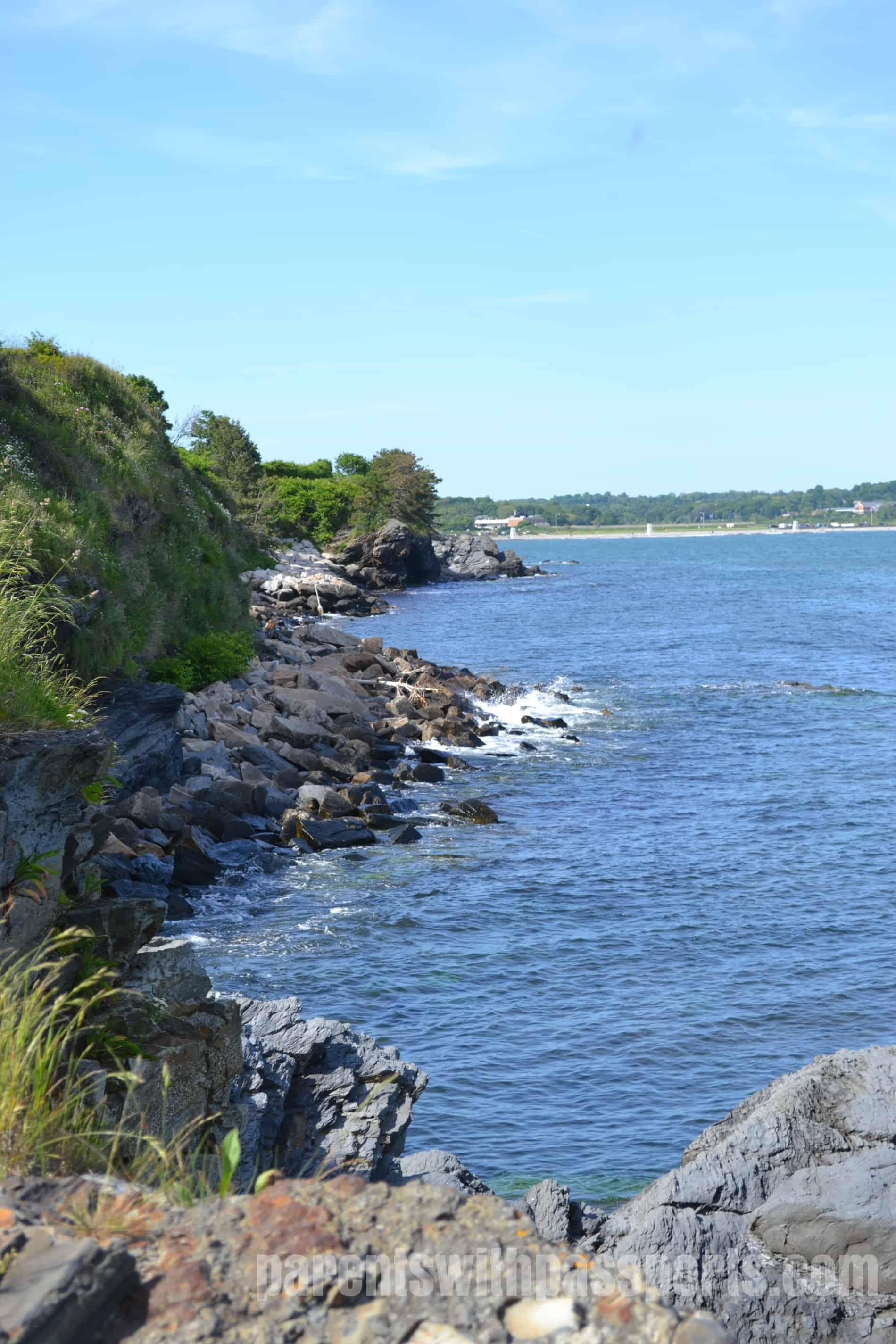 The trail ranges from easy, paved paths to rocky, uneven terrain.  The northern section of the trail is the easiest and safest for children.  Starting at Easton Beach (the north end of the trail), the paths are wide and paved and fences are in place to protect you from tumbling over the cliff’s edge.