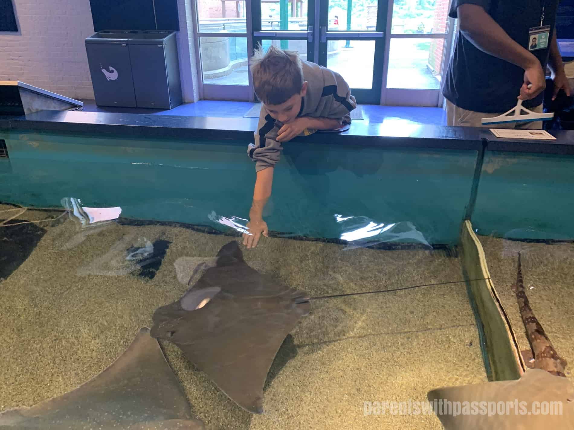 My boys love a good touch tank, and the Maritime Aquarium had a few. First up was the sting ray touch pool. They loved gently touching their smooth backs as they swam boy.
