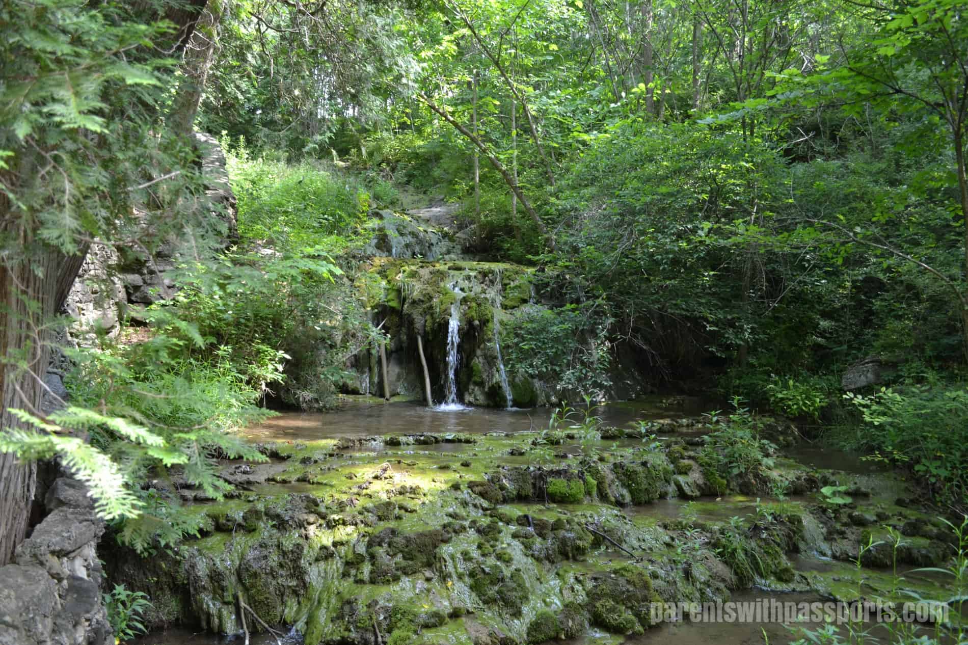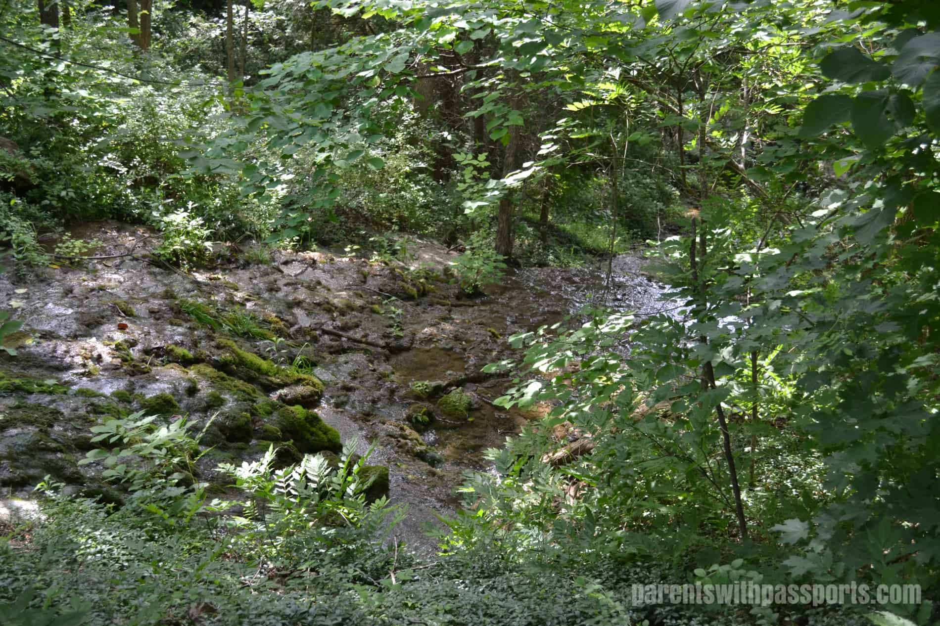 Once you reach the bottom, there is a small building where they collect your tickets and grant you entry to the park itself. The Cedar Creek Trail follows along the creek and brings you quickly to the Natural Bridge. I will admit that the boys weren’t super excited about this last stop on our road trip (which I sort of sprung on them at the last minute), but when we rounded the corner and saw the bridge, they both immediately said simply but emphatically “wow”.