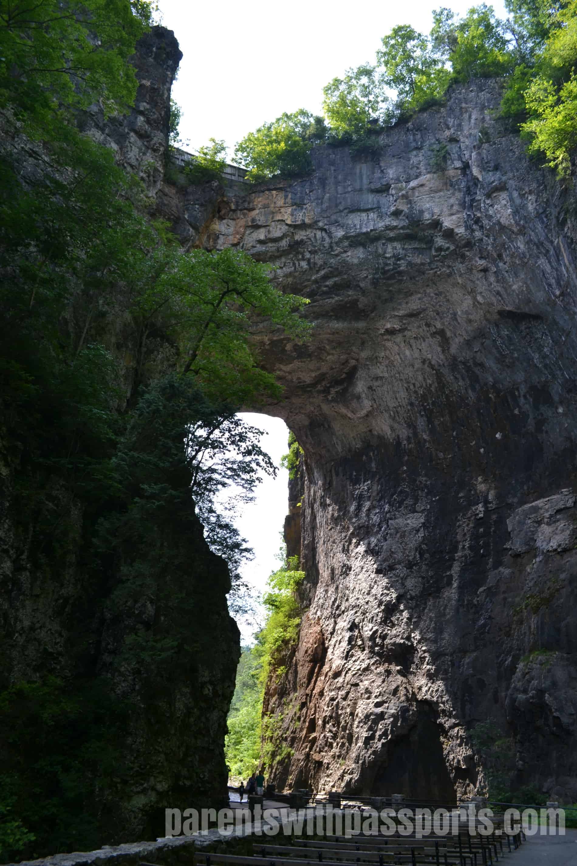 I had one last stop planned for the final day of our road trip – Natural Bridge, VA. The namesake feature of a Virginia state park, Natural Bridge is a 215-foot tall limestone gorge carved out by Cedar Creek. In addition to the bridge itself, Natural Bridge State Park includes hiking trails, waterfalls, and an Indian Village.