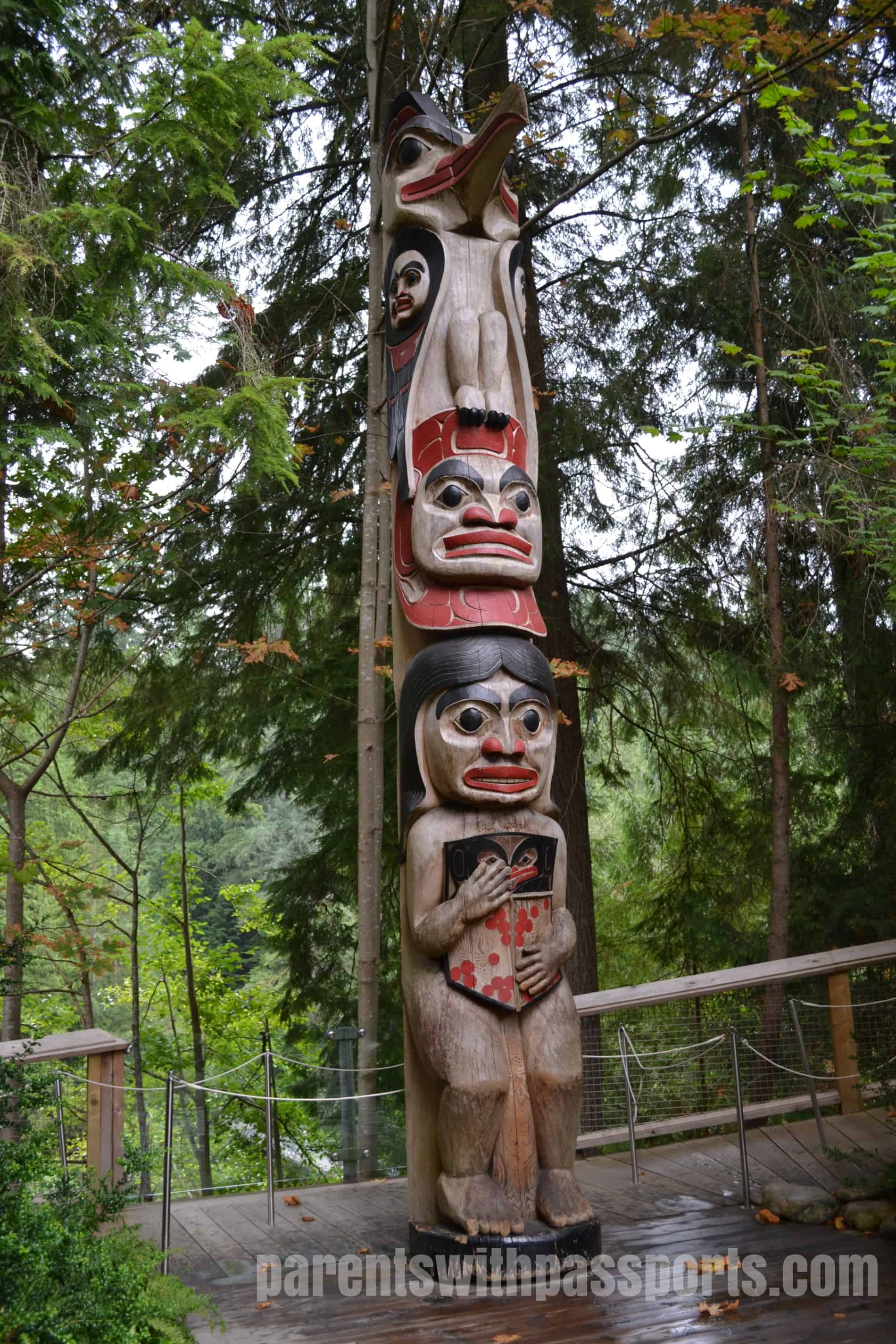 There is plenty to do on the other side of the bridge too. Our boys loved the Treetops Adventure, which is a series of viewing platforms and suspension bridges connecting 8 250-year old Douglas Fir trees. With the bridges as high as 110 feet, the Capilano website boasts that it “offers a squirrel’s eye view of a thriving coastal forest.” My boys definitely enjoyed scurrying around among the treetops.