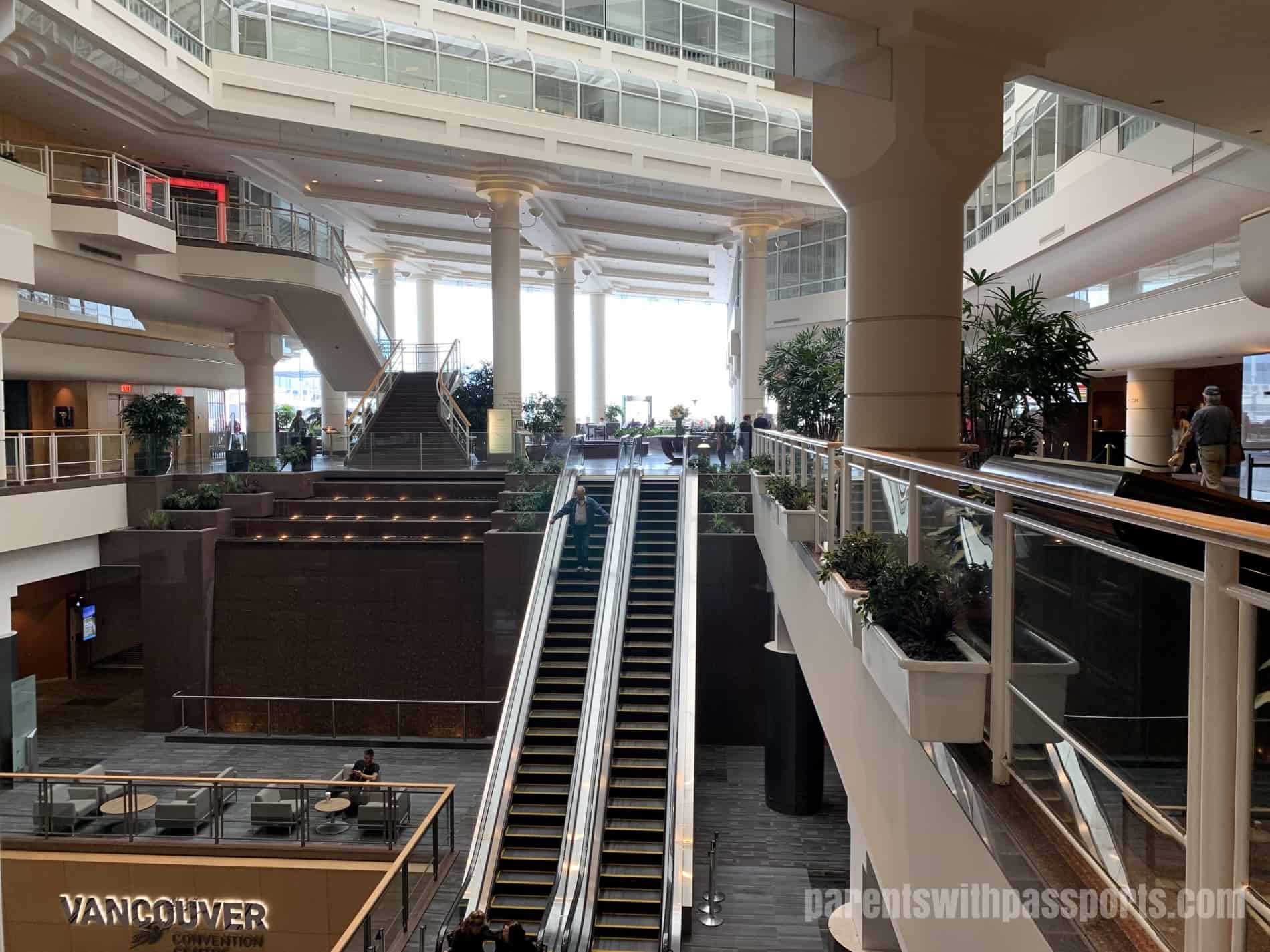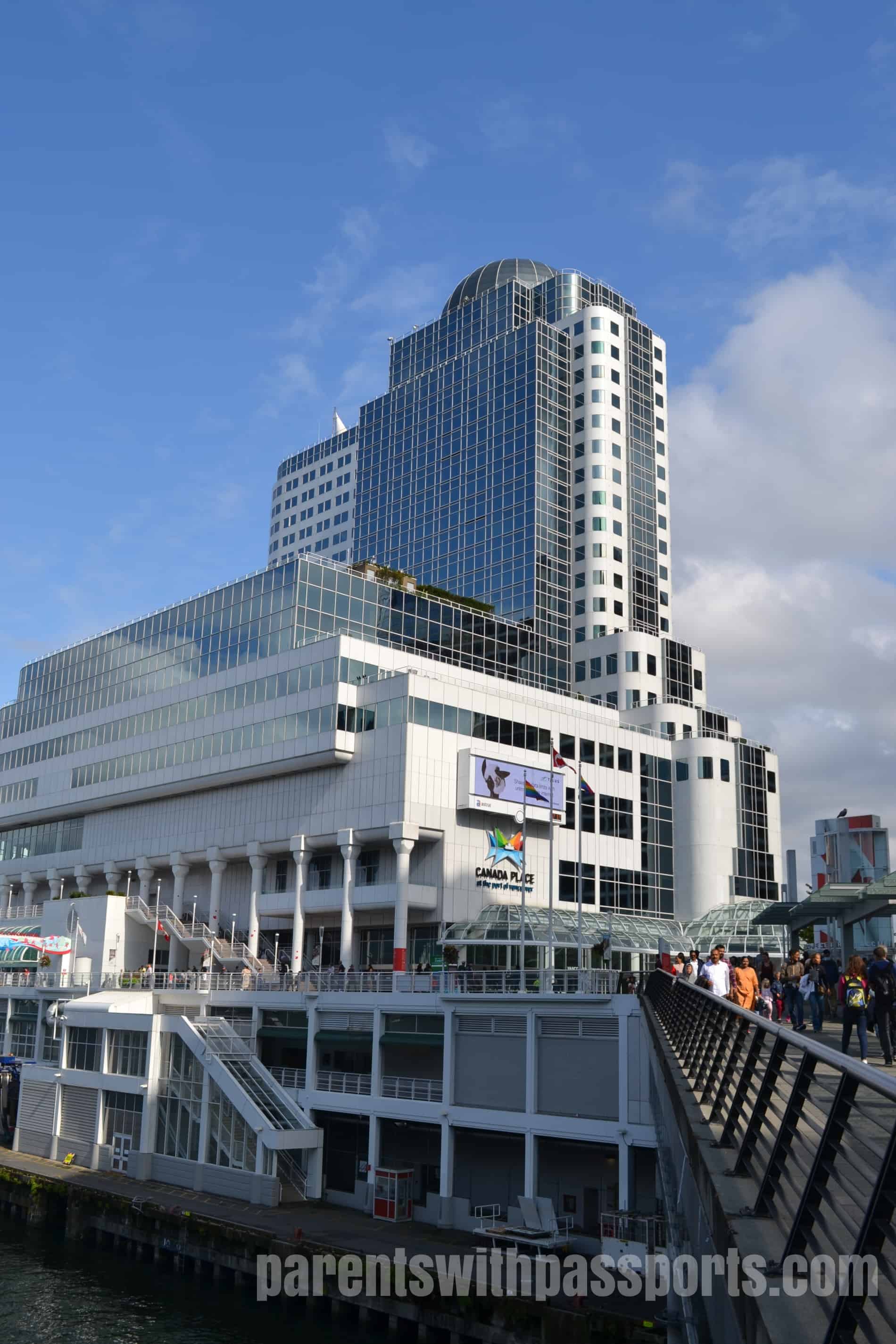 The hotel is actually attached to the cruise terminal. Canada Place is a mishmash of venues all rolled in to one. A convention center, hotel, office building, and cruise terminal are all housed in this complex. It has multiple entrances and can be confusing at first but basically all entrances will eventually lead to the hotel escalators. (The convention center occupies the first two levels of the complex.)