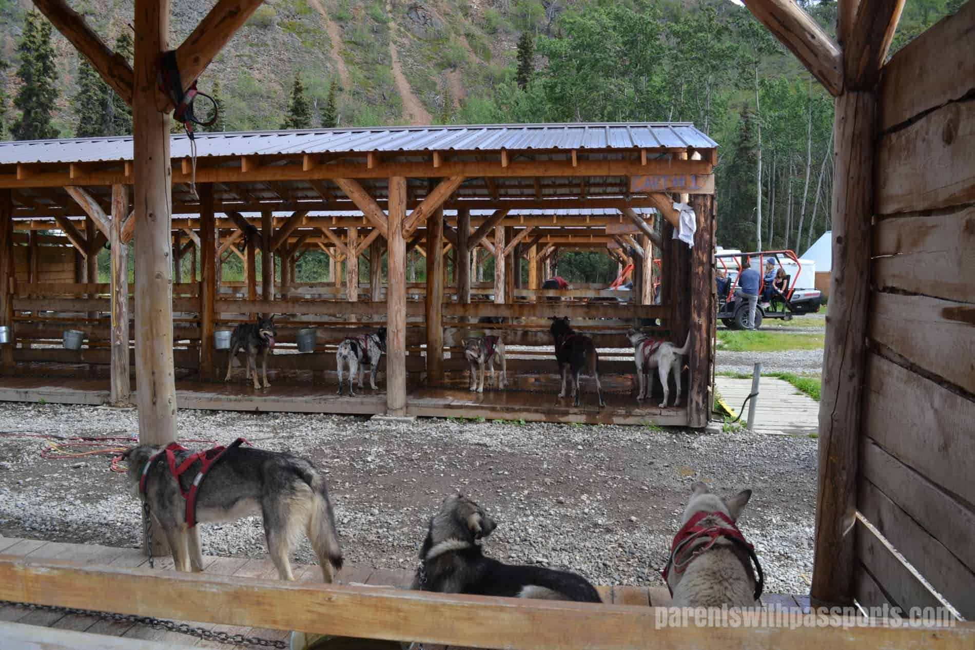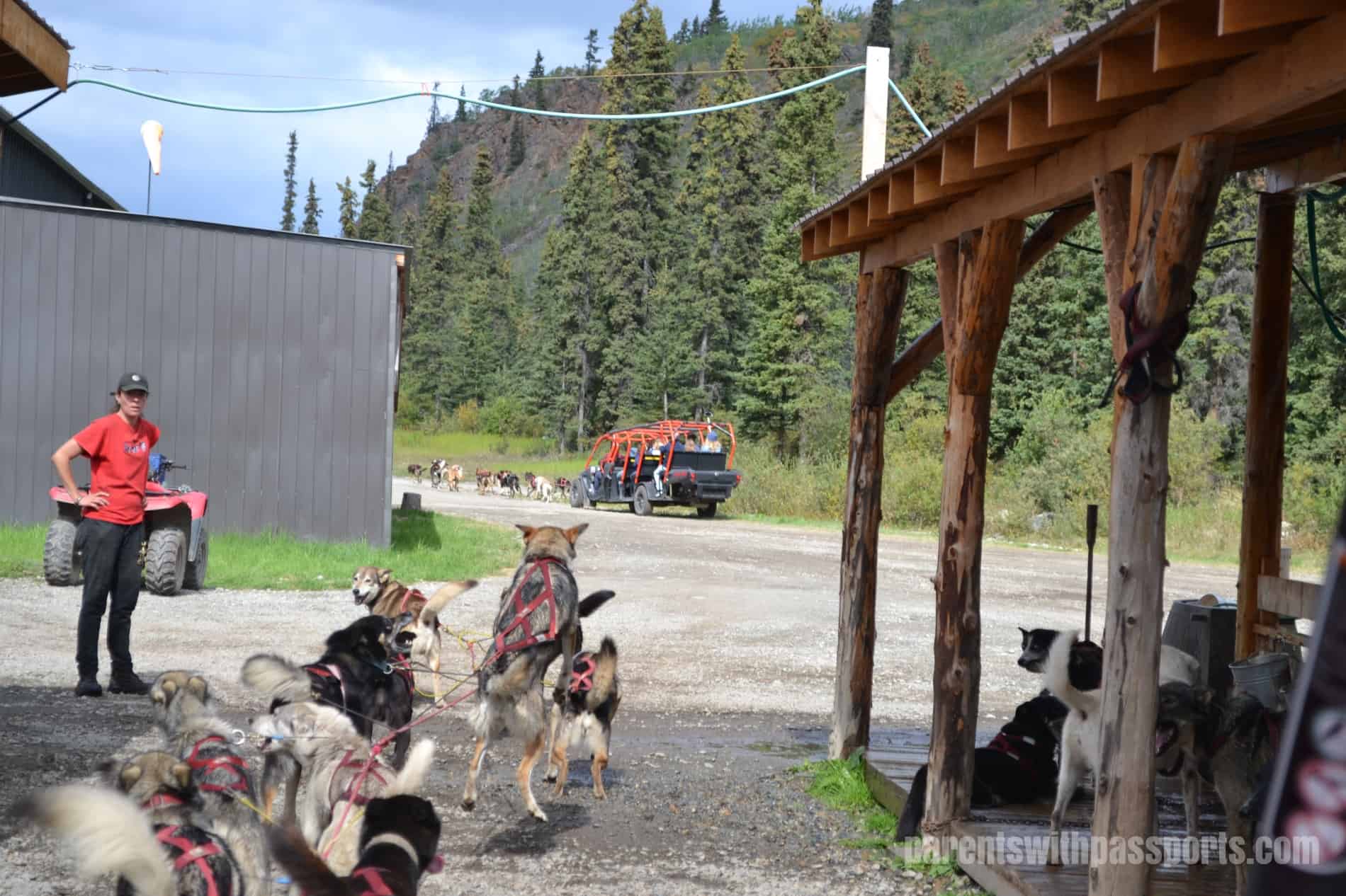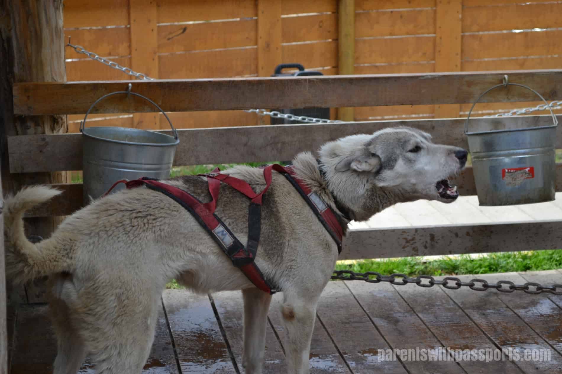 We could tell time was tight from the moment we got there. We were immediately ushered off the bus and into the lunch line, where we picked up our BBQ chicken lunch (a vegetarian option was also available). The food was ok although nothing to write home about, but the kids loved the unlimited supply of free homemade cinnamon donuts. Before we had even finished eating, out tour guide Anne was in the dining room, helping us clear our plates and telling us we had to get on line for the dog cart ride right away. I wasn’t a huge fan of having to throw away half-eaten meals and literally run across the facility to make it to the cart ride but we definitely didn’t want to miss the ride.