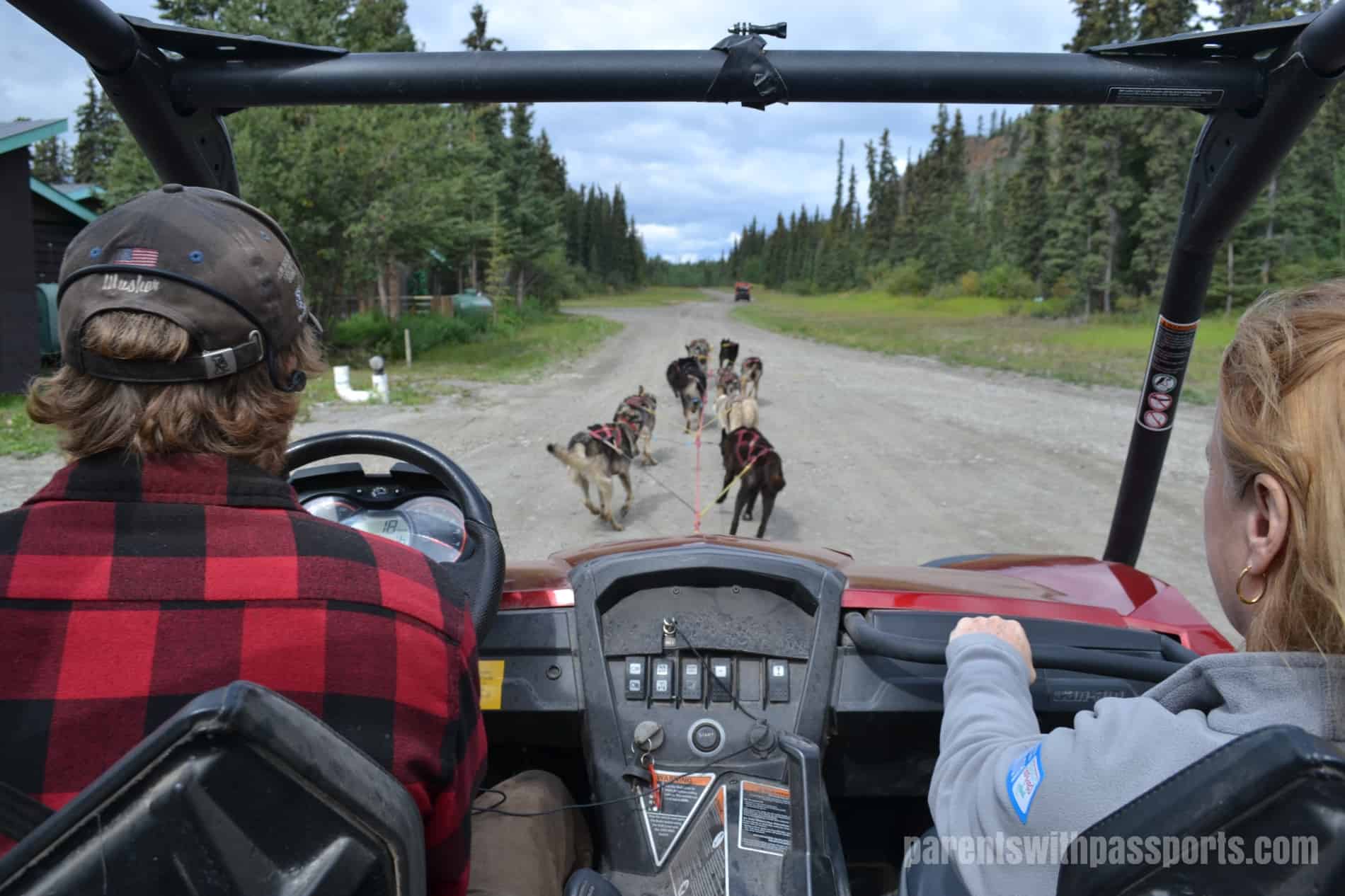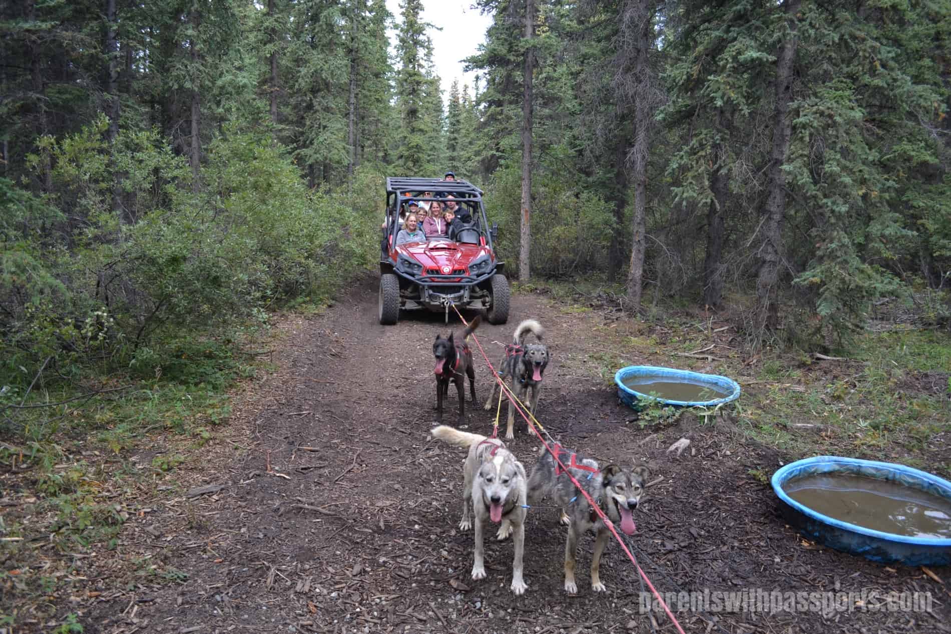 A driver pulled a cart around and started to hitch up the dogs. I have to say I was completely shocked to see it was a motorized cart, and I would be lying if I said I wasn’t a little disappointed. We had passed on the uber-expensive helicopter to a glacier for an authentic sled ride on snow, but I was expecting this to be a similar experience albeit with wheels and dirt instead of sleds and snow. I was not expected a motor-assisted ride.