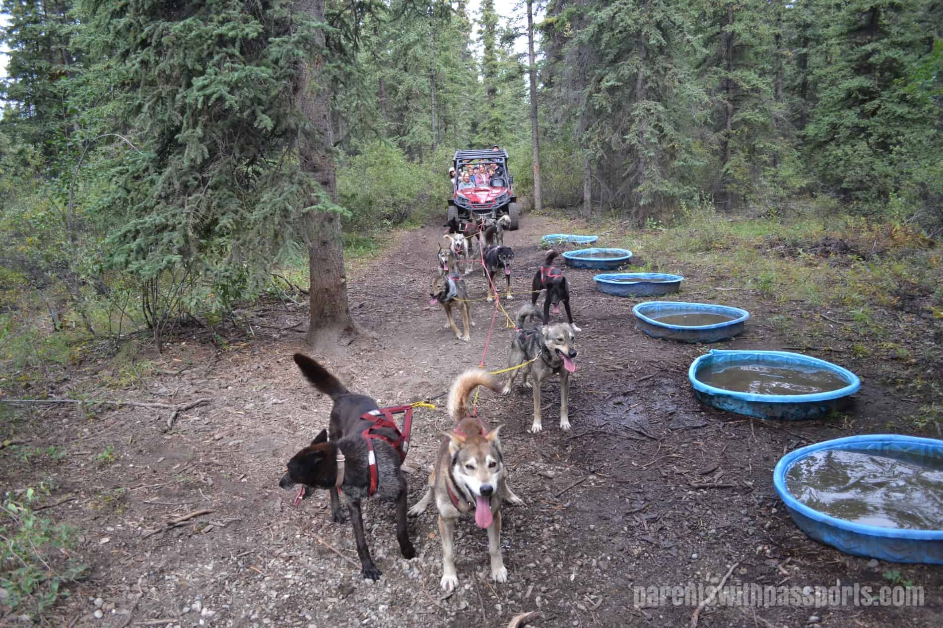 So of course the first questions we asked the driver were why they used a motorized cart and if the dogs were actually pulling us. He assured us that they were and that the cart just allows the mushers to adjust the pace (either up or down) if need be. These dogs were all professionals who race in the winter, and this type of summer training with a motorized cart helps the mushers to replicate real race conditions.