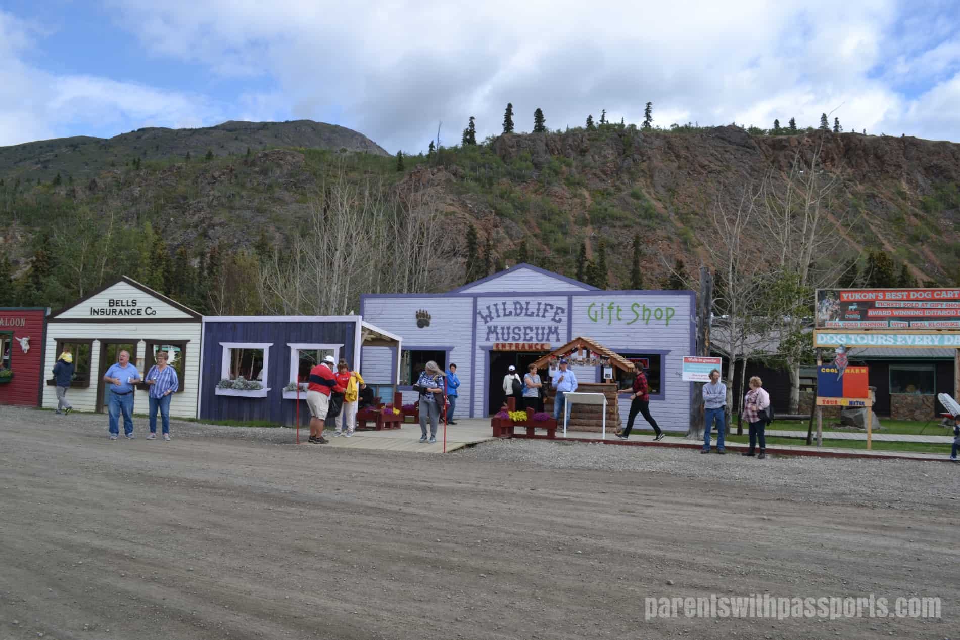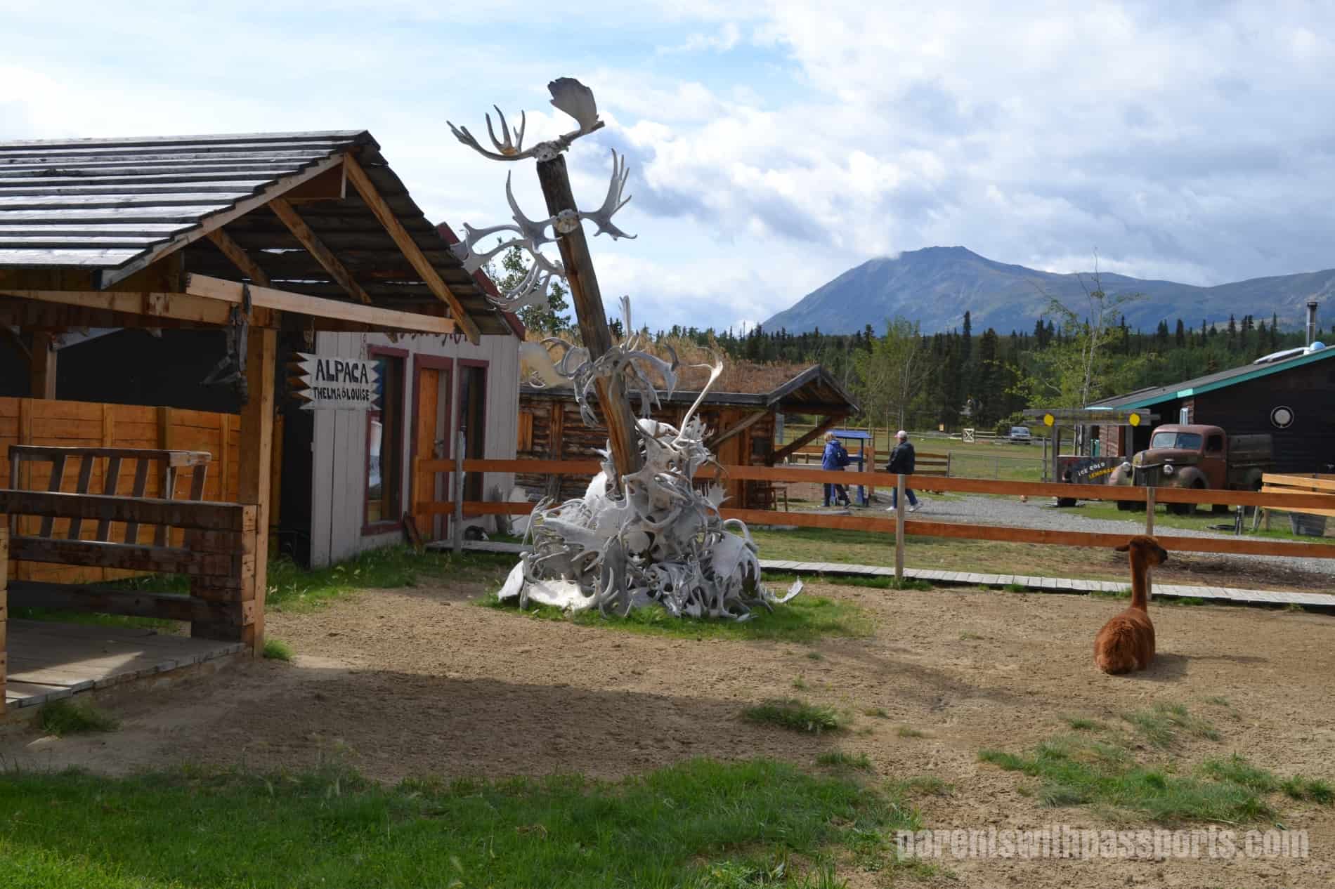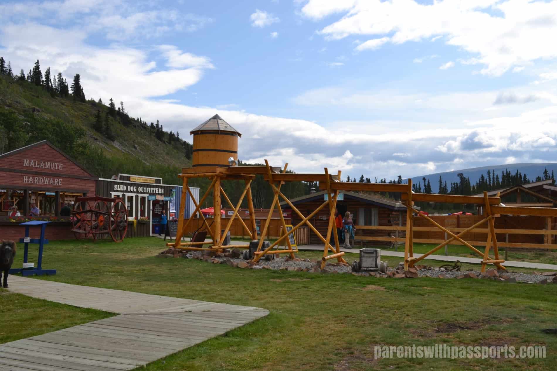 Formerly known as Frontierland, Caribou Crossing Trading Post is a tourist attraction just north of Carcross. There is nothing historic or authentic about it, although it has an old-timey feel. It exists simply for tourism. The main draw (for us at least) was the sled dog puppies and dog cart rides, but there are also two museums (the Wildlife Museum and the Royal Canadian Mounted Police Museum), a petting zoo, gold panning, and a few other miscellaneous buildings and exhibits to explore.