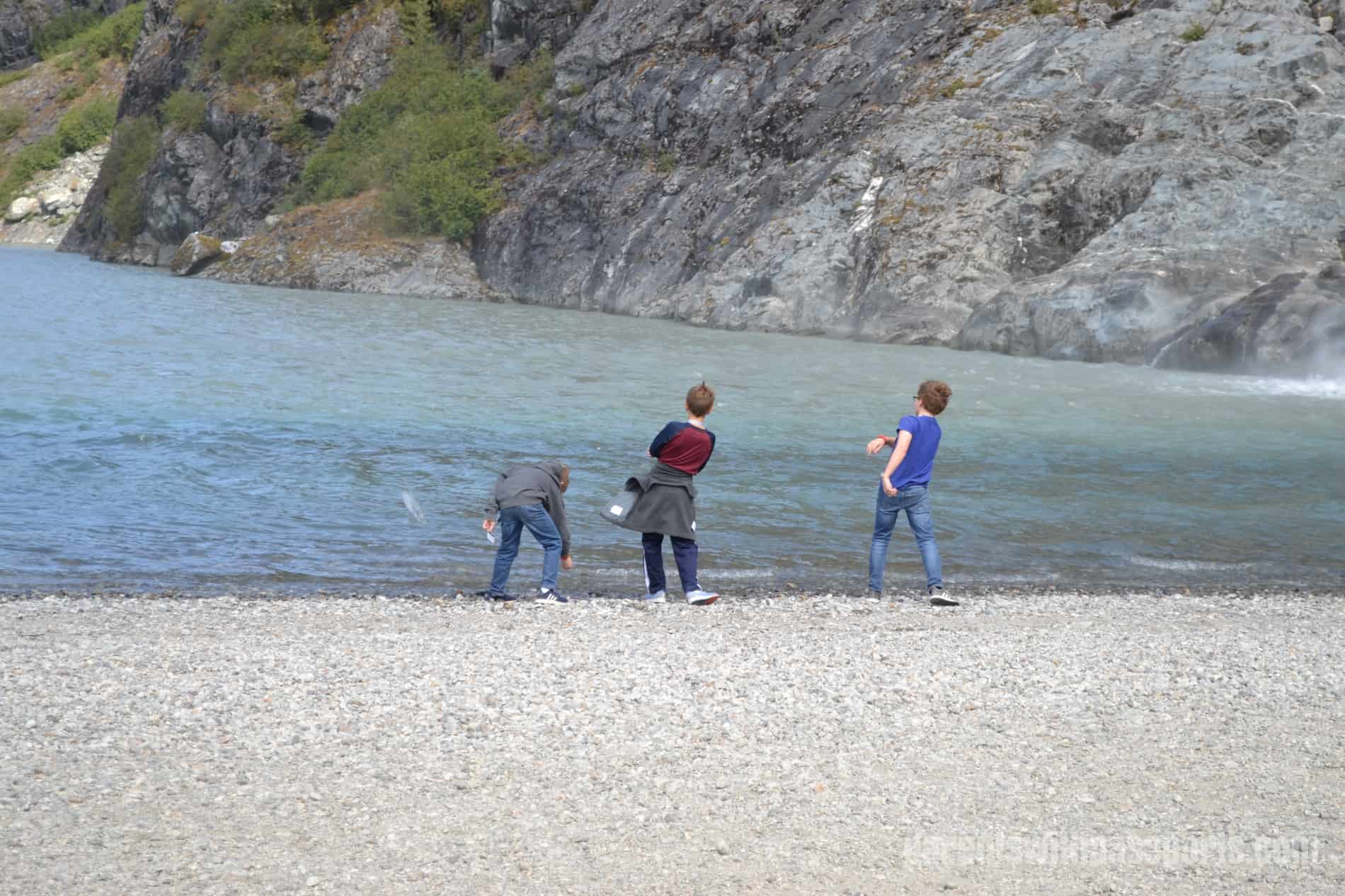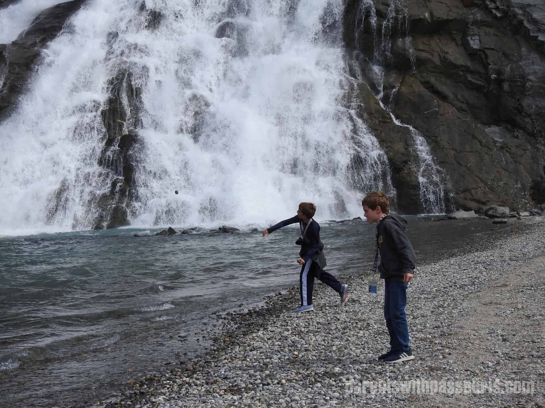 The kids were definitely impressed by the waterfall’s size and power and how close we could get to it. But kids are kids, and after a few minutes of appreciating it, it was time to skip some stones into the lake.