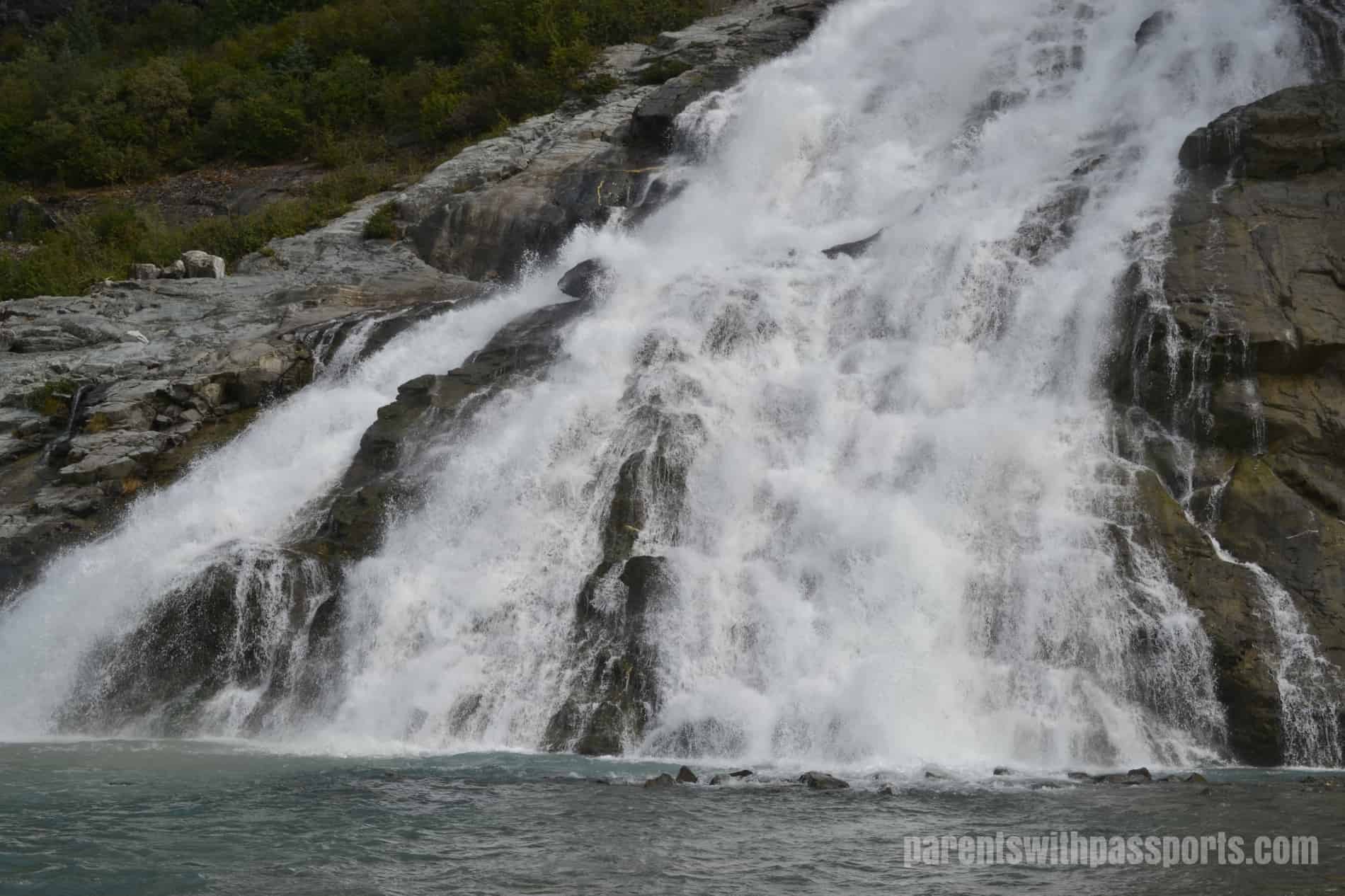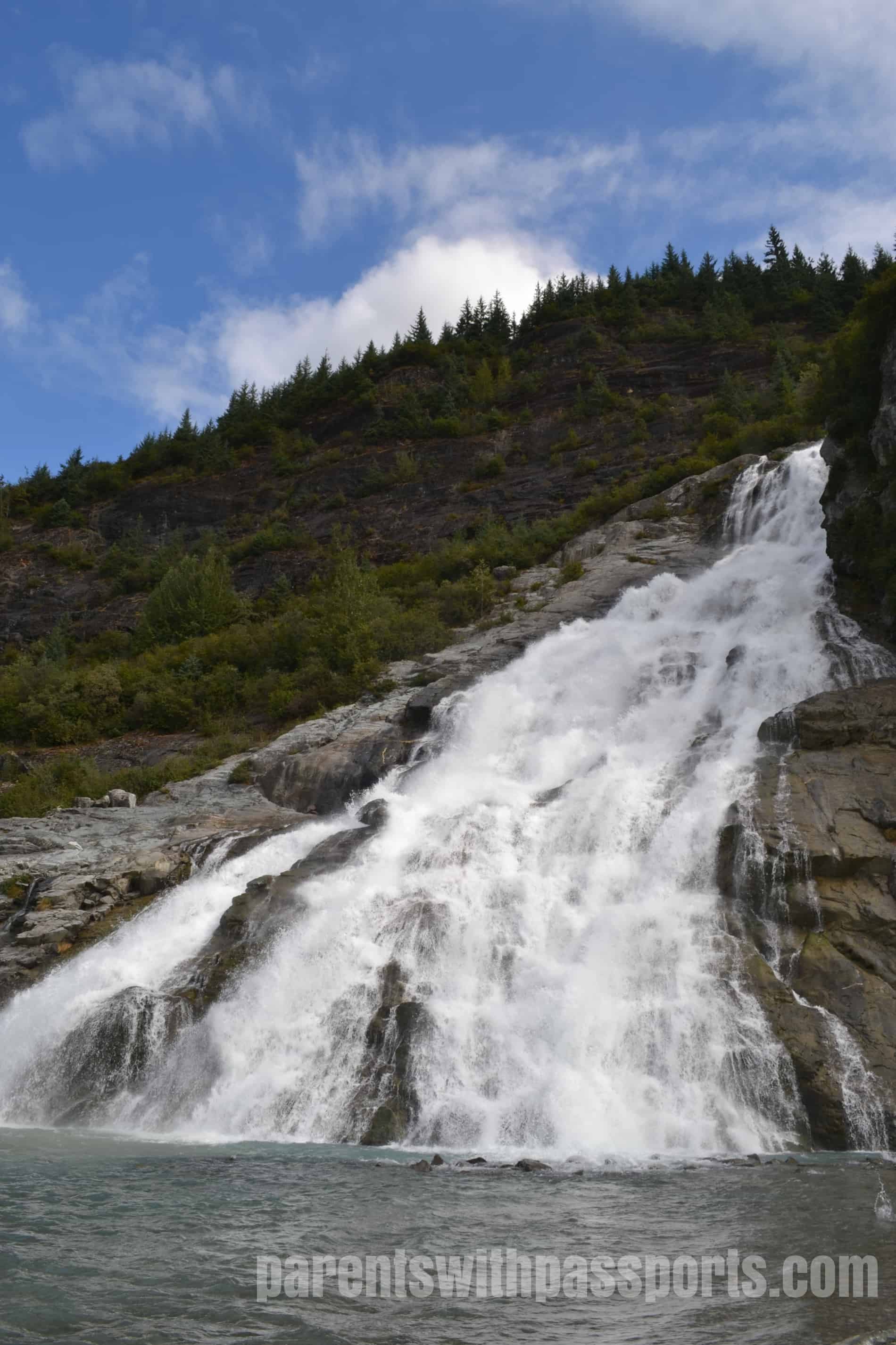 We took the easy, 1 mile trail to Nugget Falls. The trail is mostly gravel and packed dirt and winds along the lake to bring you to the base of the waterfall. It is a great hike for young kids, although there are warnings that black bears frequent the area so follow proper precautions and make sure your kids stay on the trail.