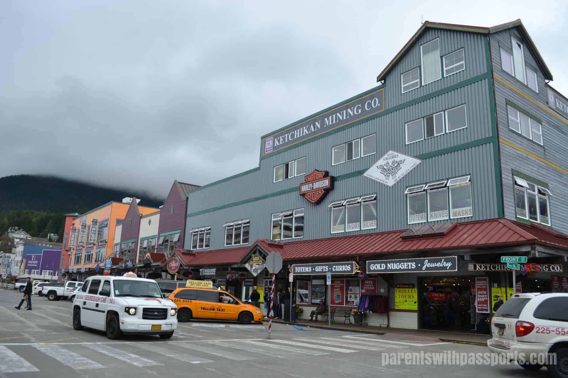 The town itself comes right up to the cruise ship docks. Souvenir shops line the streets. You will find both locally owned shops selling authentic Alaskan Native art and mass-marketed tourist stores. We loved browsing the smaller local shops and enjoyed seeing the works of local craftsmen and artists.