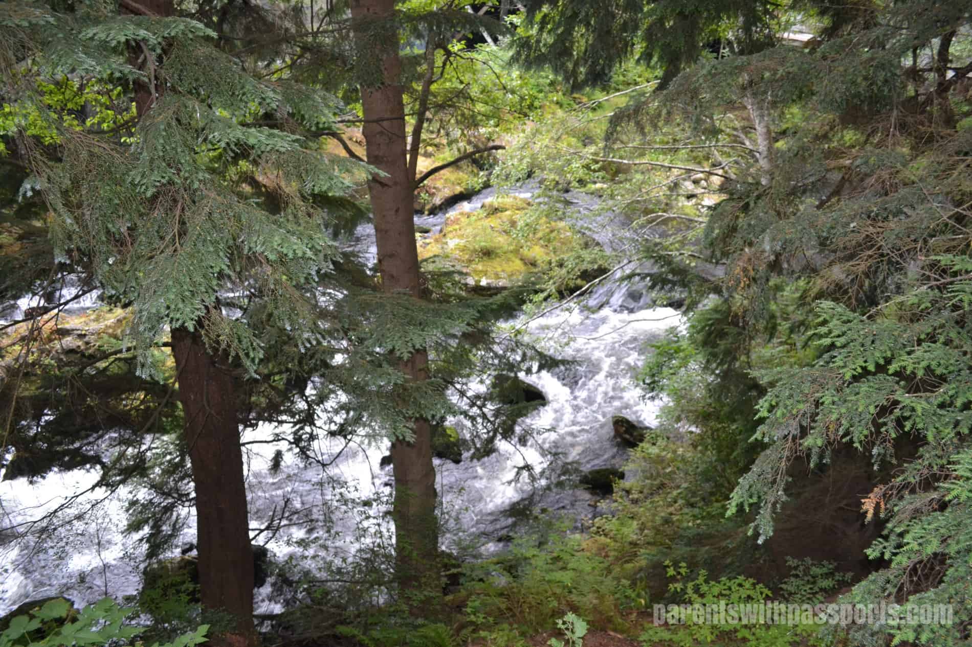 After wandering down creek street and peeking into some shops, we headed back up the creek to see the salmon ladder. Past the buildings, the creek waters started to rush faster. We could see and hear the white water ahead.