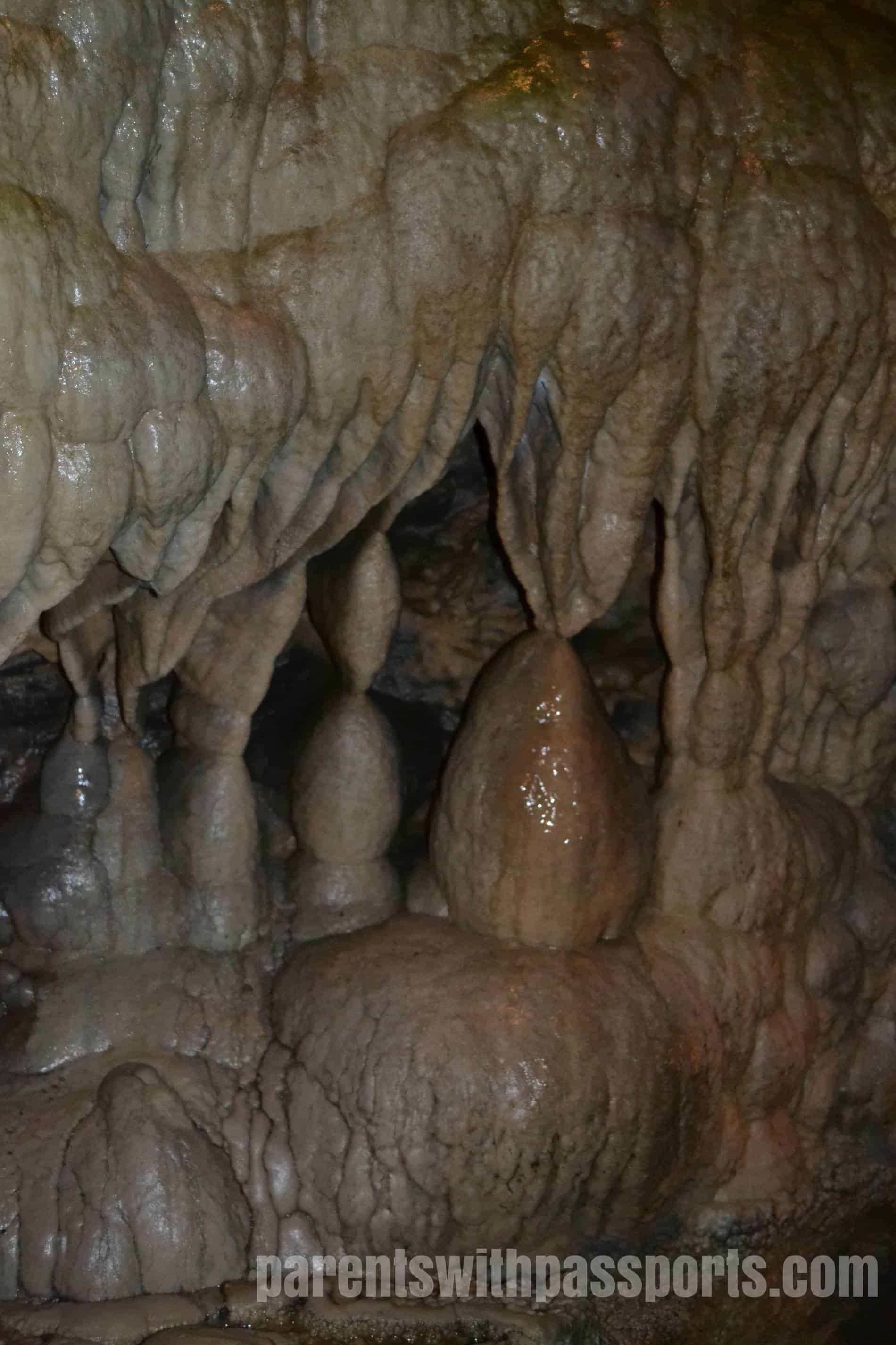 As with all caverns, it stays cool (52 degrees year round) and wet, particularly after a rainfall. We all caught a few drips on the head or shoulders as we explored. Our tour guide was well-versed in the history and geology of the cave and did a good job throughout. All in all it was a fun experience.