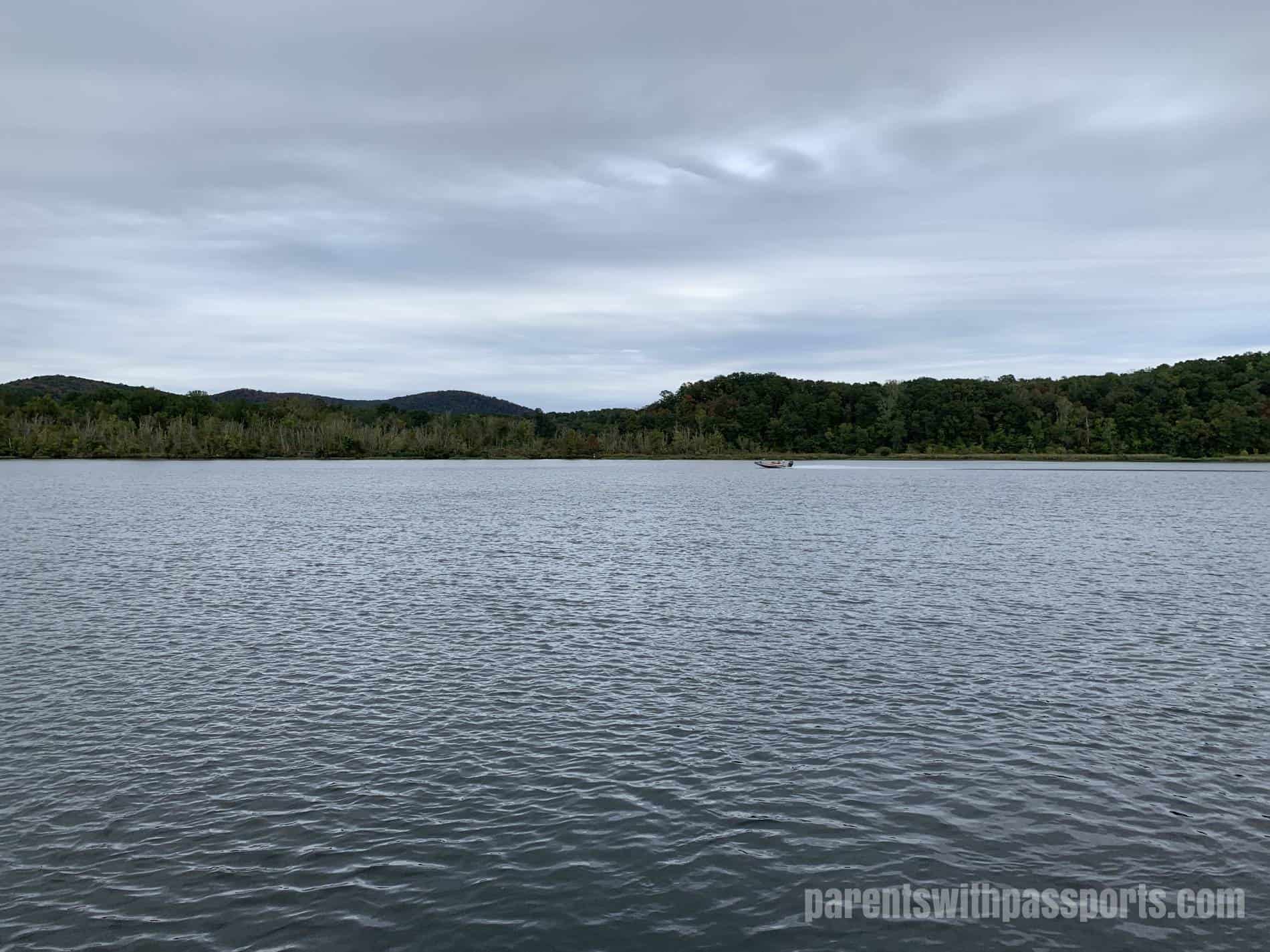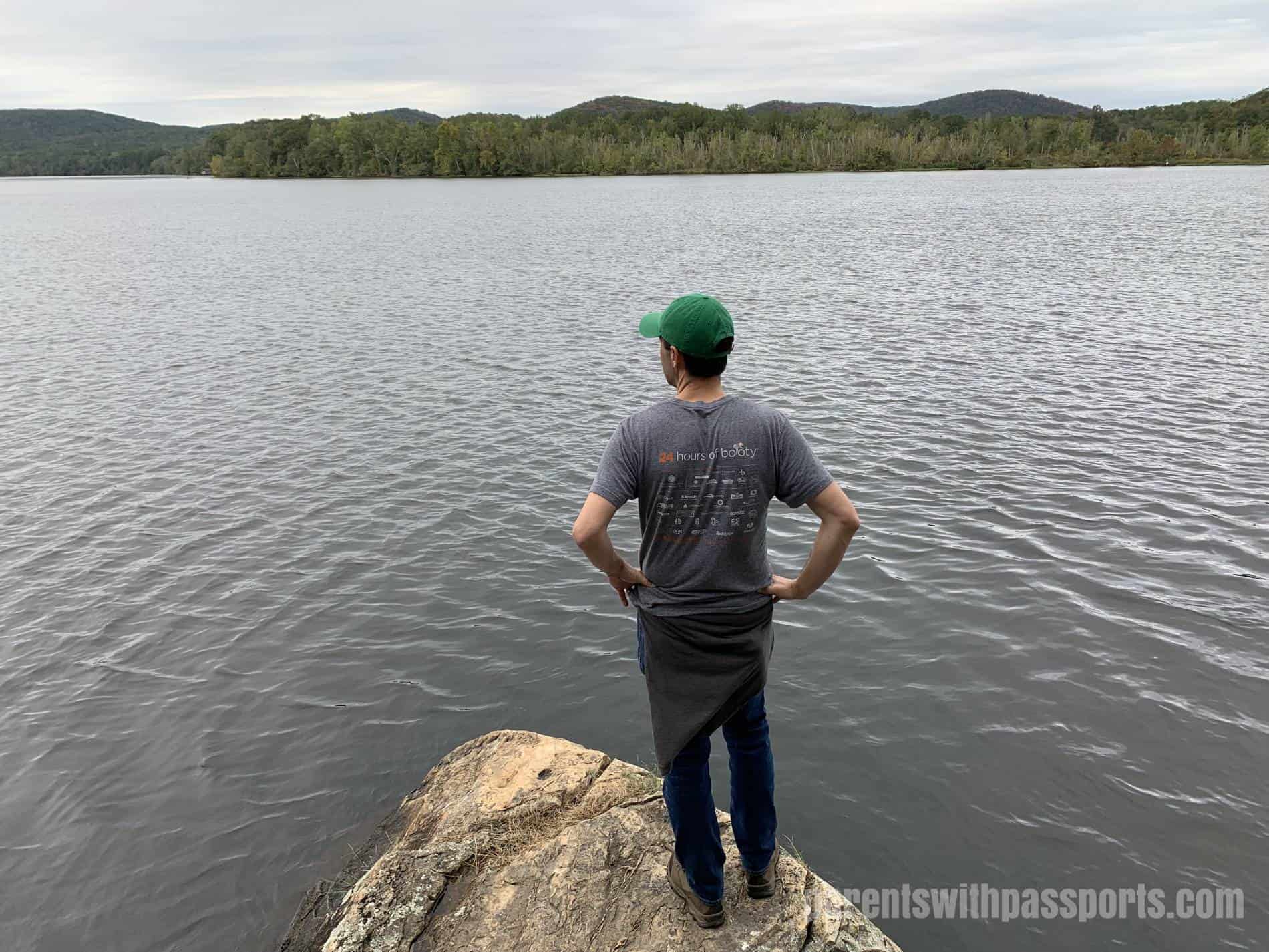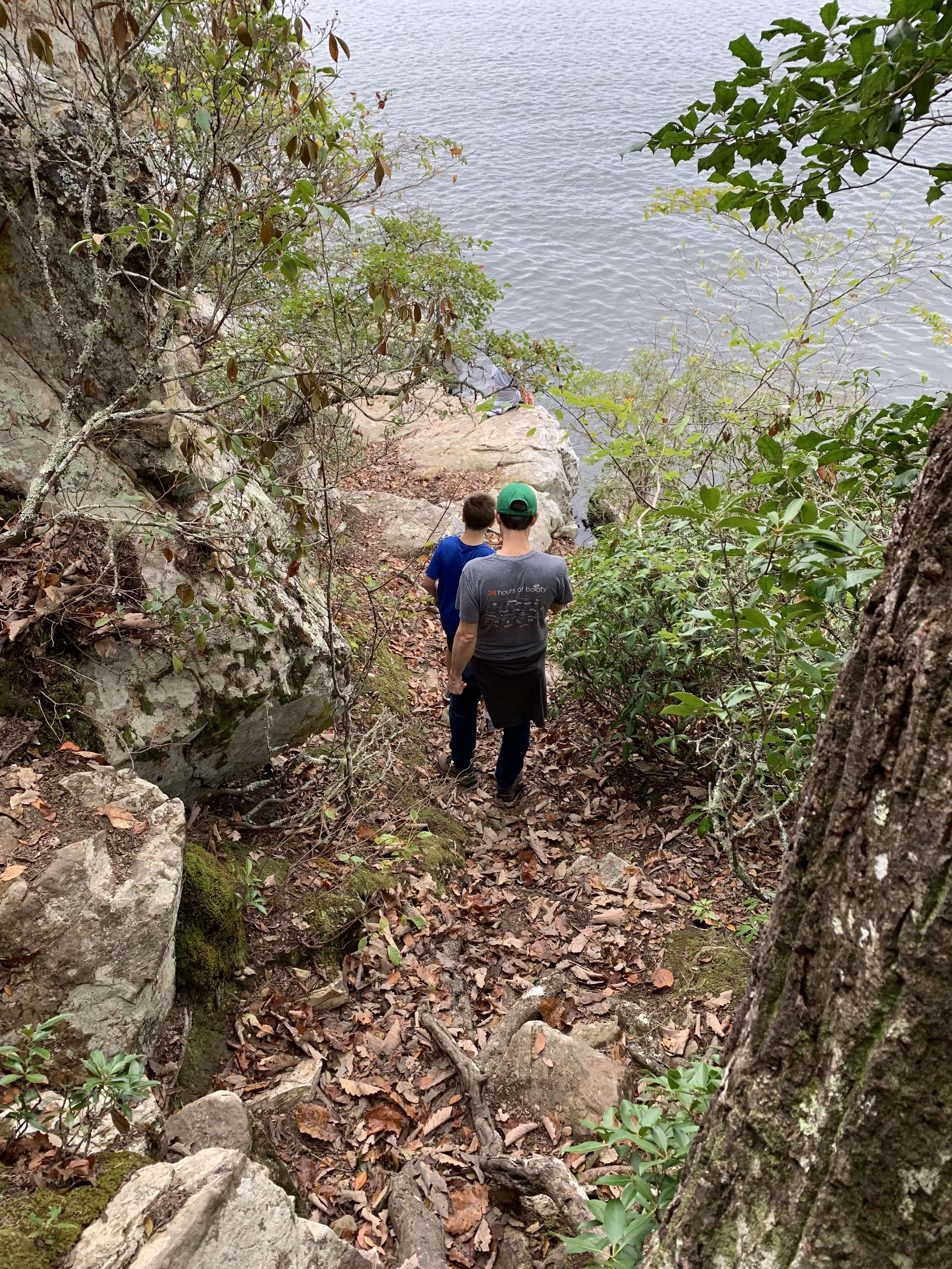 The climb to get down to the viewpoint was rocky and steep (which the boys loved!). The view from the bottom was pretty. It certainly doesn’t rival the postcard views you get in the Blue Ridge Mountains, but it is pretty nonetheless and a nice reward at the end of the trail. The rocky outcrop is large and flat and juts out into the water a bit, giving you a neat place to relax and take in the views before heading back.