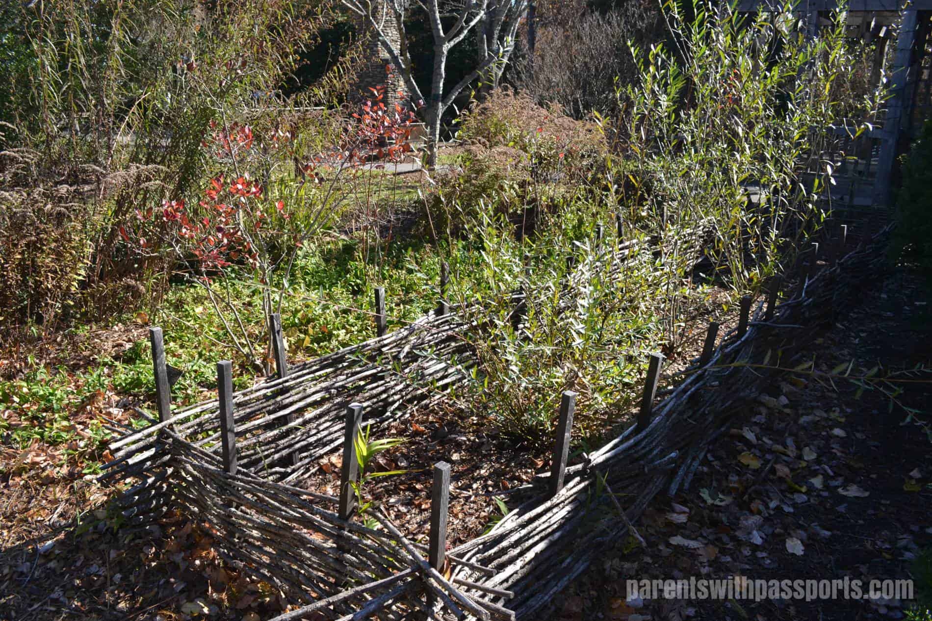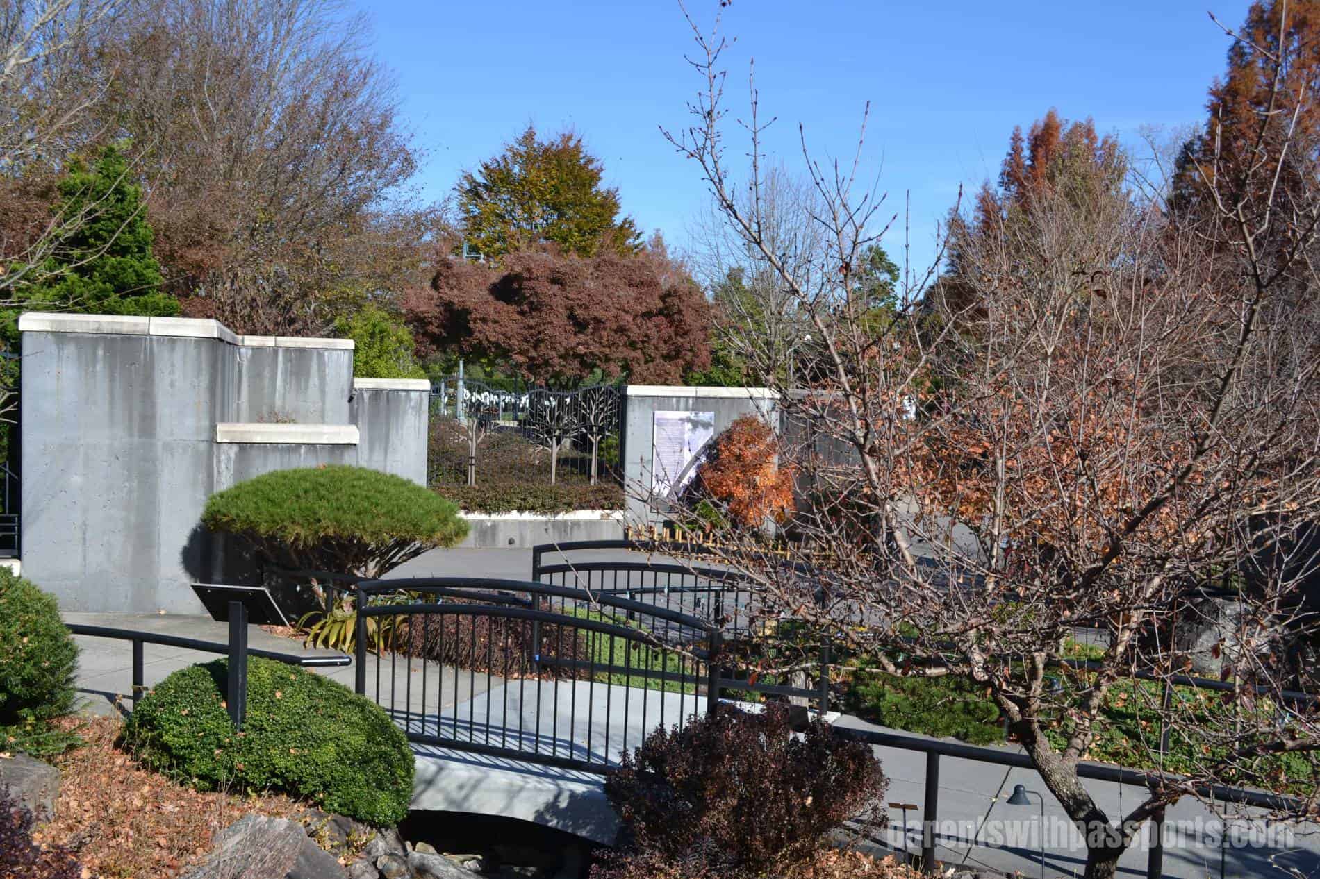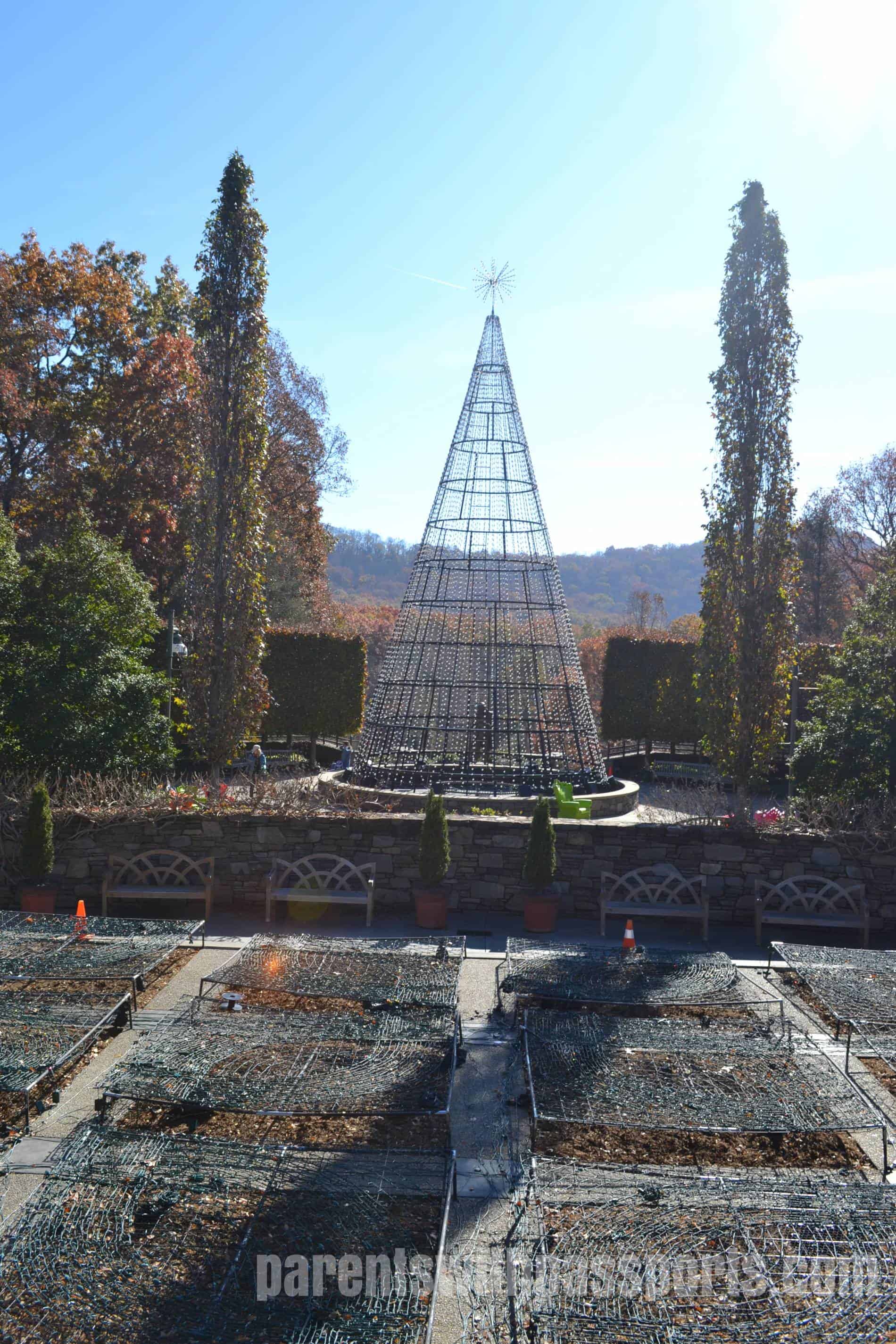 The Quilt Garden is probably one of the arboretum’s most impressive features… but not in the winter. In season, the garden blooms take the shape of a traditional quilt pattern. In late fall, it is nothing more than a series of dirt squares, but we could see that they were setting up holiday lights in square patterns over the plots. The garden has an elevated stone overlook where you can take in the pattern (whether made of flowers or lights) from a bird’s eye level.