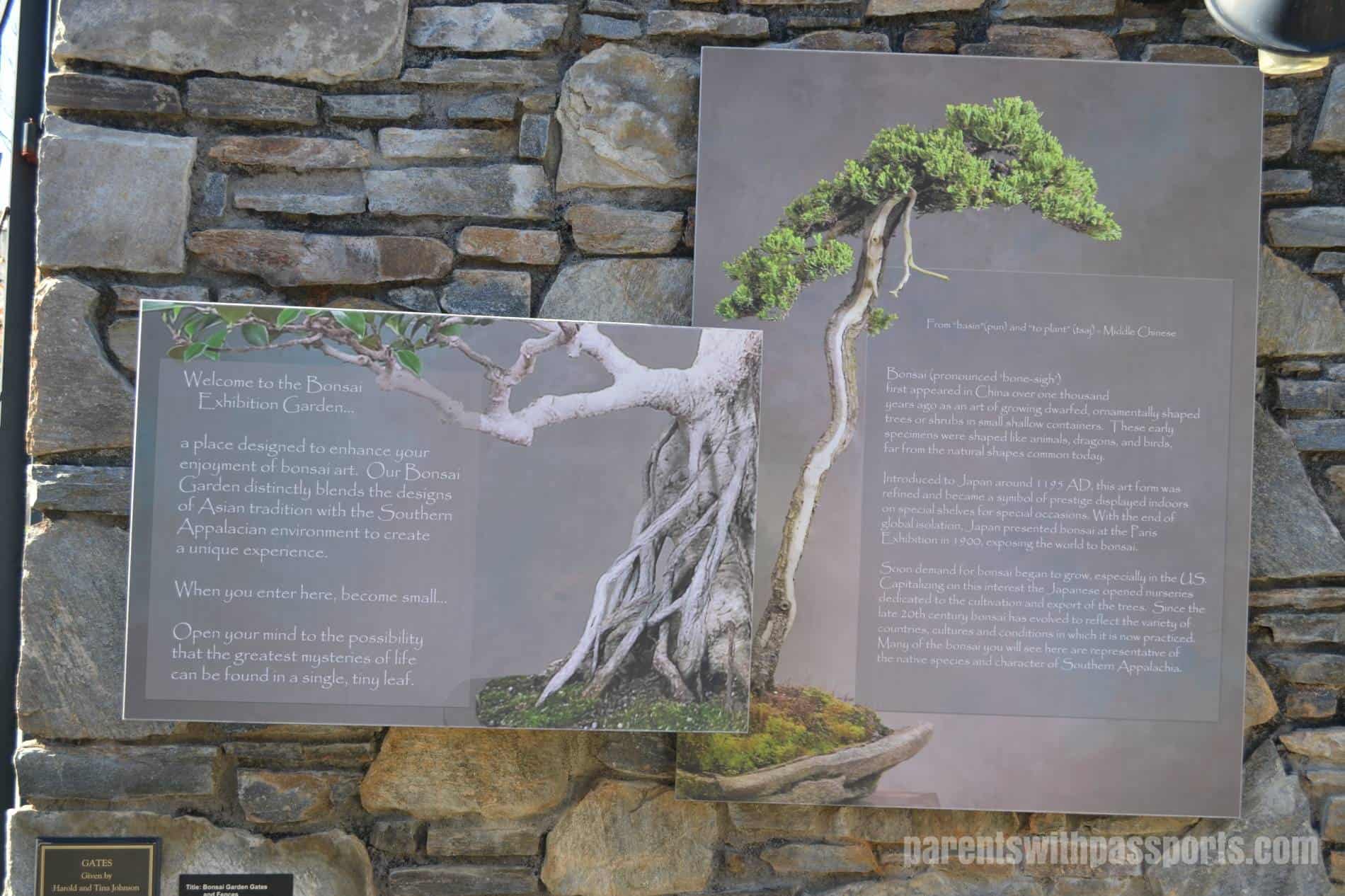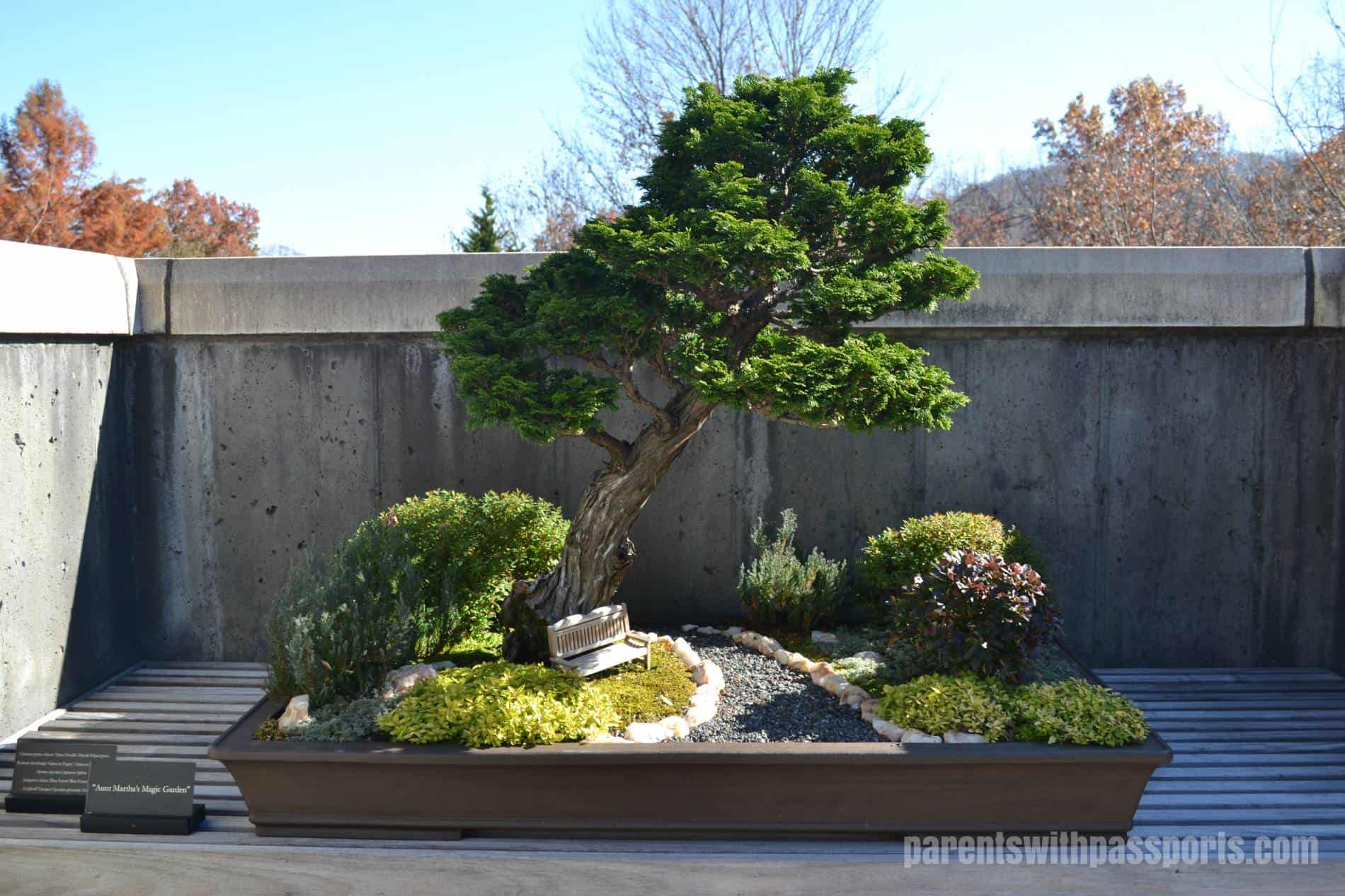 The Bonsai Exhibition Garden was fantastic. The exhibit is world renowned and unique for its regional interpretation. Using plants native to the Western North Carolina area, artists cultivate and trim the plants into a unique and artistic design. We really enjoyed walking through the displays and seeing the large variety of plants and designs.