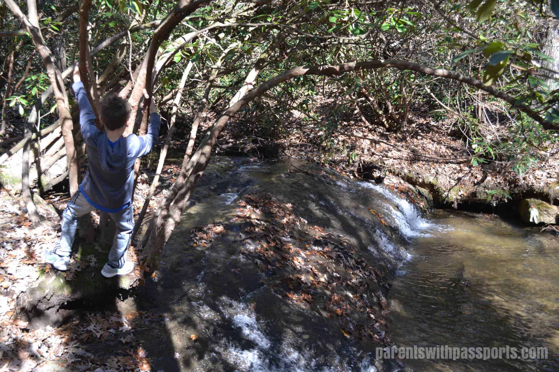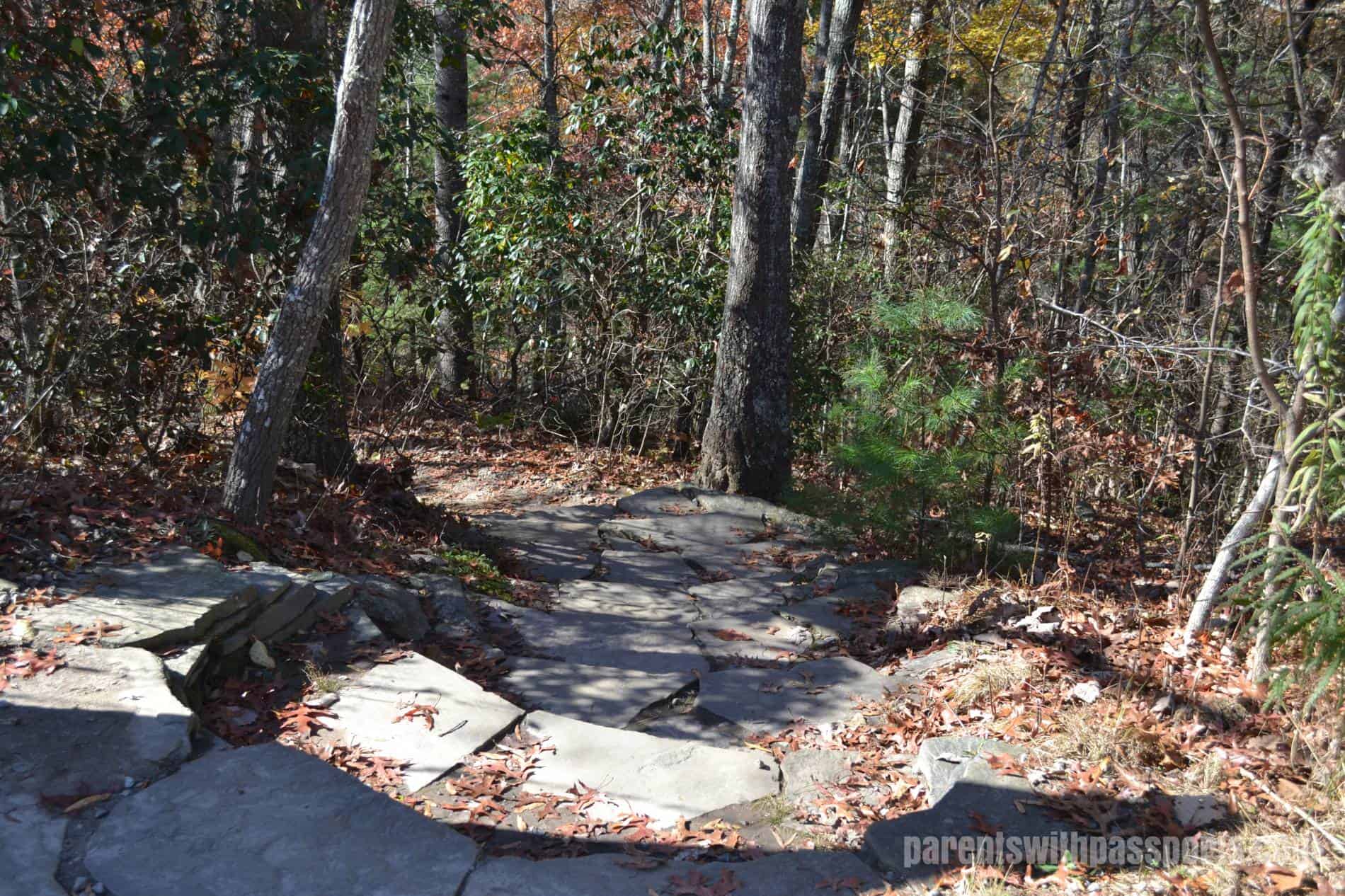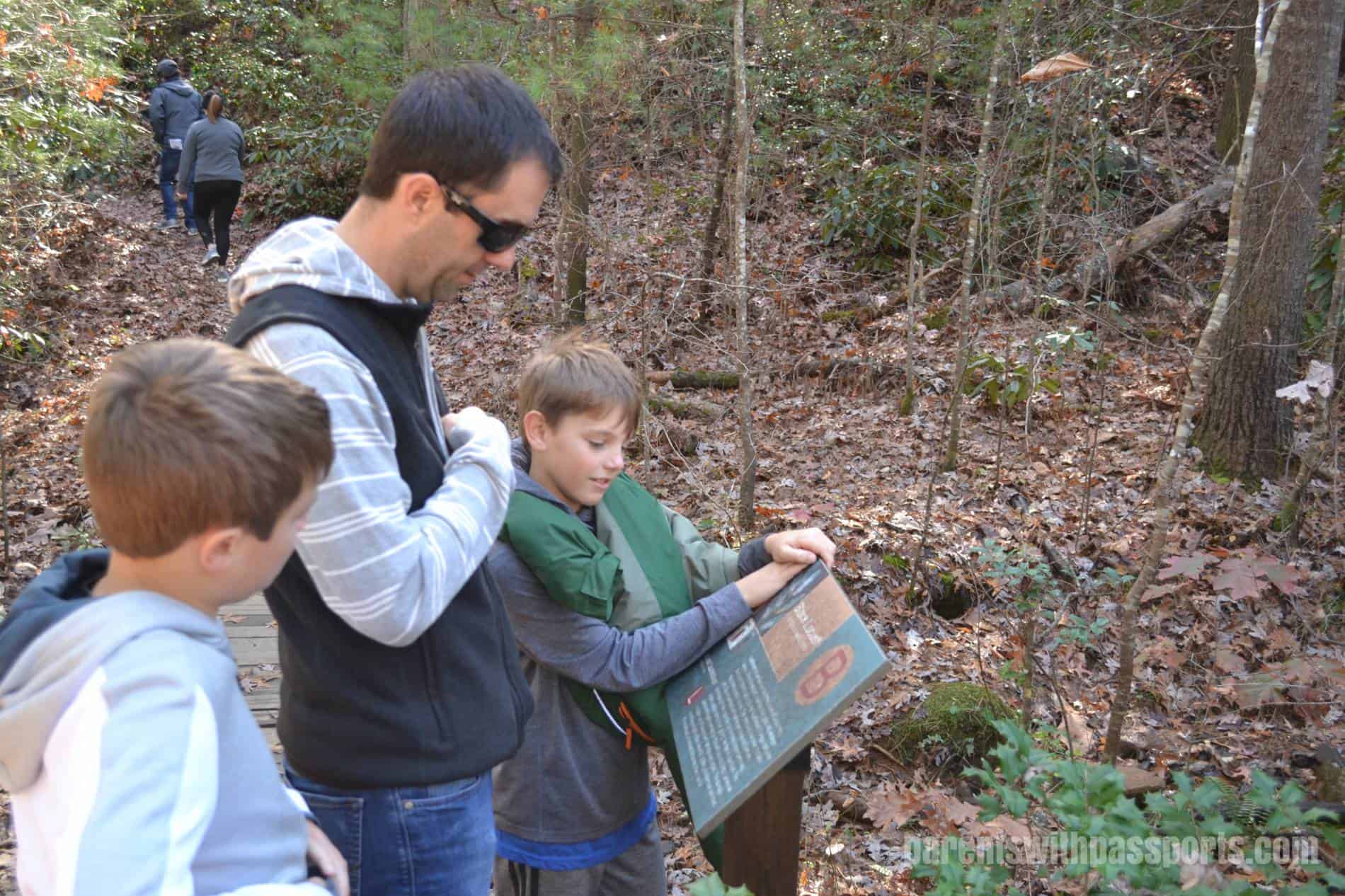 The Carolina Mountain Trail is one of the moderate trails. The 1.2 mile trail passes through three different types of forests – pine, mixed hardwood, and ericaceous. There were informative signs along the way, and our 4th grader especially enjoyed reading the ones that quizzed you on symbiotic relationships, which is what he has been learning about in science class. (You’ve gotta love it when they can apply what they learn in the classroom to the real world!)