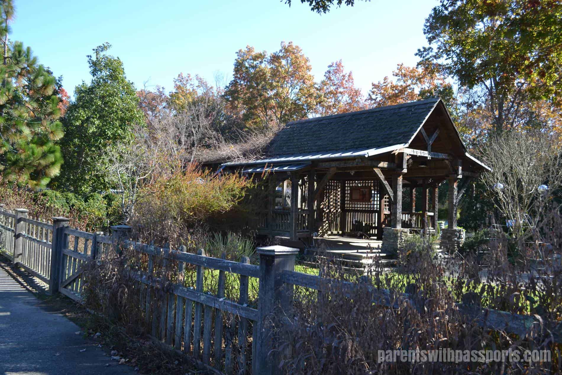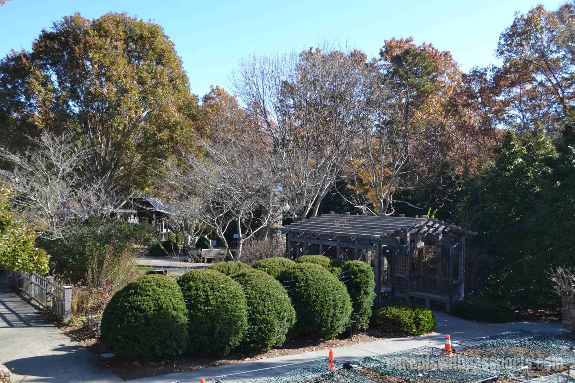 The NC Arboretum is a 434 acre public garden located in the Pisgah National Forest. It offers 65 acres of gardens, more than 10 miles of hiking and biking trails, a bonsai exhibit, and much more. While we were there they were putting up their holiday light displays for the annual Winter Lights at The NC Arboretum, which opens the weekend before Thanksgiving each year. Entrance to the arboretum is $14 per car and gives you access to all of the year-round activities. (The holiday light exhibit charges an additional per-person fee.)