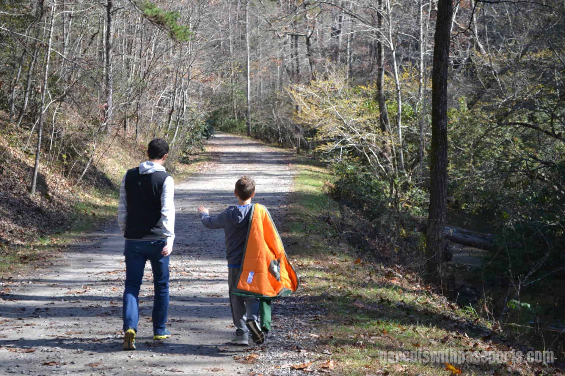 The path led us through the woods, which was pretty at this time of year with some of the trees still hanging on to their fall colors. At one point it met up with the Bent Creek Trail, and you could choose to follow the trail along the creek or walk along the road. The trail had a few moderate, rolling hills but was mostly flat and easy.