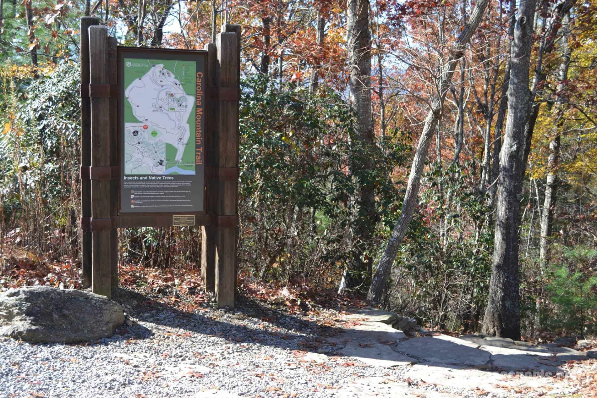 Behind the Education Center is a trailhead for the Carolina Mountain Trail. There are 12 hiking trails in the arboretum, including 5 easy, 4 moderate, and 3 difficult rated trails. All trails are dog-friendly and several of them double as biking trails. (Non-biking trails are clearly marked as “Foot Traffic Only”.)
