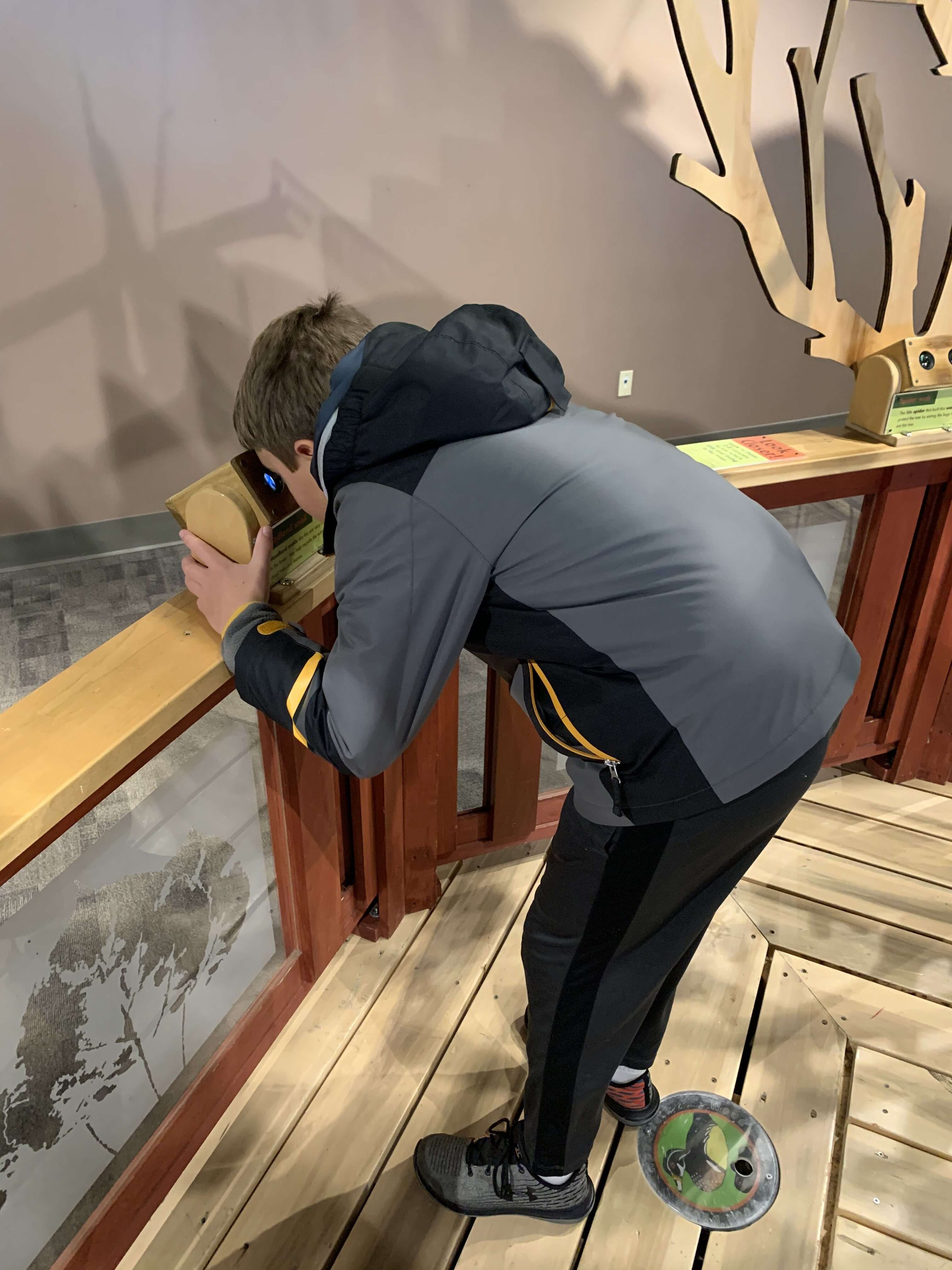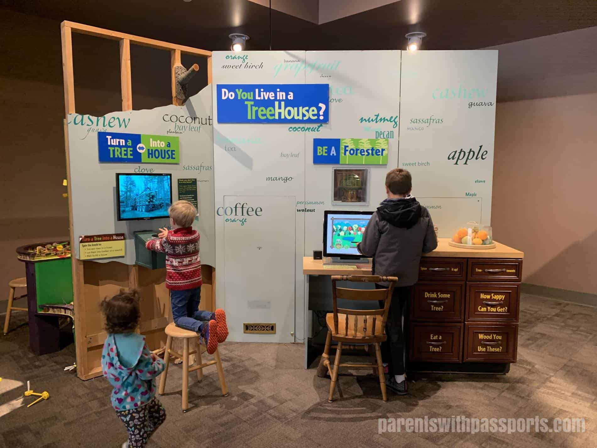 We entered the Baker Exhibit Center, where a very helpful staff member shared a map and suggested hiking routes for us. We had to walk upstairs to enter the gardens and passed through the traveling exhibit, Tree Houses. Geared towards younger kids, this was a small but well-done exhibit exploring the creatures that live in trees.