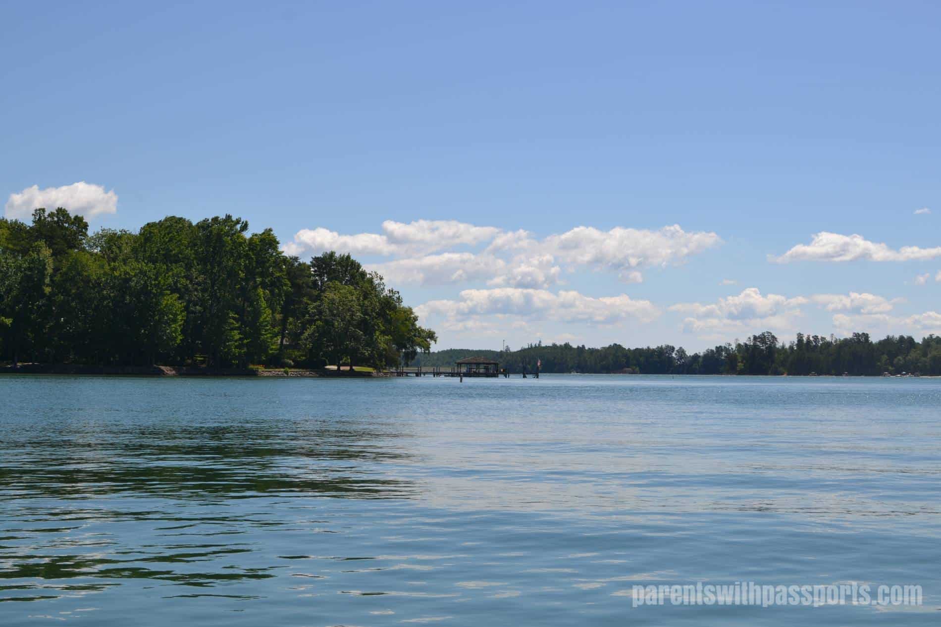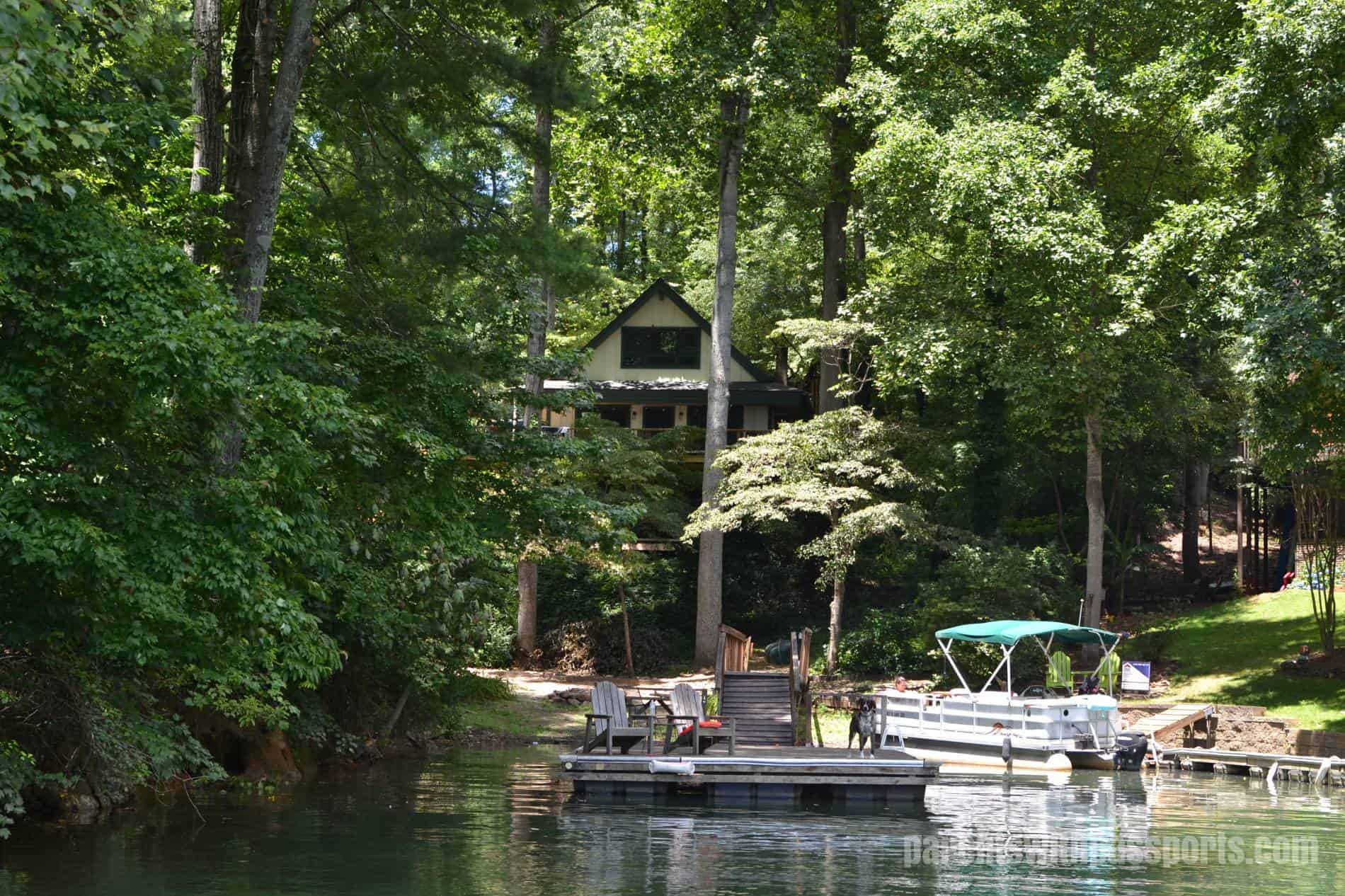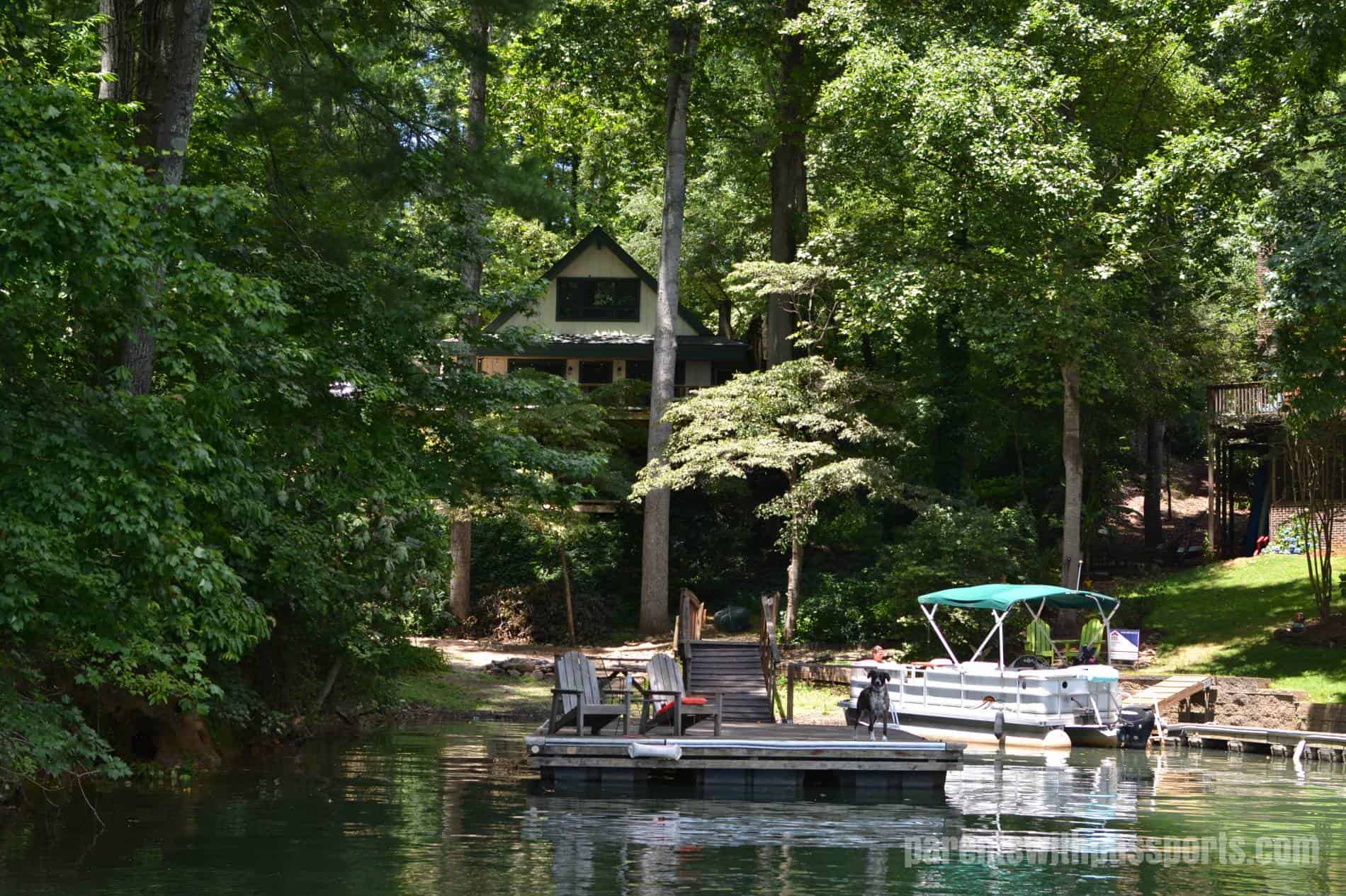 Our rough schedule was a week at Hilton Head at the end of June, a week and a half home, a week and a half at a lake somewhere, two weeks home, and then two weeks visiting family in MD and NJ. That only left one more week at home before school started (they were going back 2 weeks early to try to make up for lost time in the spring). So we set off to find a lake house somewhere for that week and a half in early/mid July. One major consideration was our two dogs – while it was all well and good for the people of the family to be on the move all summer, we didn’t want to leave them home for half the summer. So finding a pet-friendly lake house was key.