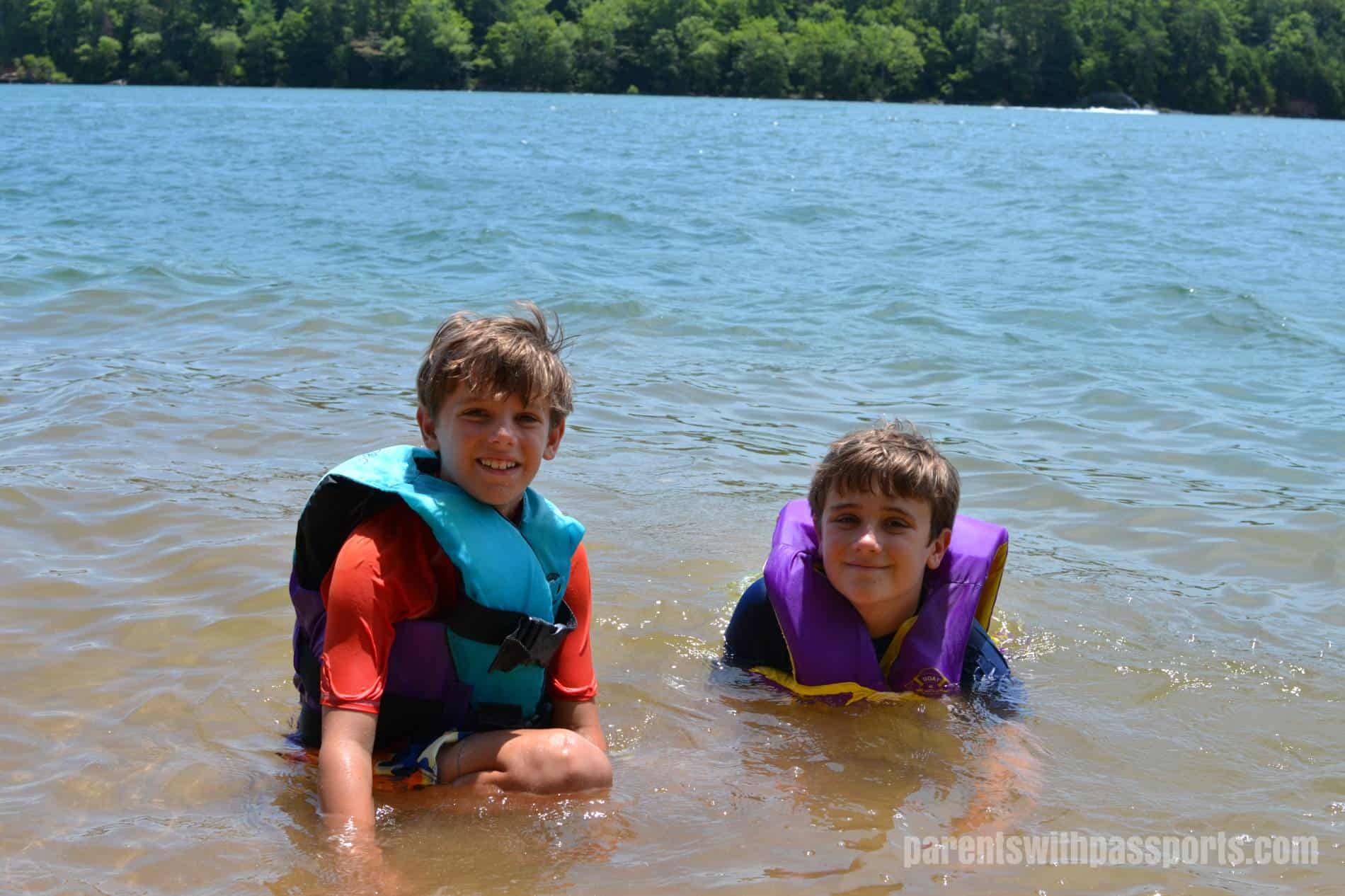 We loved Lake James. Only about 100 miles from Charlotte, you can get there in less than 2 hours. To me, a visit to a lake is even more relaxing than a trip to the beach. The beach requires a lot of effort and gear. And I’ve always felt like there’s some element of stress at the beach, especially when the kids were young and the ocean waves and riptides were a constant source of worry. To me, a lake is a place where you can completely unwind and relax. It’s easy and it’s fun and it screams summer to me. Watching the boys swim and boat and fish, I really had more of a sense of normalcy than I’d had in a long time. I felt like we gave them almost a typical summer camp experience by coming here. (One of their favorite camps is a YMCA camp on a lake in SC.) It was exactly what we were looking for – a change of scenery for the family and a chance for the kids to have some good-old-fashioned summer fun.