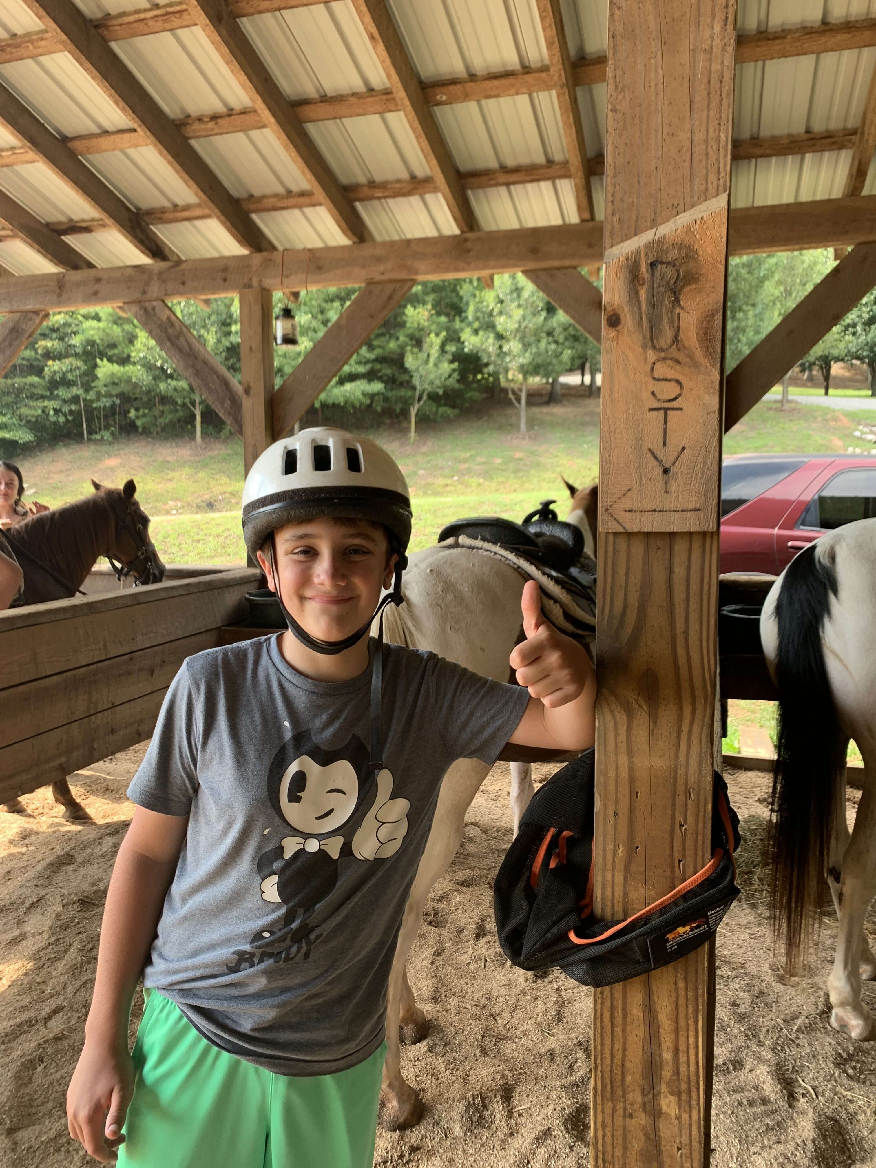 The boys absolutely loved their first horseback riding experience. The ride was unique, the staff was great, the horses were gentle and easy for beginners to ride. It was worth the trip from Lake James. That smile says it all!
