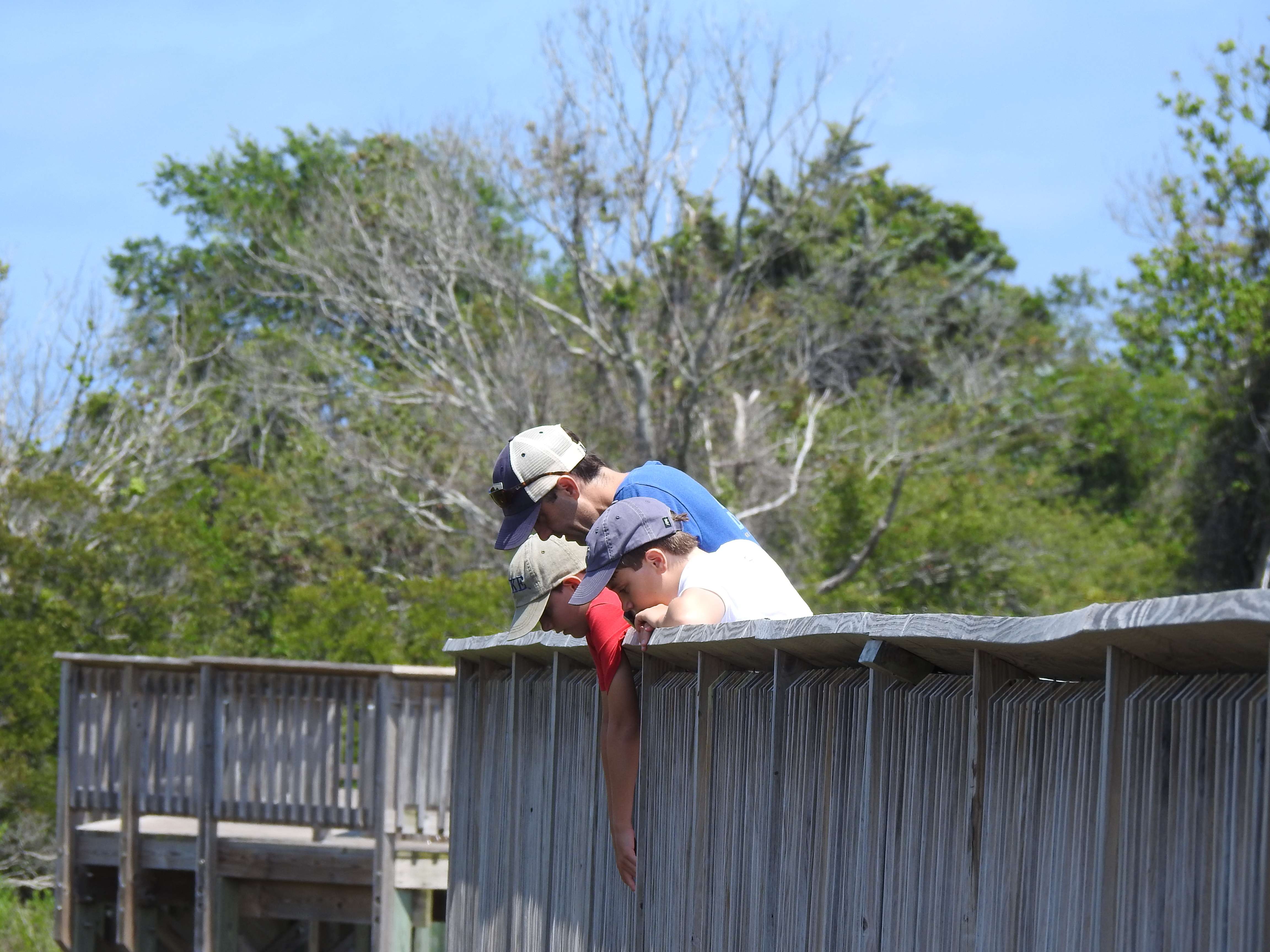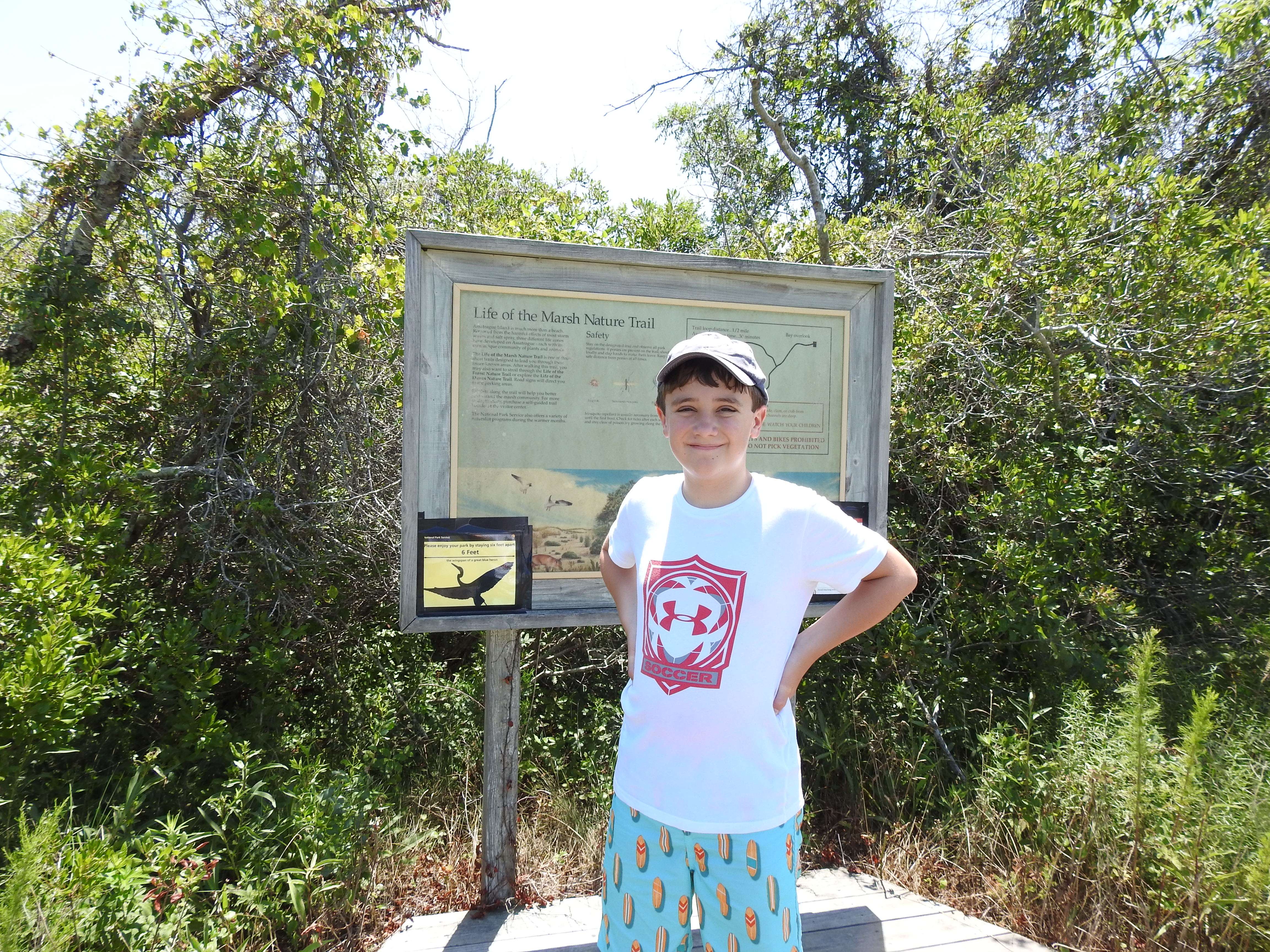After watching the horses for a while, we headed to the Life of the Marsh Nature Trail. The boys balked a little at taking a “hike” after a long day but once we arrived and saw that the trail was just a short boardwalk over the marshland, they were game.