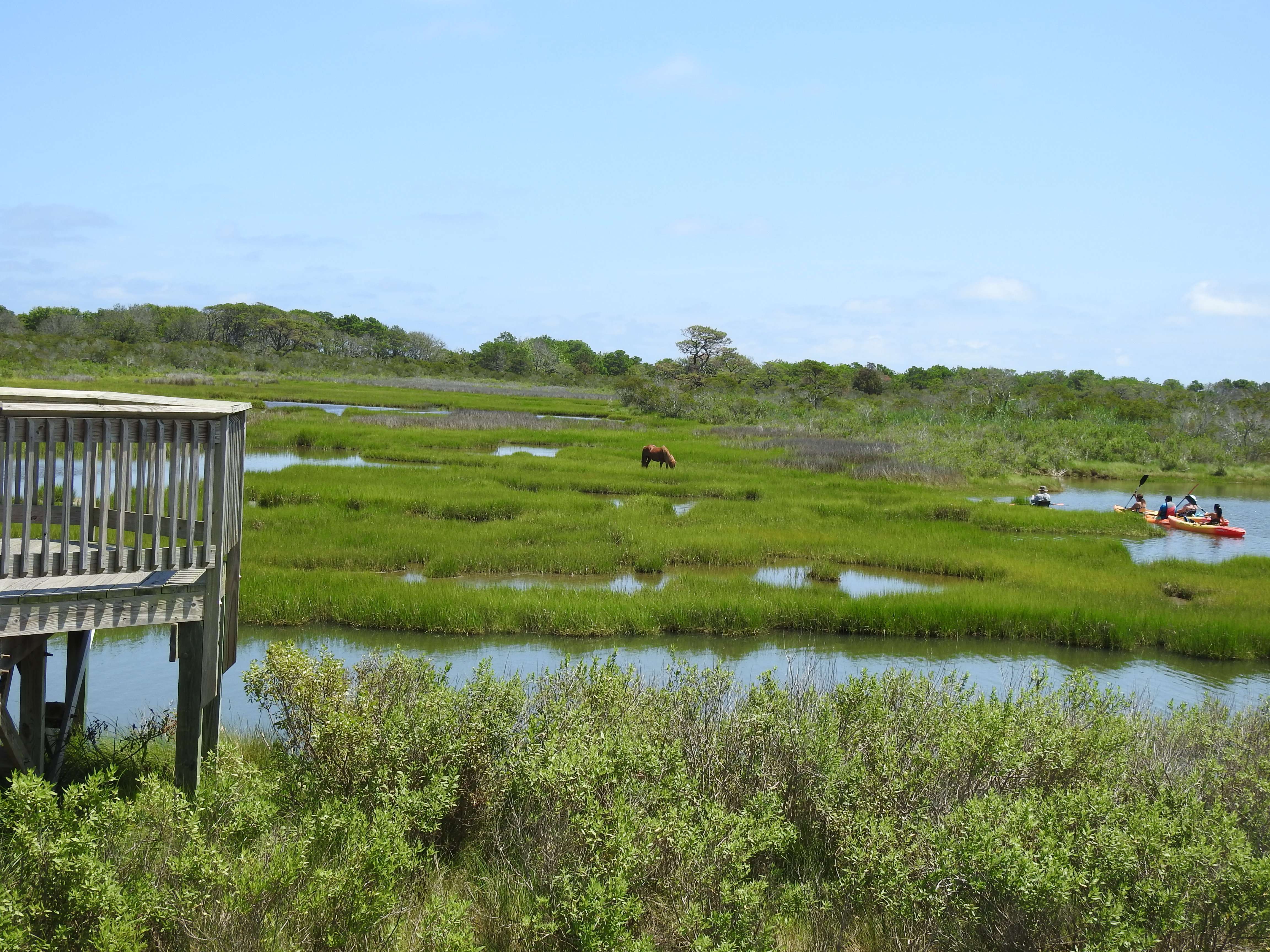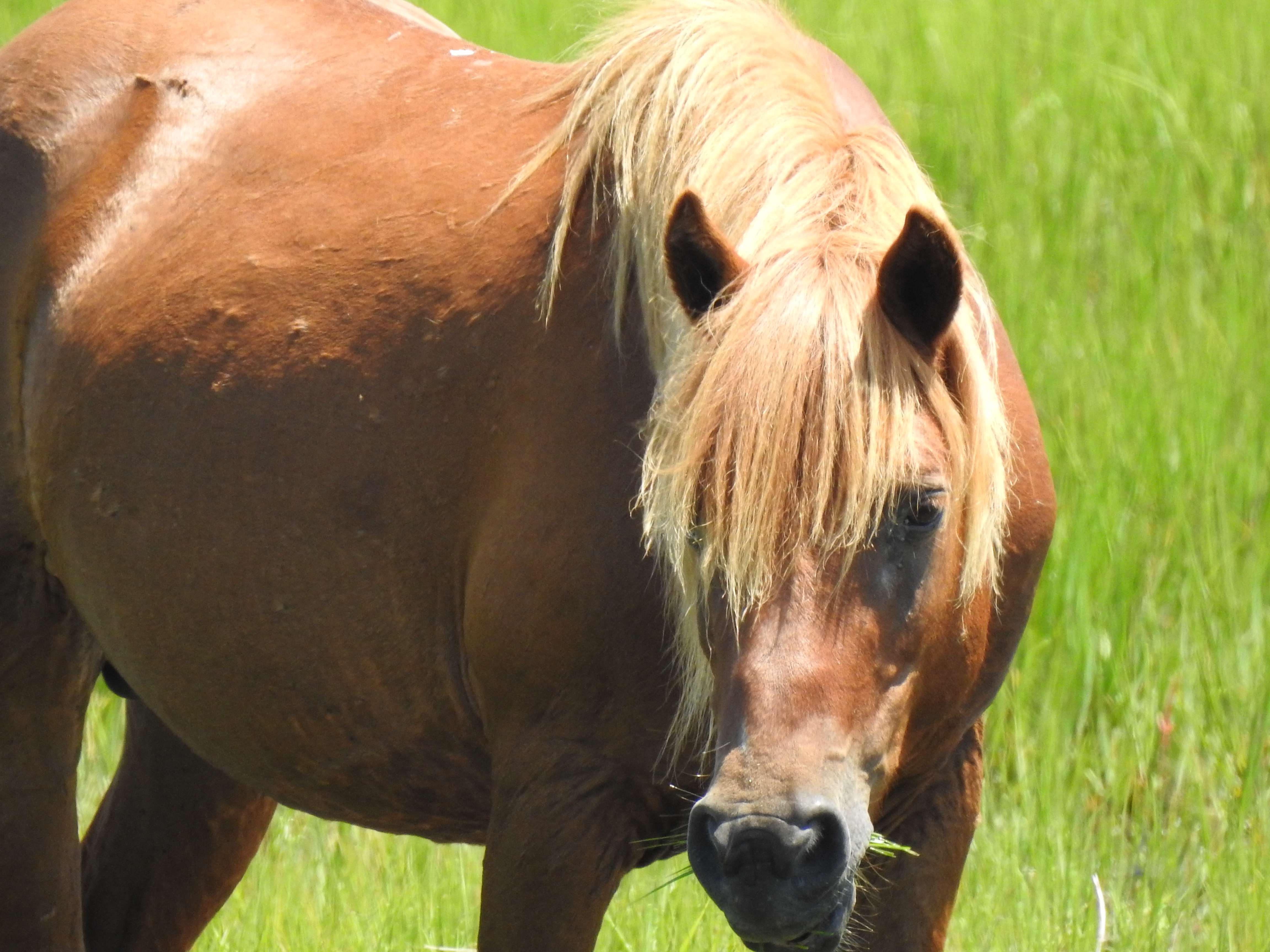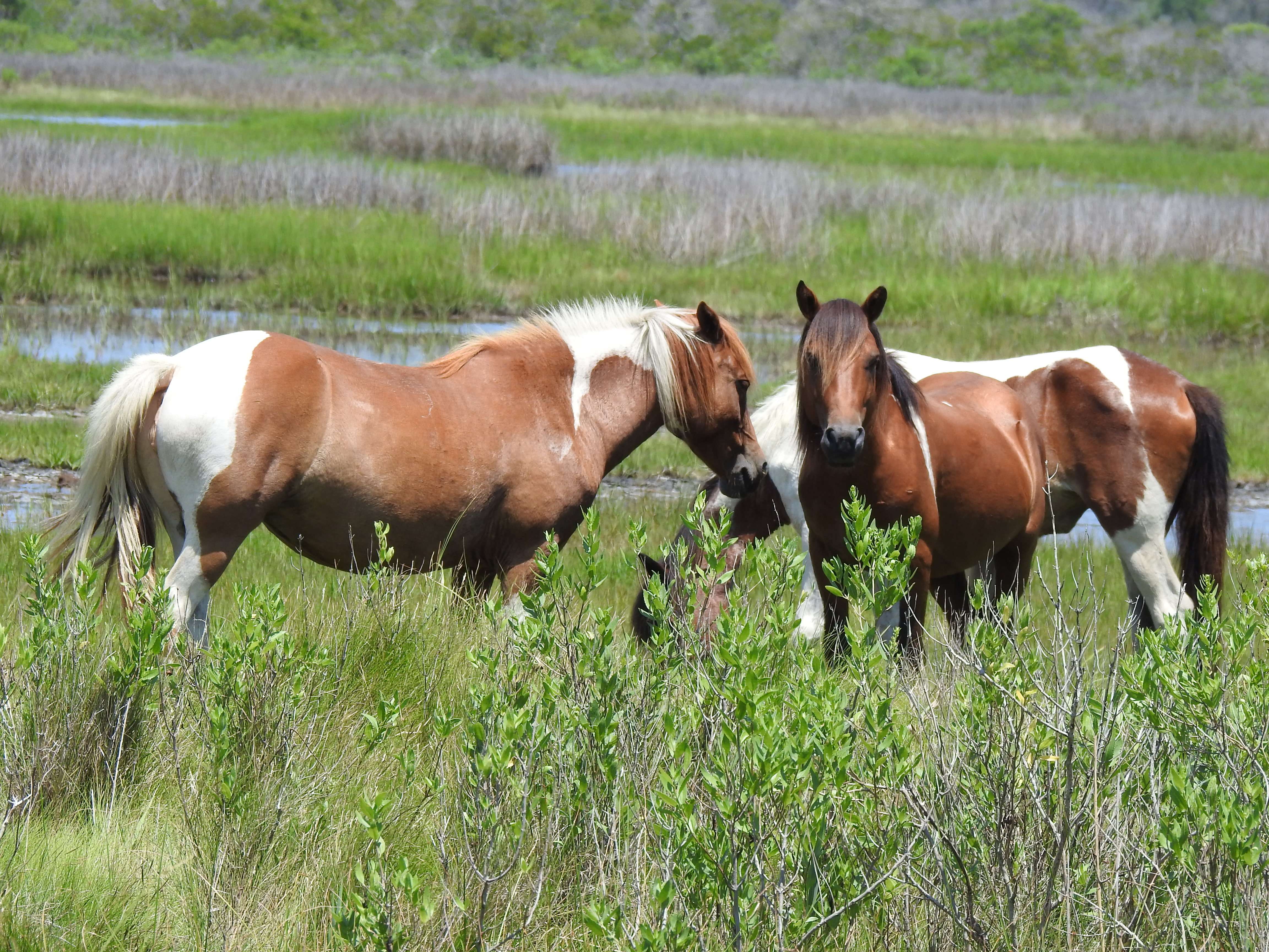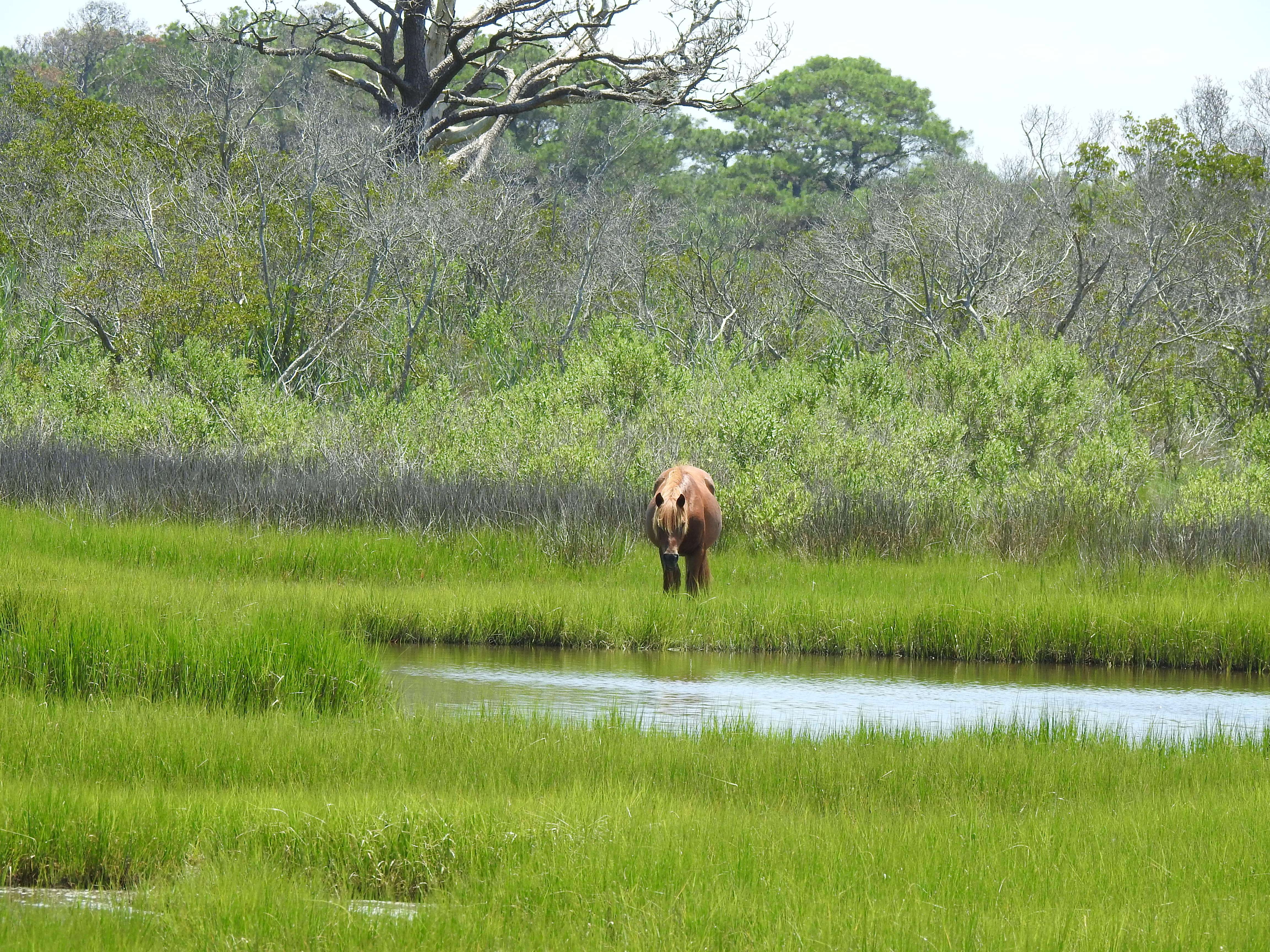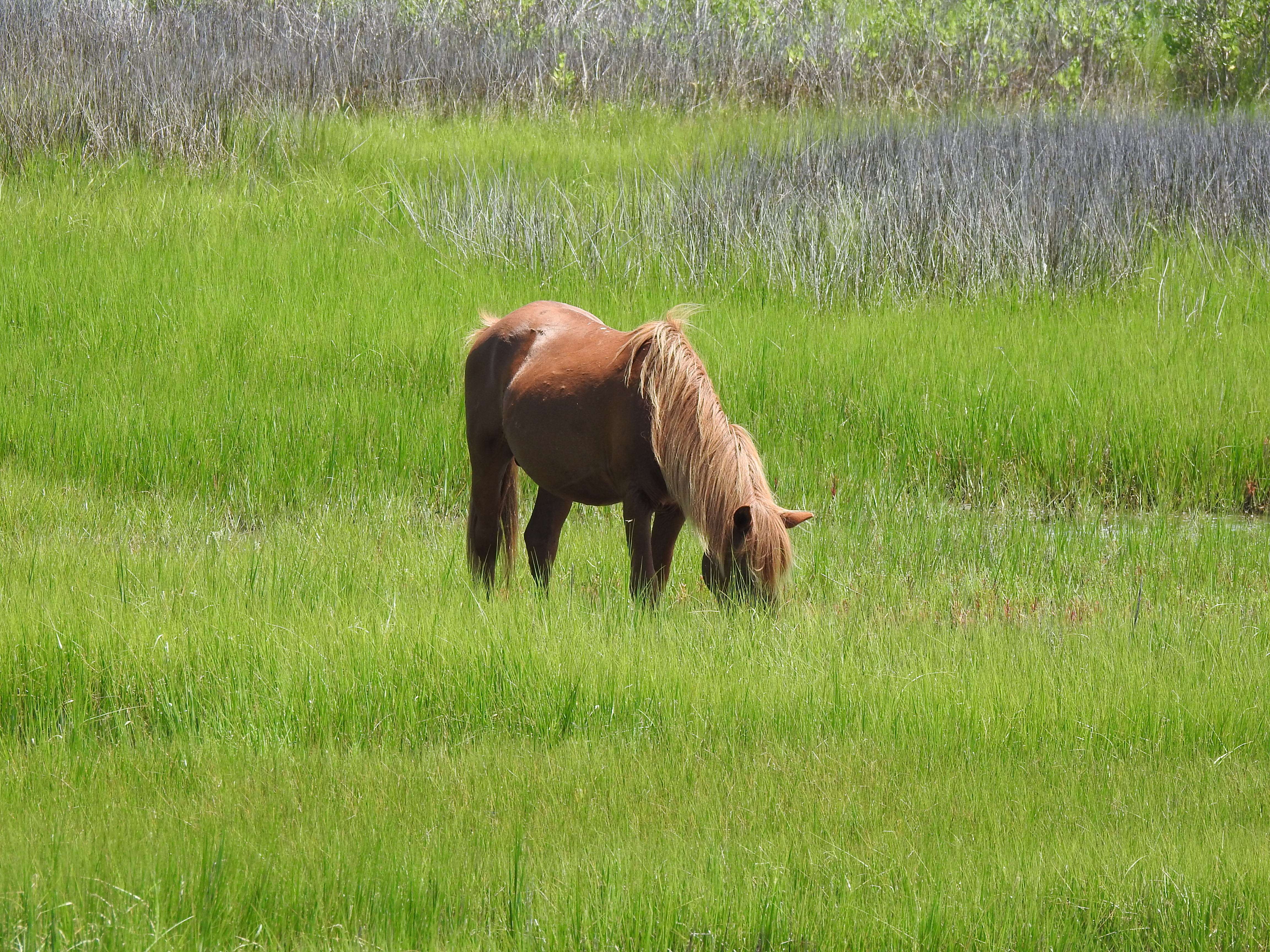 We were thrilled to find a lone horse off in the marsh, eating happily. He was a little shy (or just really hungry) but he finally looked up so we could see his face. We watched him for a while, enjoying this uniquely Assateague experience.