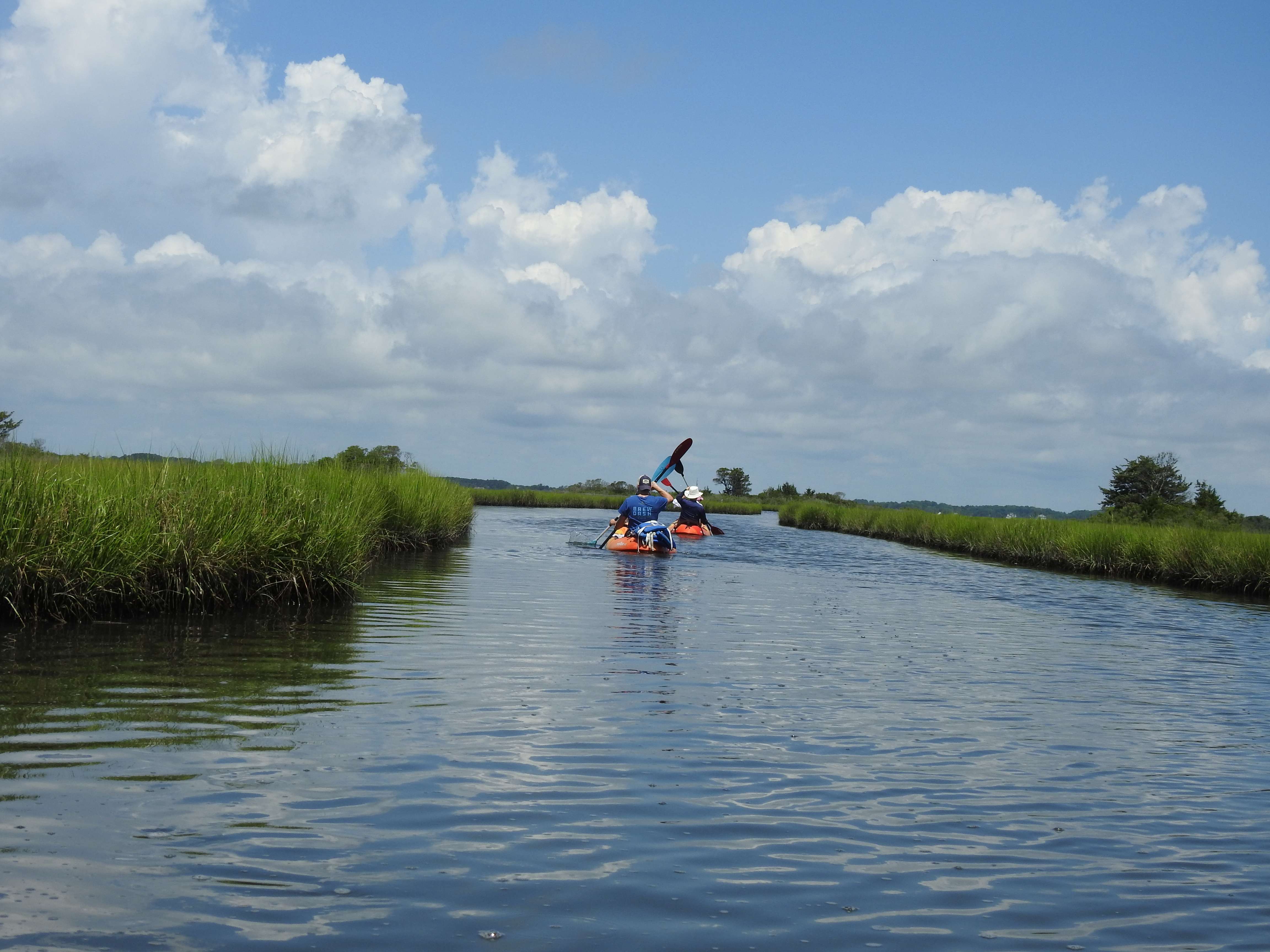 We travelled (by car) to several different places this summer and tried to find outdoor, Covid-safe activities at each location. This kayak tour was a great one. Staff (and customers) wore masks at check-in and while distributing gear but masks were not required on the tour, as social distancing was easy to maintain on a kayak. The tour was only 8 people (the 6 of us plus two others) and one guide. We got our gear, chose our kayaks (you had a choice between single and double kayaks), and headed out.
