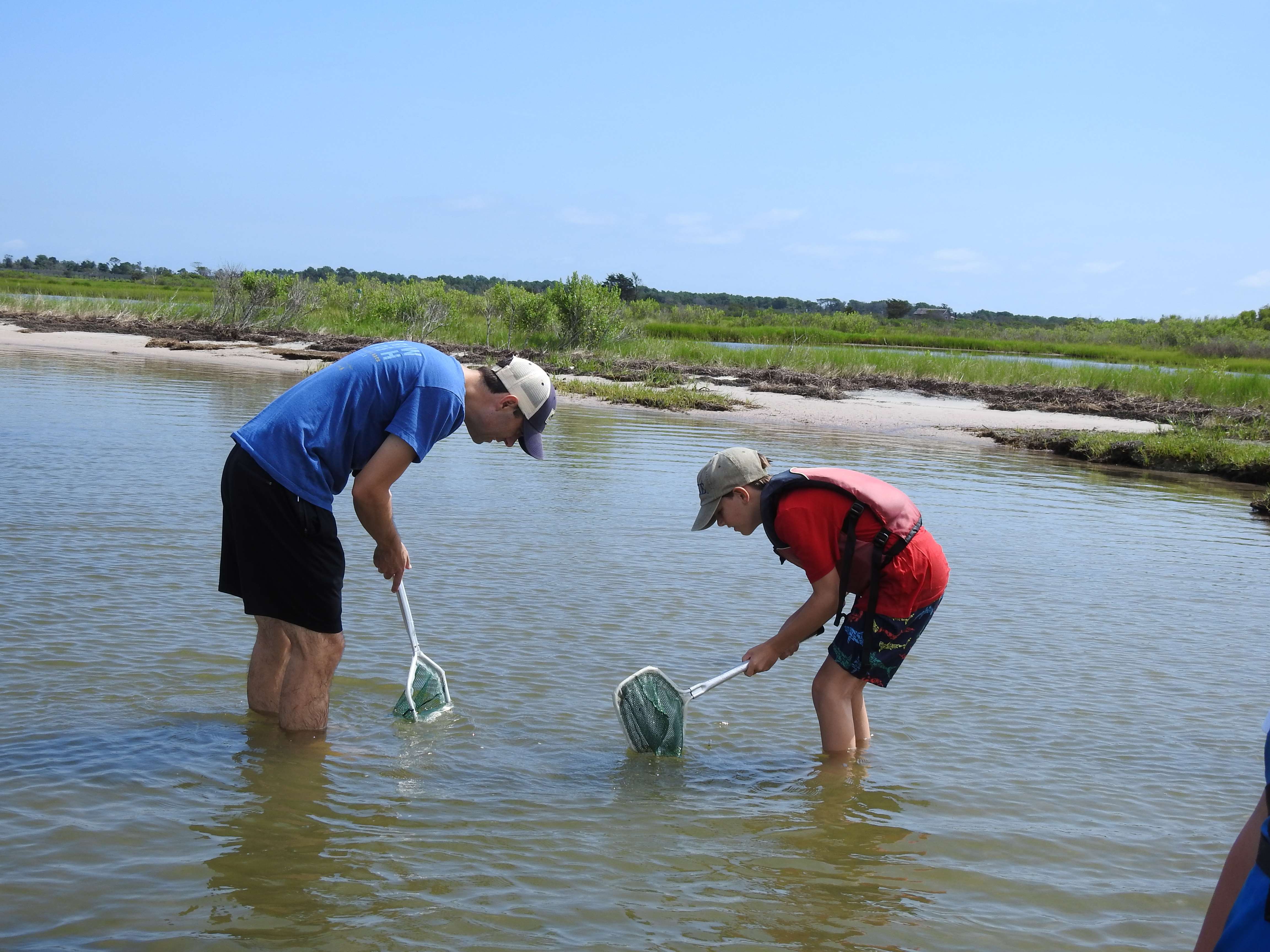Next our guide took out a seine net and let the boys drag it along shore for more exciting finds. They caught some more fish and crabs, which we collected in a container to view and learn about before letting them go again.