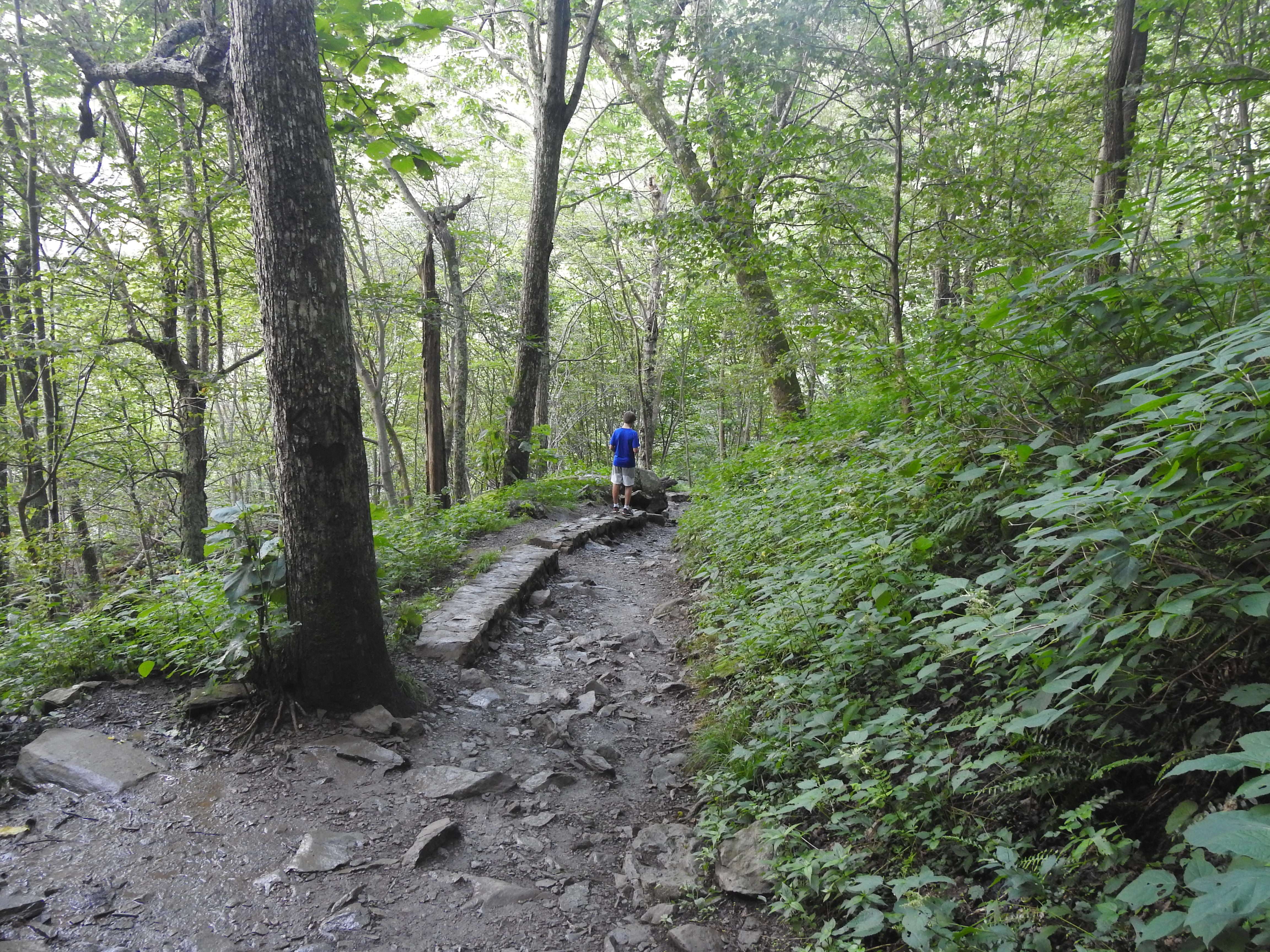 It was pushing 6:00 and we hadn’t even made it to our hike yet so we had to pick up the pace a bit. We had a bit of a hard time figuring out where the trailhead for Dark Hollows Trail was. We drove past it once and had to turn around at the Big Meadows visitor center. It was not a total waste of time though since we spotted our first deer there while we were turning around. My youngest especially had been hopeful for some wildlife spotting (especially bears!) and aside from insects, this was the first thing we saw. Such is the nature of wildlife! In any event, we did find the trail once we backtracked just a little bit.