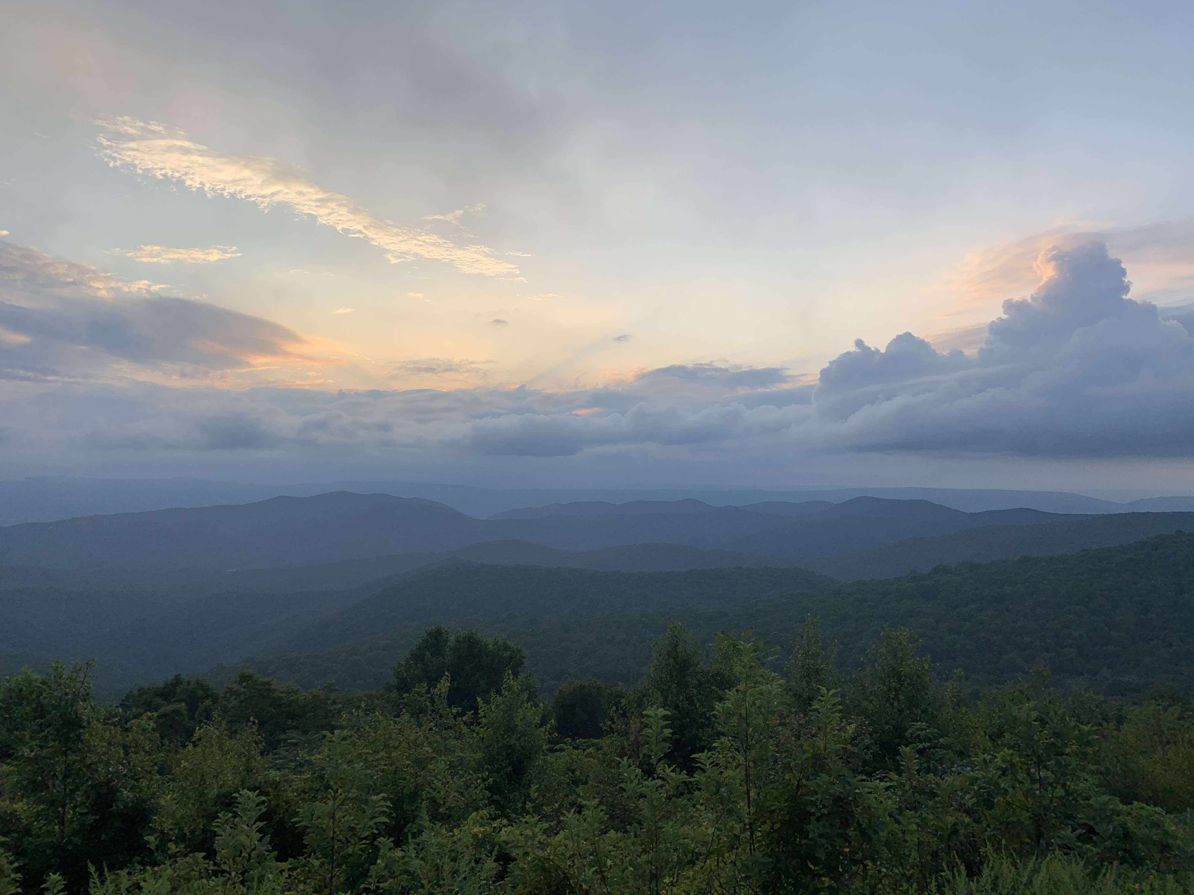It was getting close to 8:00 and we still had to drive to our hotel in Harrisonburg so we continued along Skyline Drive to the Swift Run Gap Entrance. But I couldn’t resist pulling over at two or three different overlooks to catch a glimpse of the stunning sunset over mountains. It was simply gorgeous.