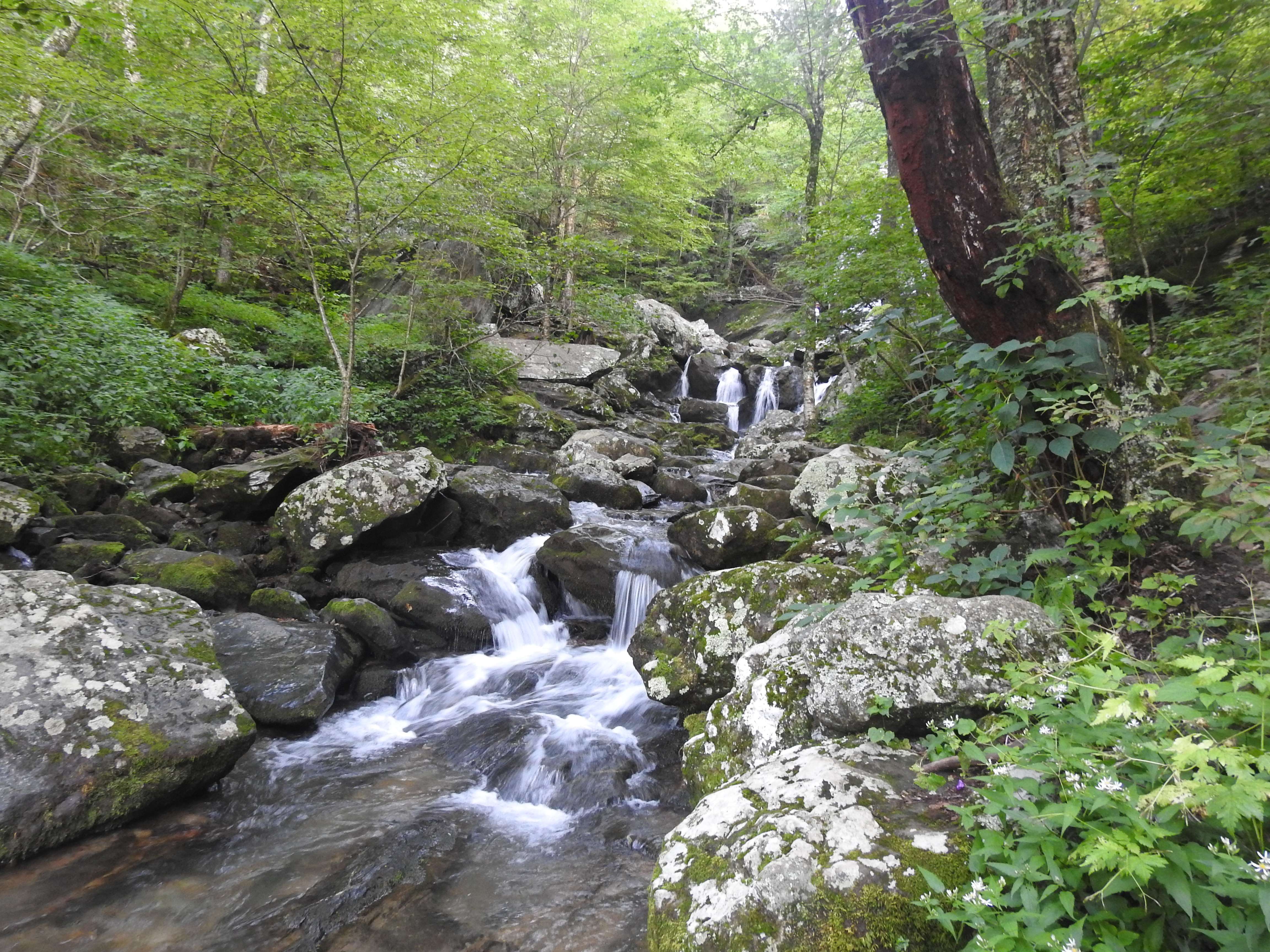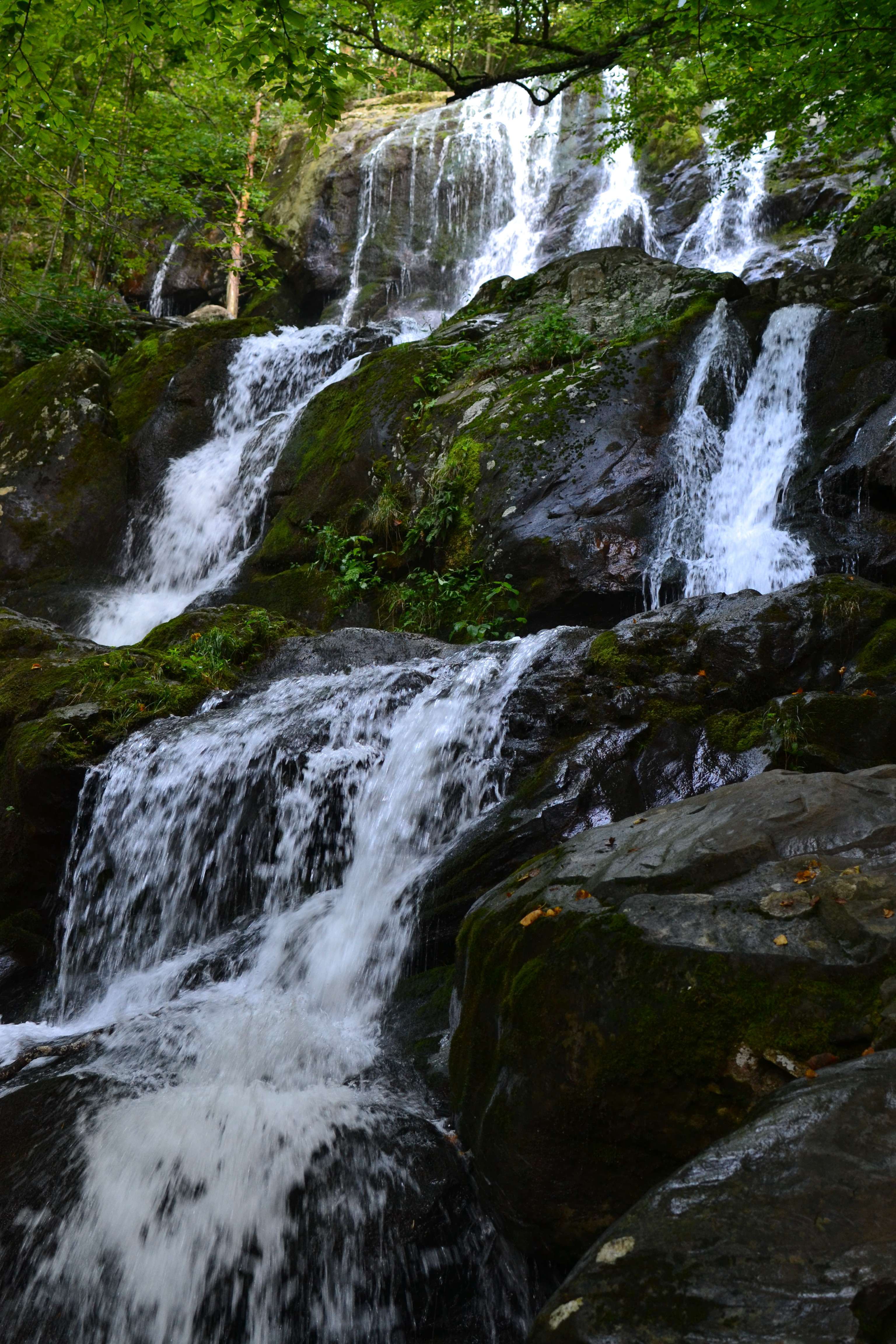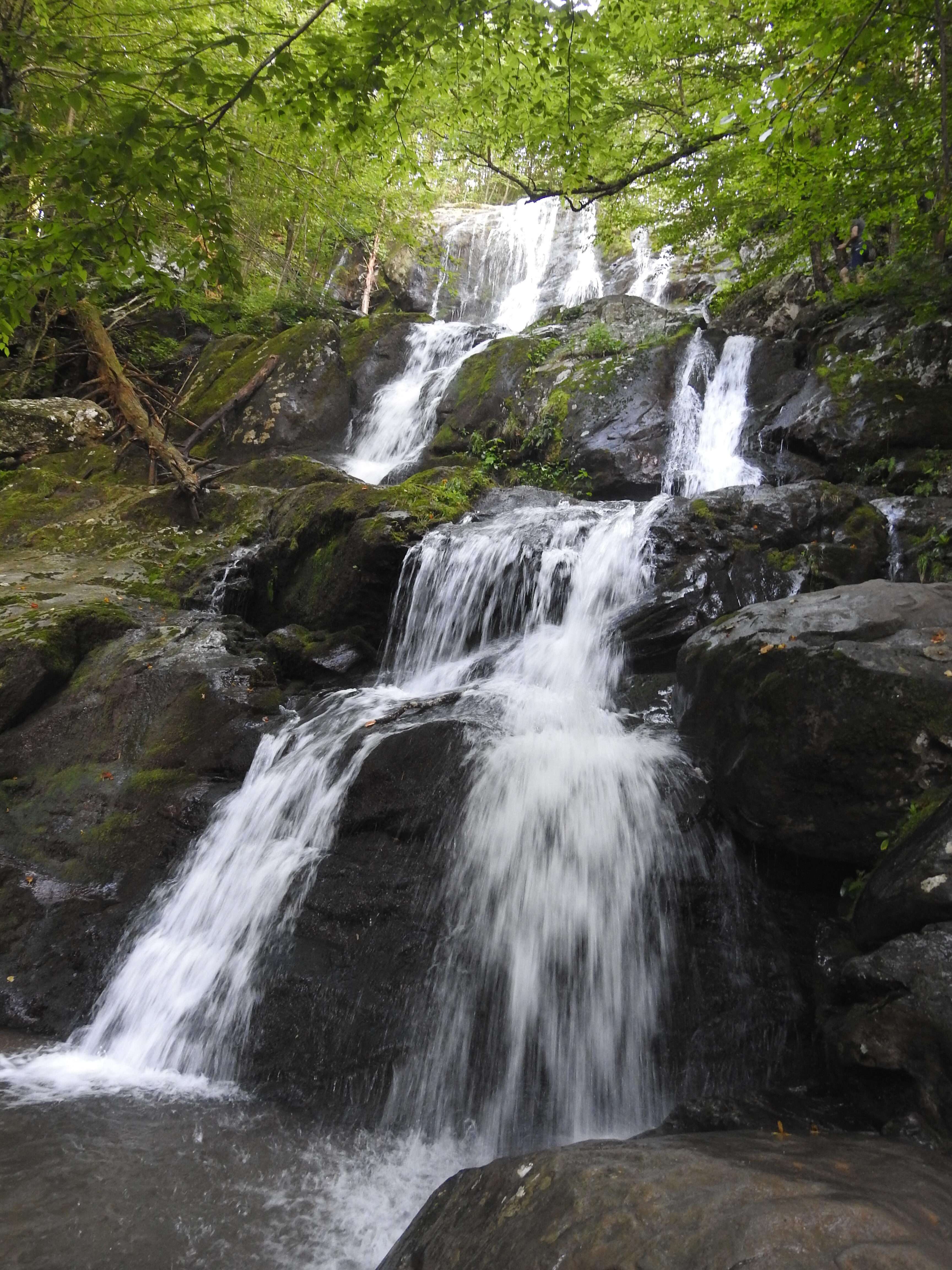 There are more than a dozen waterfalls accessible from trails in Shenandoah National Park but this one requires the shortest hike to reach it. As a result, it is probably one of the most crowded trails in the park. We definitely passed a lot of people on the trail (very few wearing masks, which was expected outdoors) and we had to wait our turn to get out on the rocks at the base in order to keep our distance from people. We were there towards the end of the day and it was definitely less crowded on the way out than it had been on the way in.
