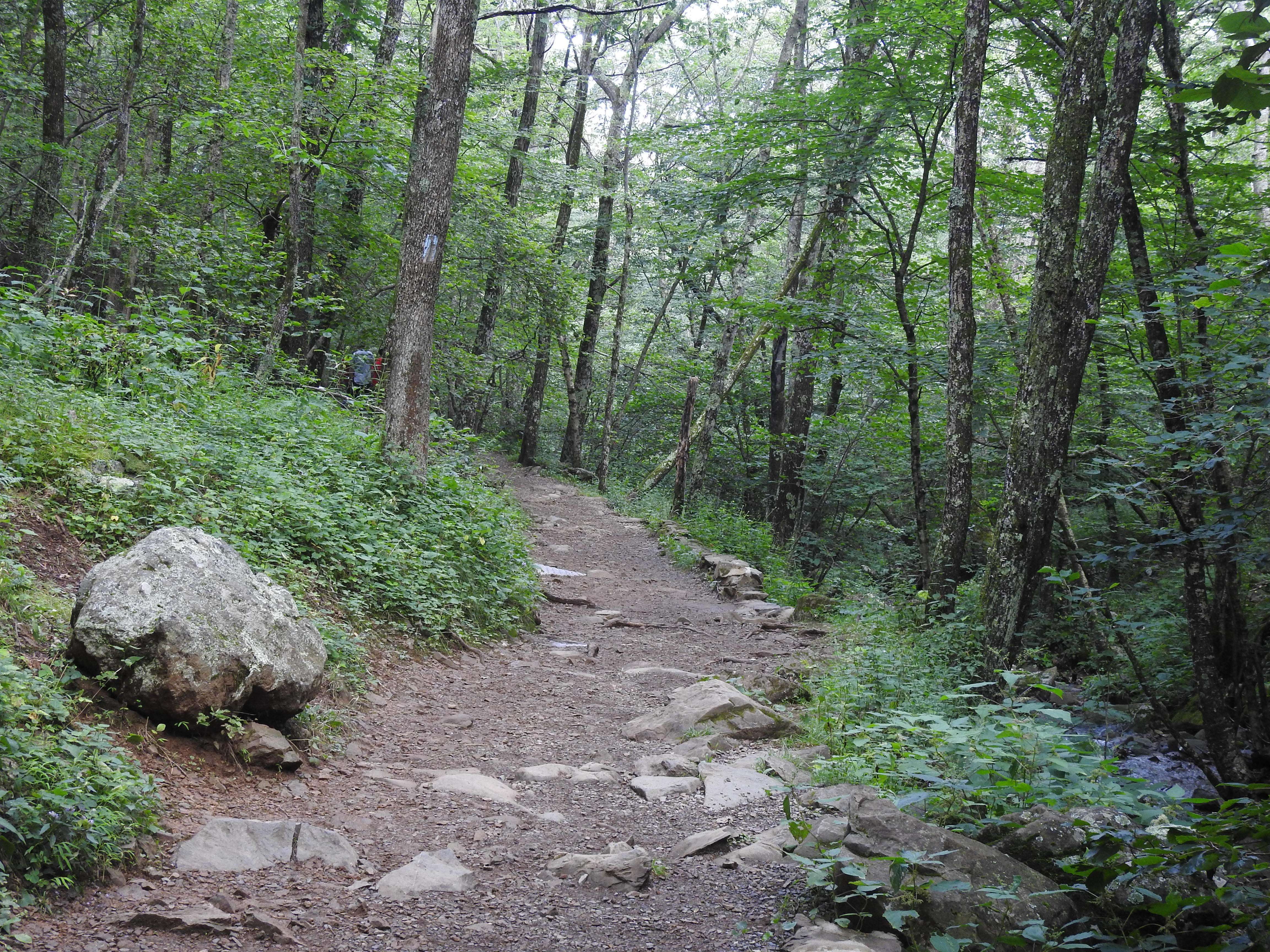 The Dark Hollow Falls Trail ultimately leads to the Rose River Fire Road and the much longer Rose River Loop Trail. While that trail will eventually lead you back to the parking lot, it is a 4 mile hike estimated to take 4.5 hours so make sure you know what you are getting yourself into. We did not have the time or the inclination for such a long hike so after getting our fill of the creek views, we headed back up.