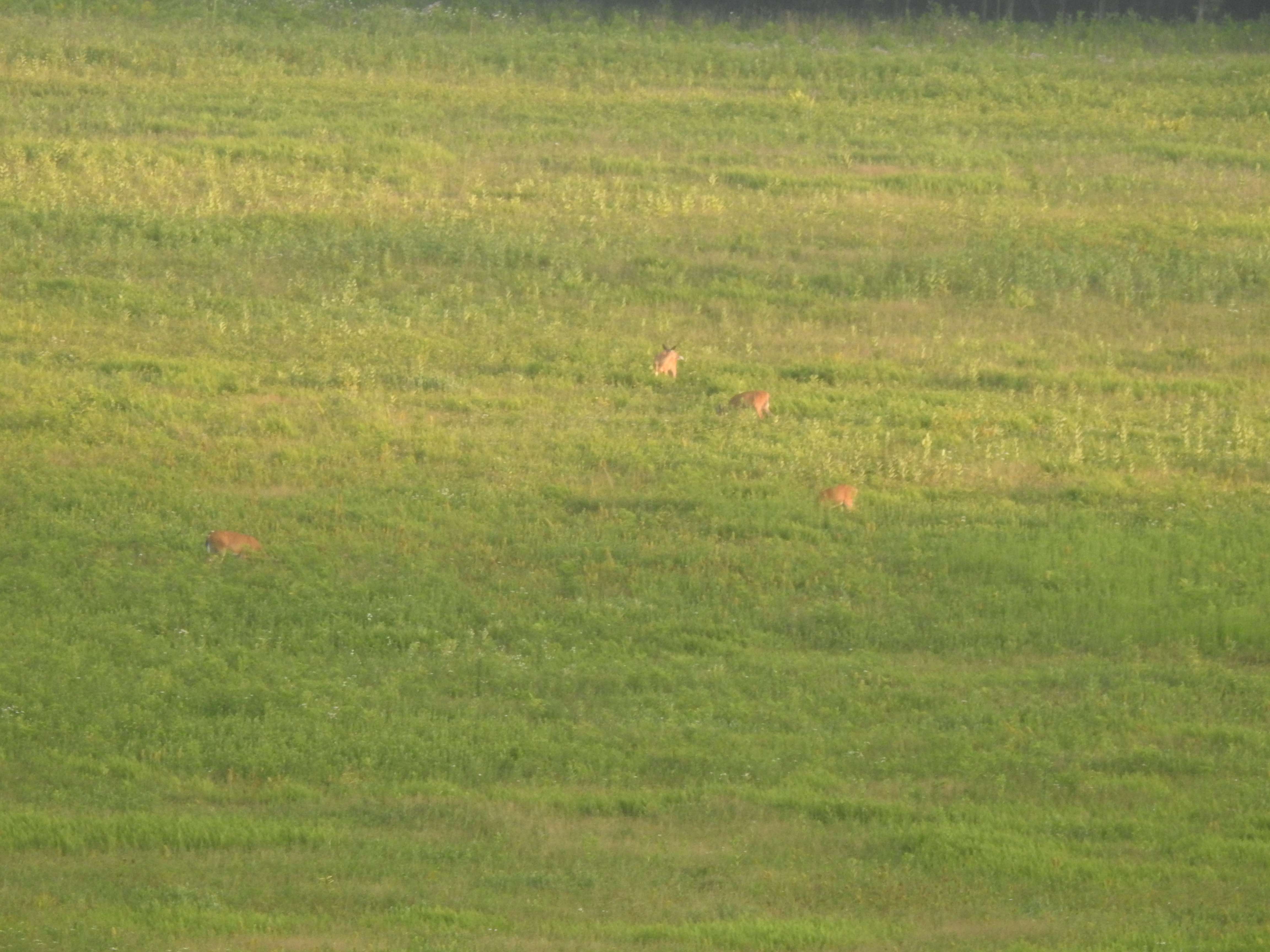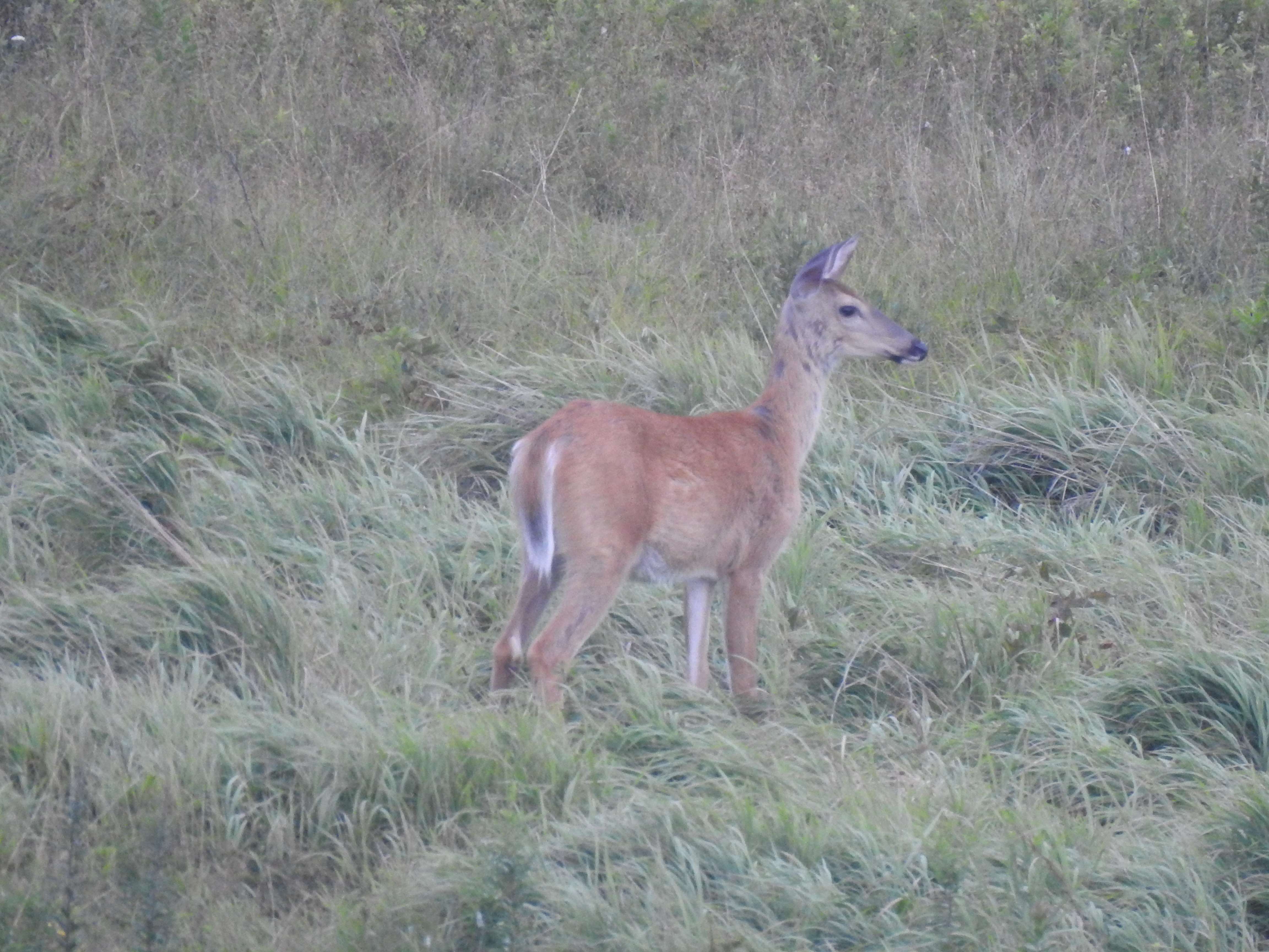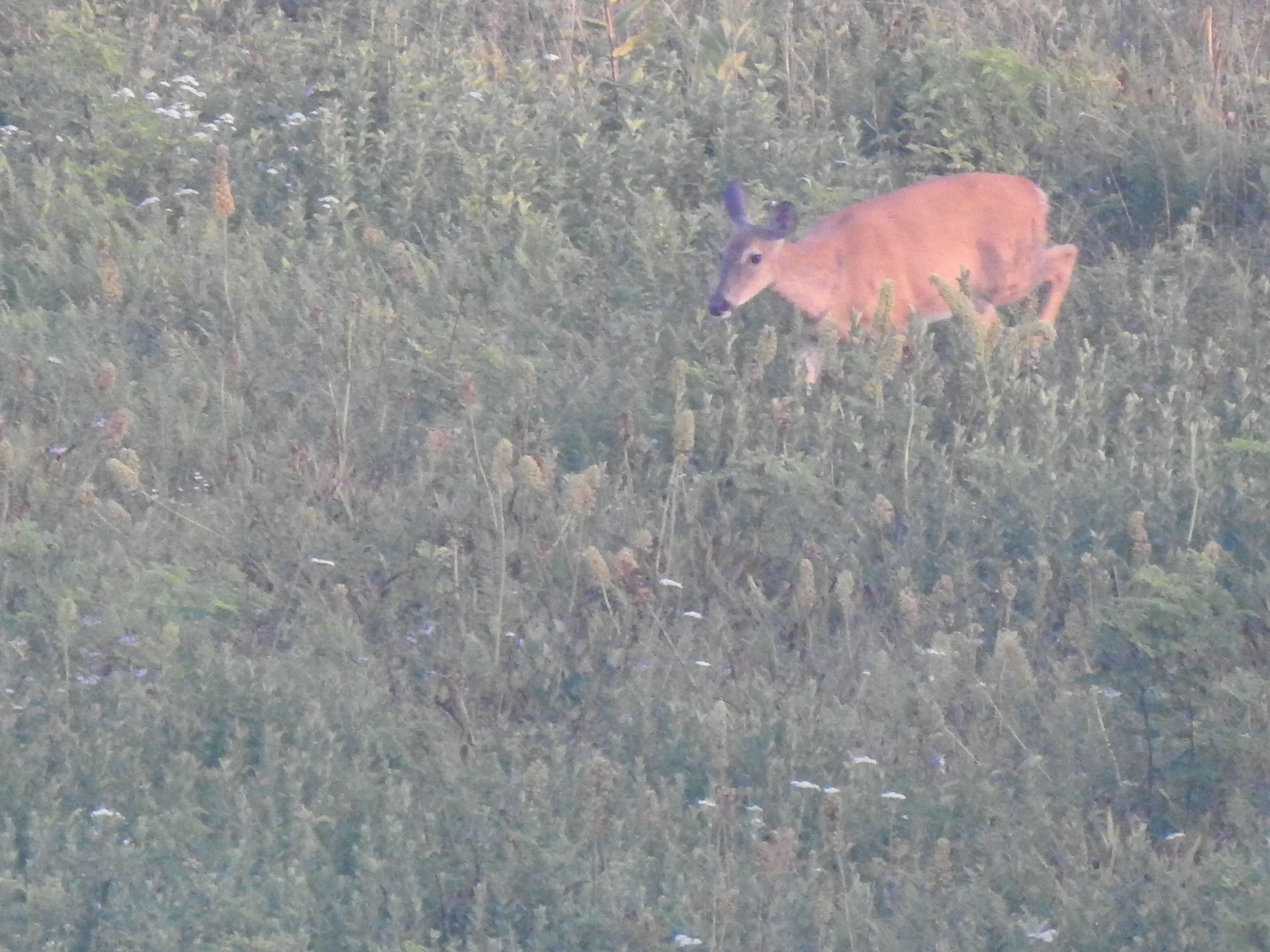 It was past dinner time and the sun was getting close to setting, so we were ready to wrap up our Shenandoah National Park adventure. We stopped at the Byrd Visitor Center to use the bathrooms before hitting the road and noticed tons of people across the street in Big Meadows. Big Meadows is exactly as it sounds – a big meadow. It is full of grasses and wildflowers and berries and attracts tons of wildlife, especially at dawn and dusk. All the people we saw were staking out a spot to watch the wildlife emerge for their evening feeding. Although we didn’t set up for long-term viewing, we did walk across the street and enjoy watching the deer from afar.
