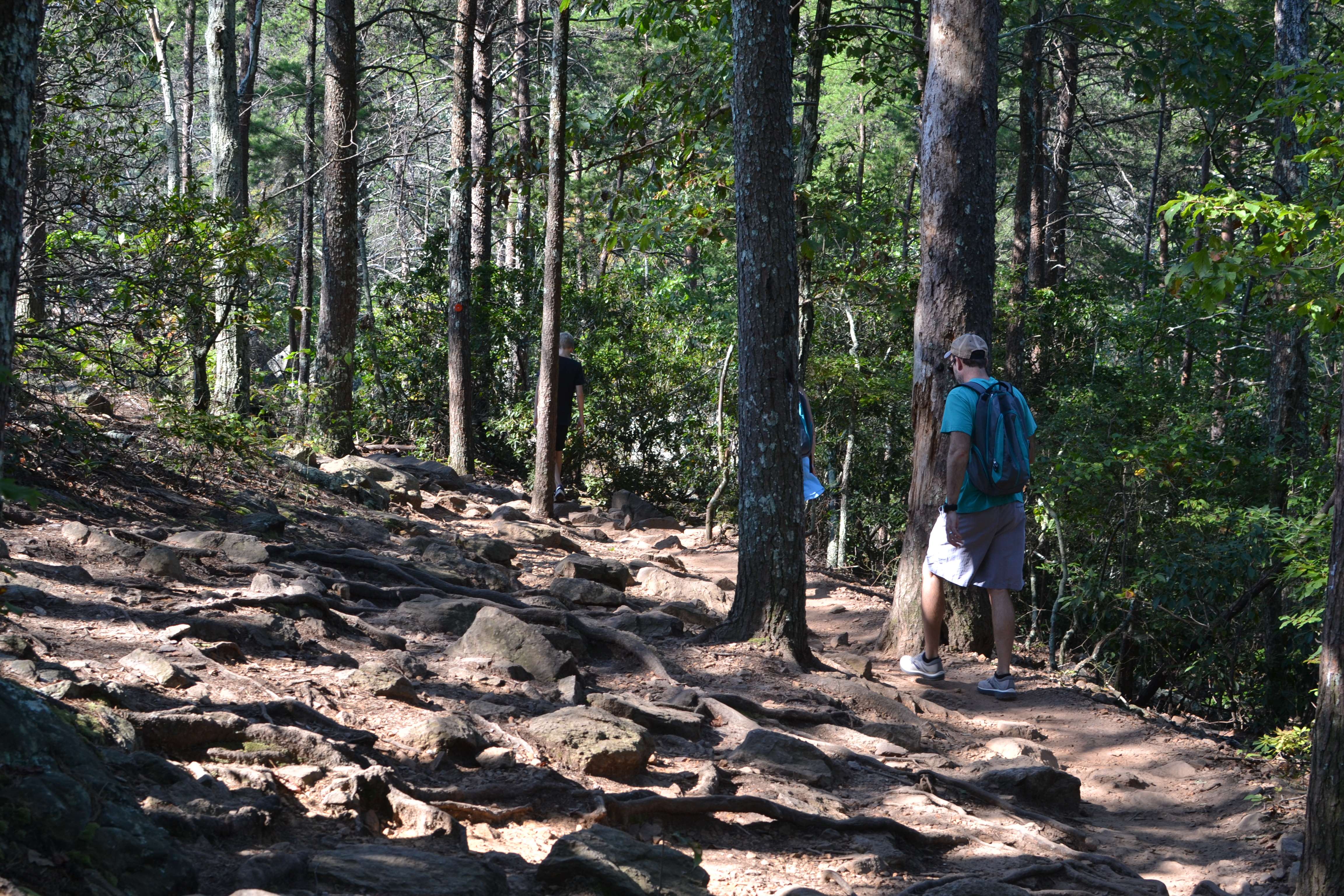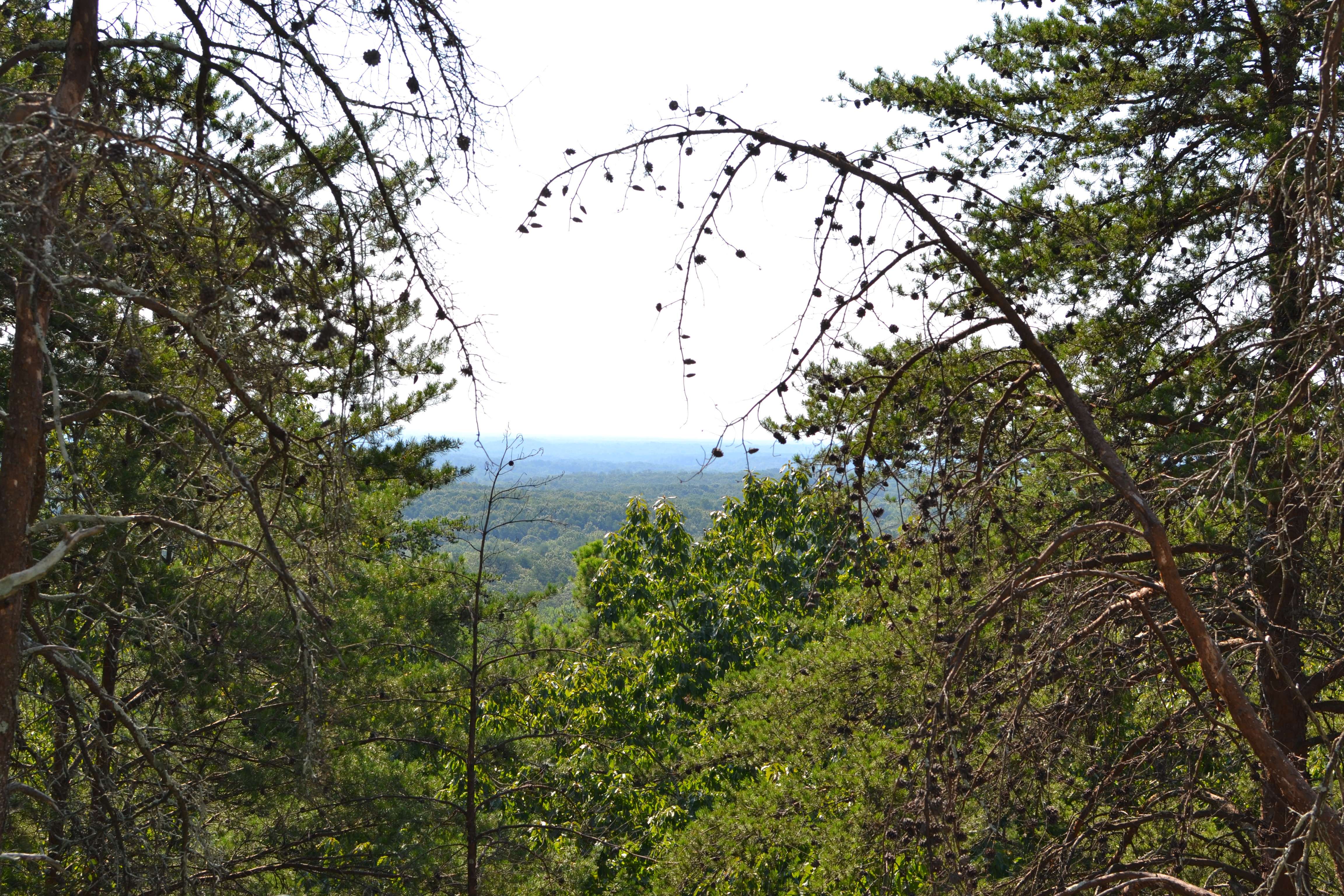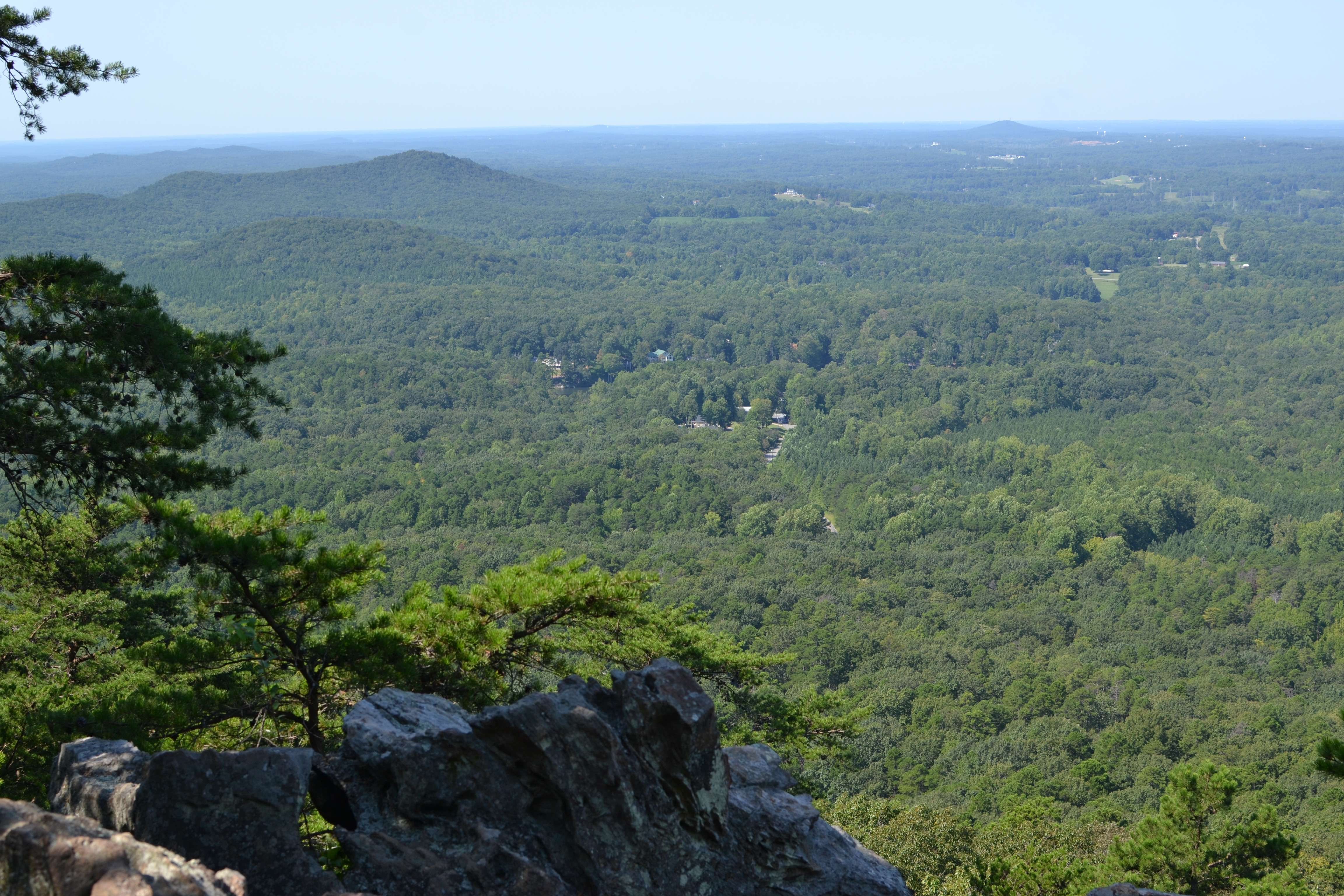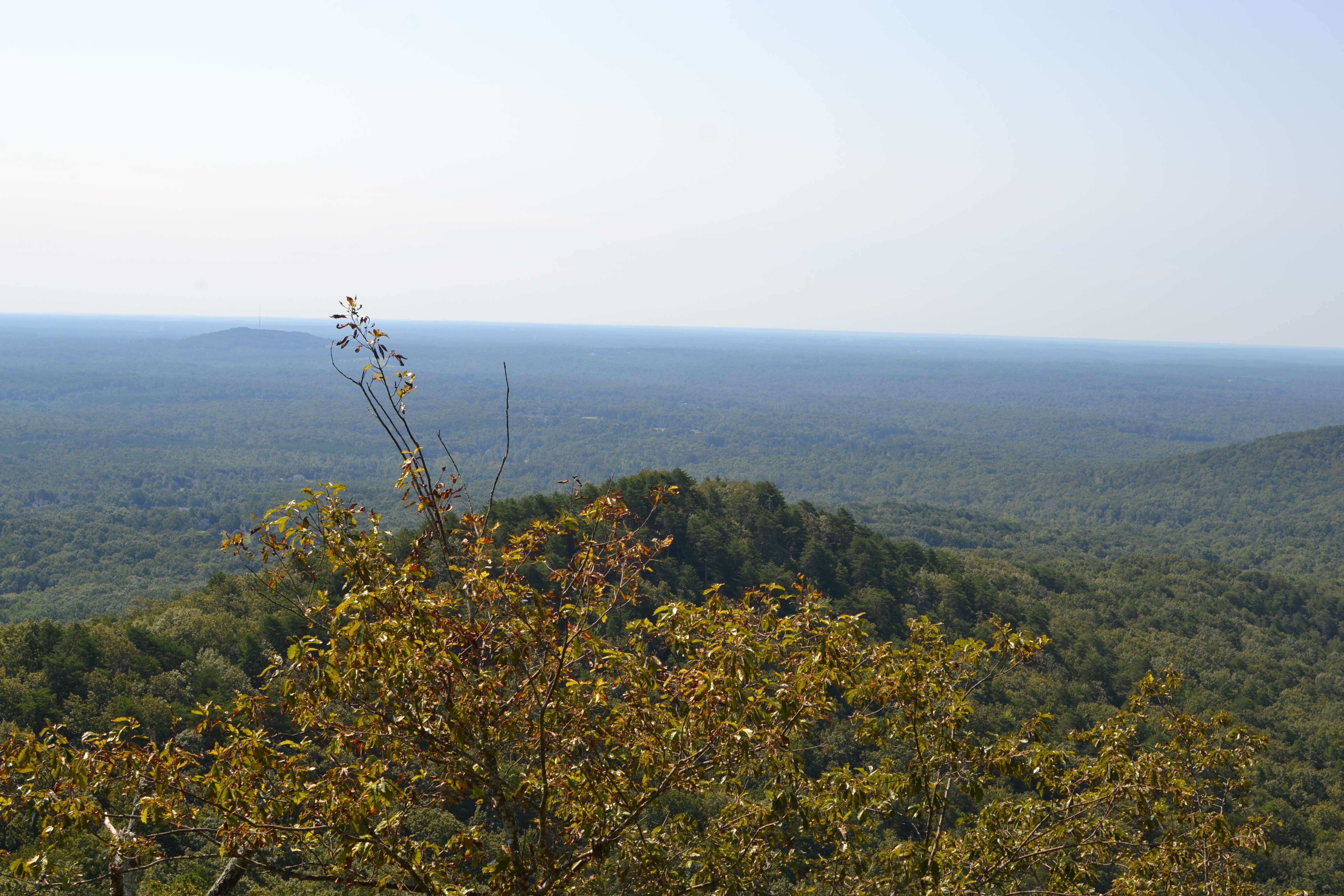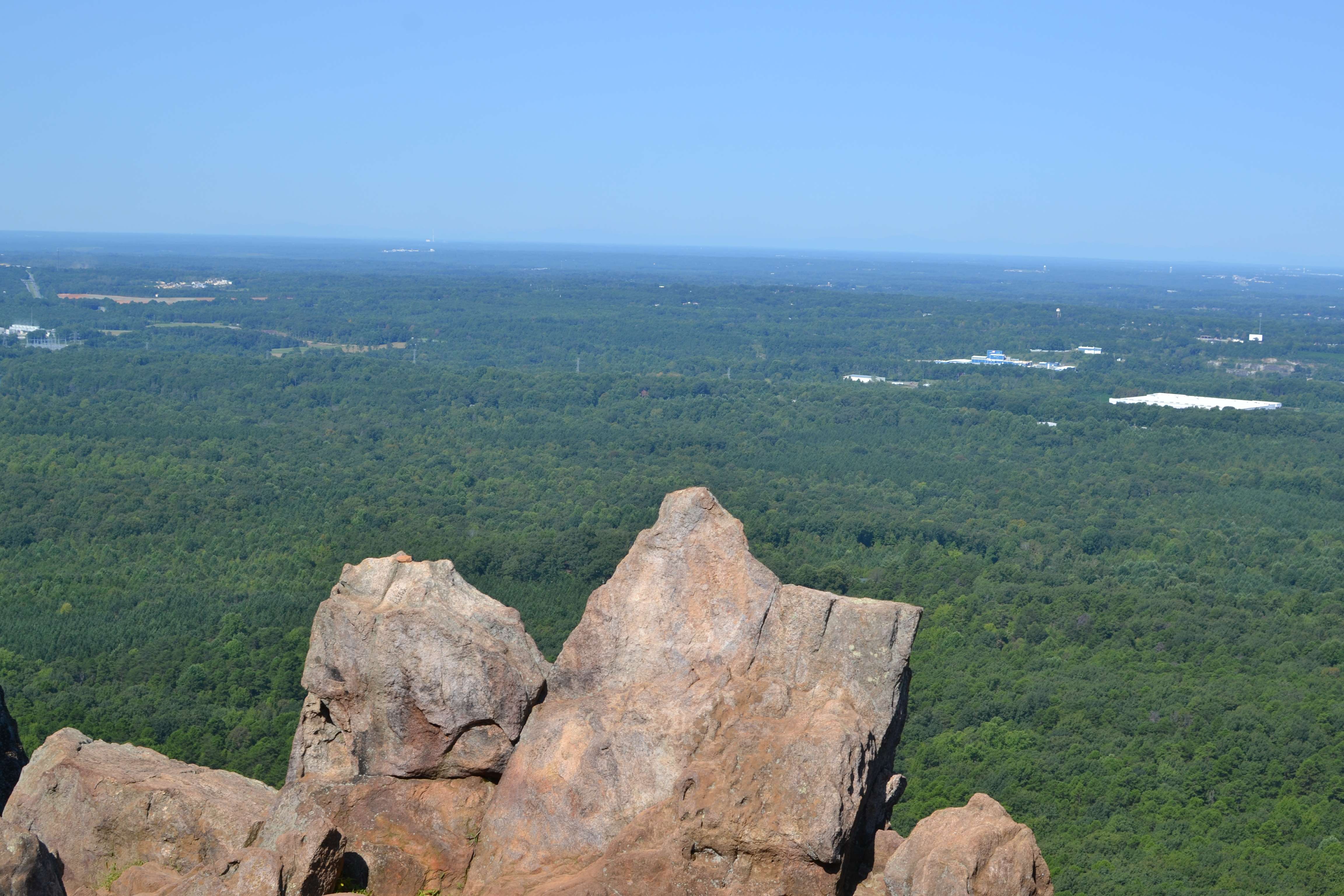We came to a series of small openings off the side of the trail. Each had its own unique view of the surrounding area and far off in the distance we could see the Charlotte skyline. It was really pretty but I will admit to being confused about whether or not we had reached the summit. The trail was no longer obvious and people were stopping at the various vantage points to take pictures and then head back down. It seemed like we were at the end of the trail but there was no major opening or clearing like I had envisioned.