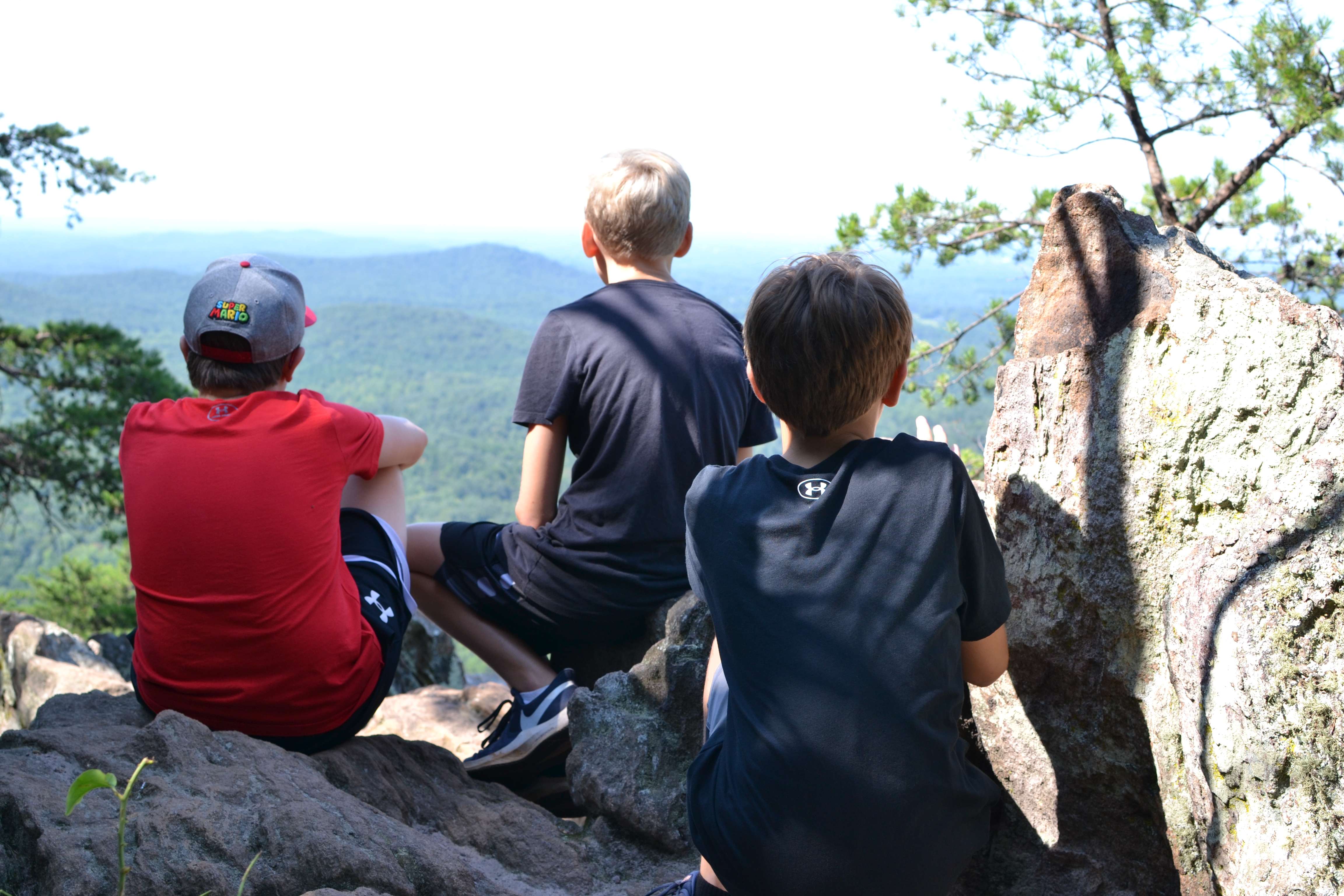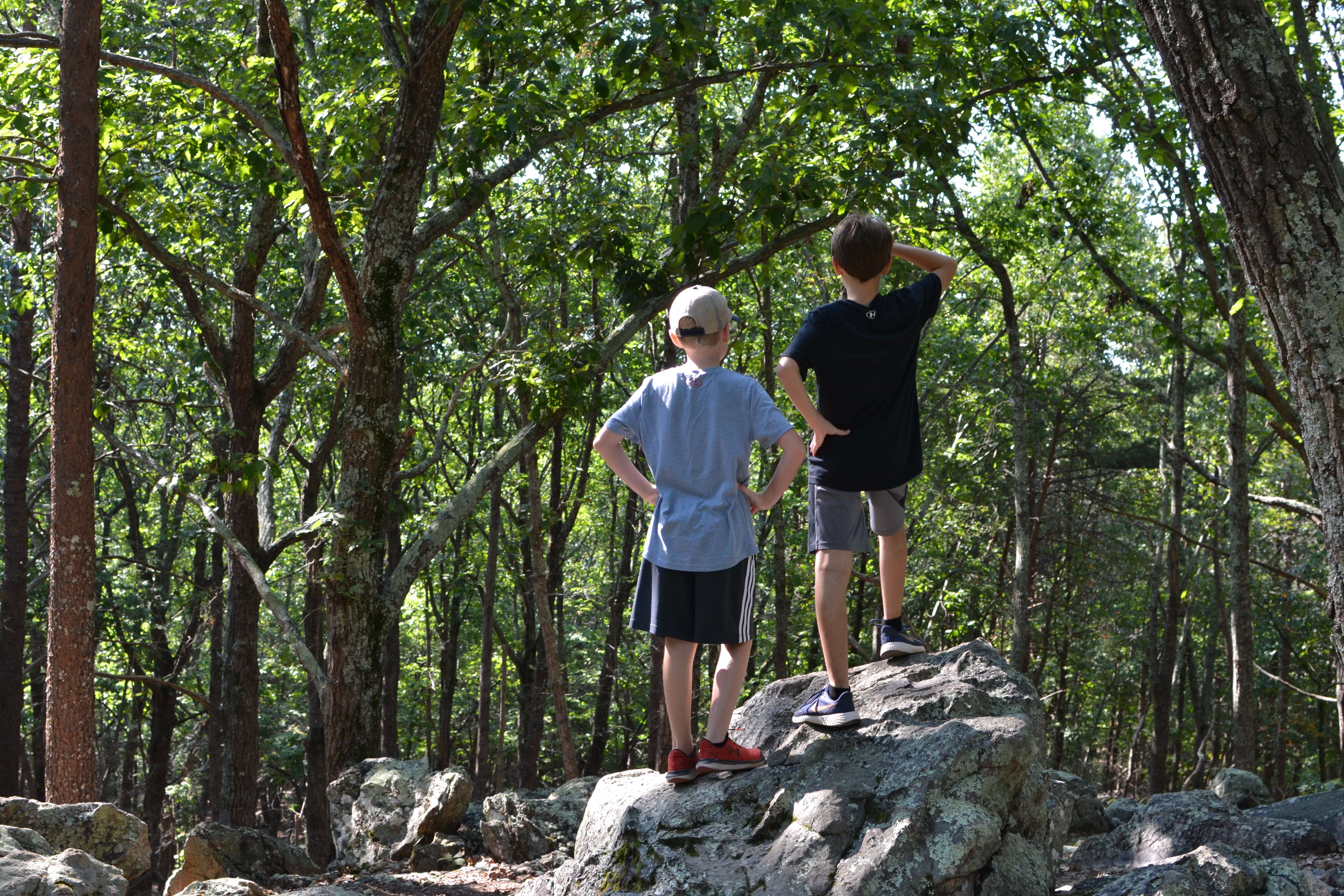 Crowders Mountain is a surprisingly rugged state park in Gaston County, NC. Its two peaks, The Pinnacle and Crowders Mountain, are challenging to summit and the trails leading there are more strenuous than their “moderate” rating lets on. We made the mistake of coming here when the boys were 3.5 and 5.5, which is way too young for the trails to the top. The boys enjoyed the lower section of the trail, climbing along the rocks on the side of the path, and having a picnic lunch, but we realized almost immediately that we had absolutely no shot at making it to the top at that point.