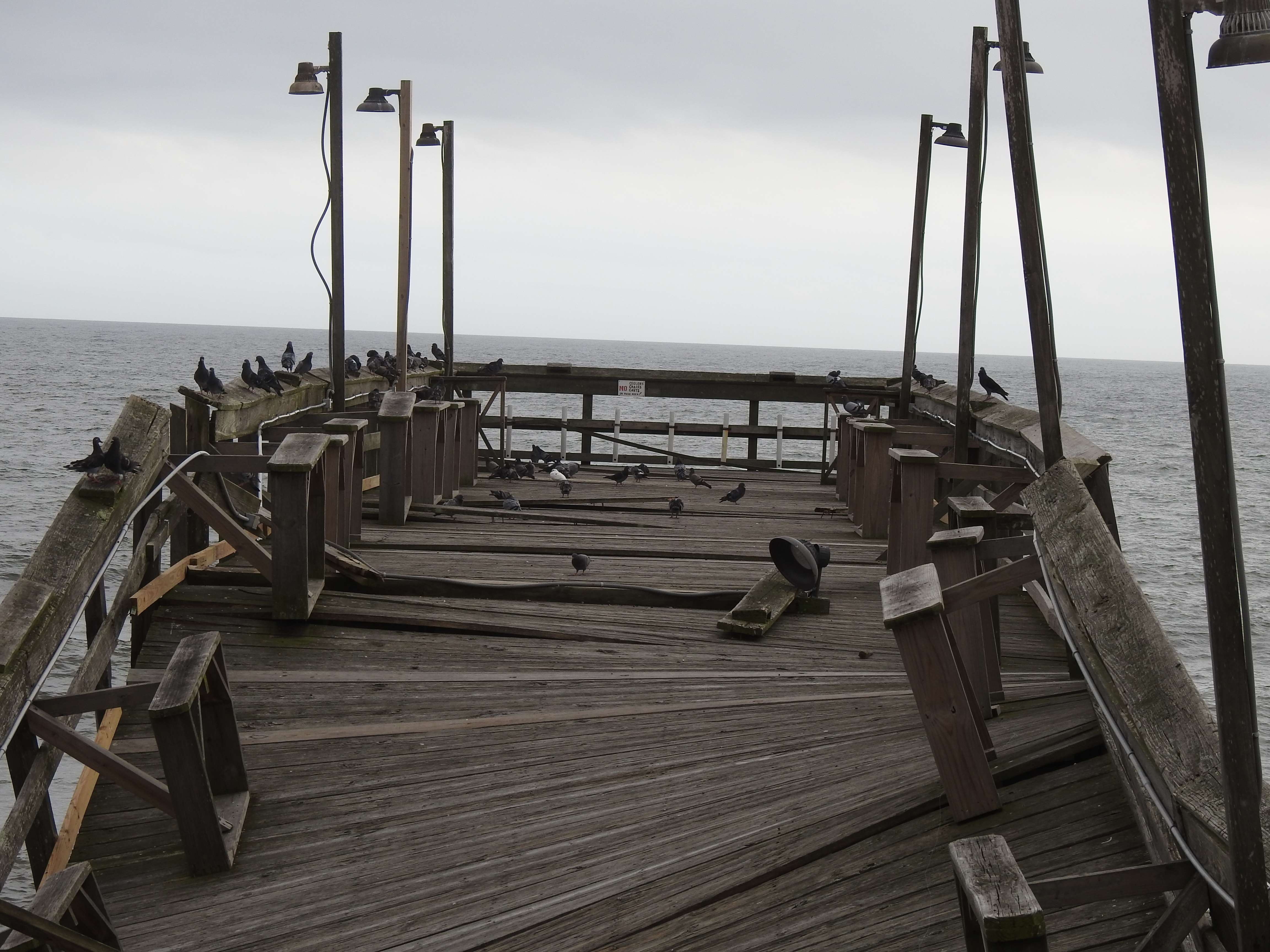 We also walked down to the pier one day. From a distance we could see that it was damaged but saw that there were still people fishing from it so part of it was still open. While in the summer (or at least a non-covid summer) this place is sure to be hopping with an arcade and grill and ice cream shop, in the fall it was just fishermen and people out taking a stroll. The $1 entrance fee goes towards maintaining the privately owned pier.