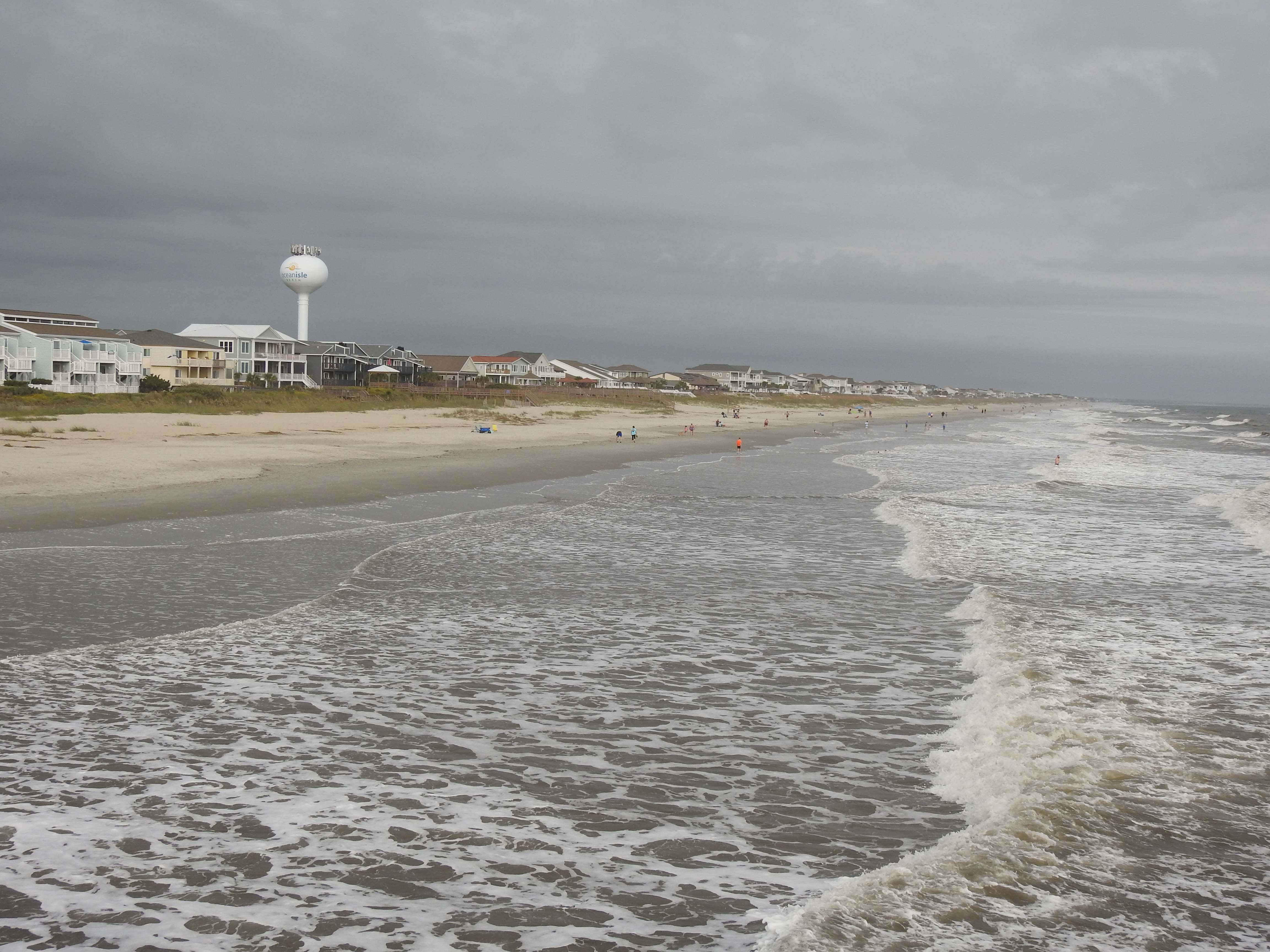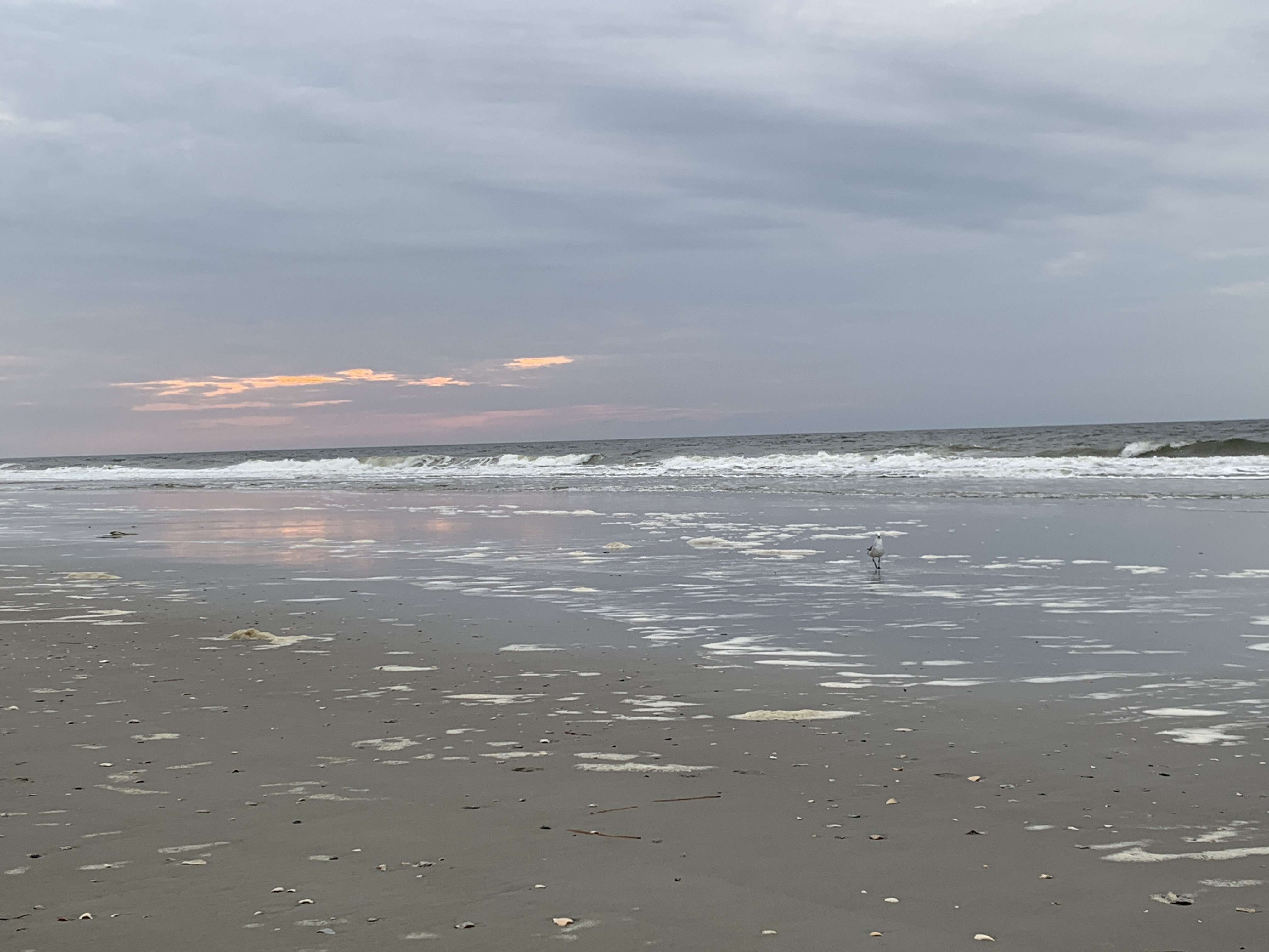 We entered the beach from the Goldsboro Street public beach access. A long elevated boardwalk took us up over the dunes, where turtles make their nests from May through October (we just missed it!). The beach was fairly wide where we were, although I walked all the way to the eastern end of the island one morning and there is significant erosion at that end of the island. The beach was flat near the dunes with a gentle slope as you got closer to the water (which was cold in October!).