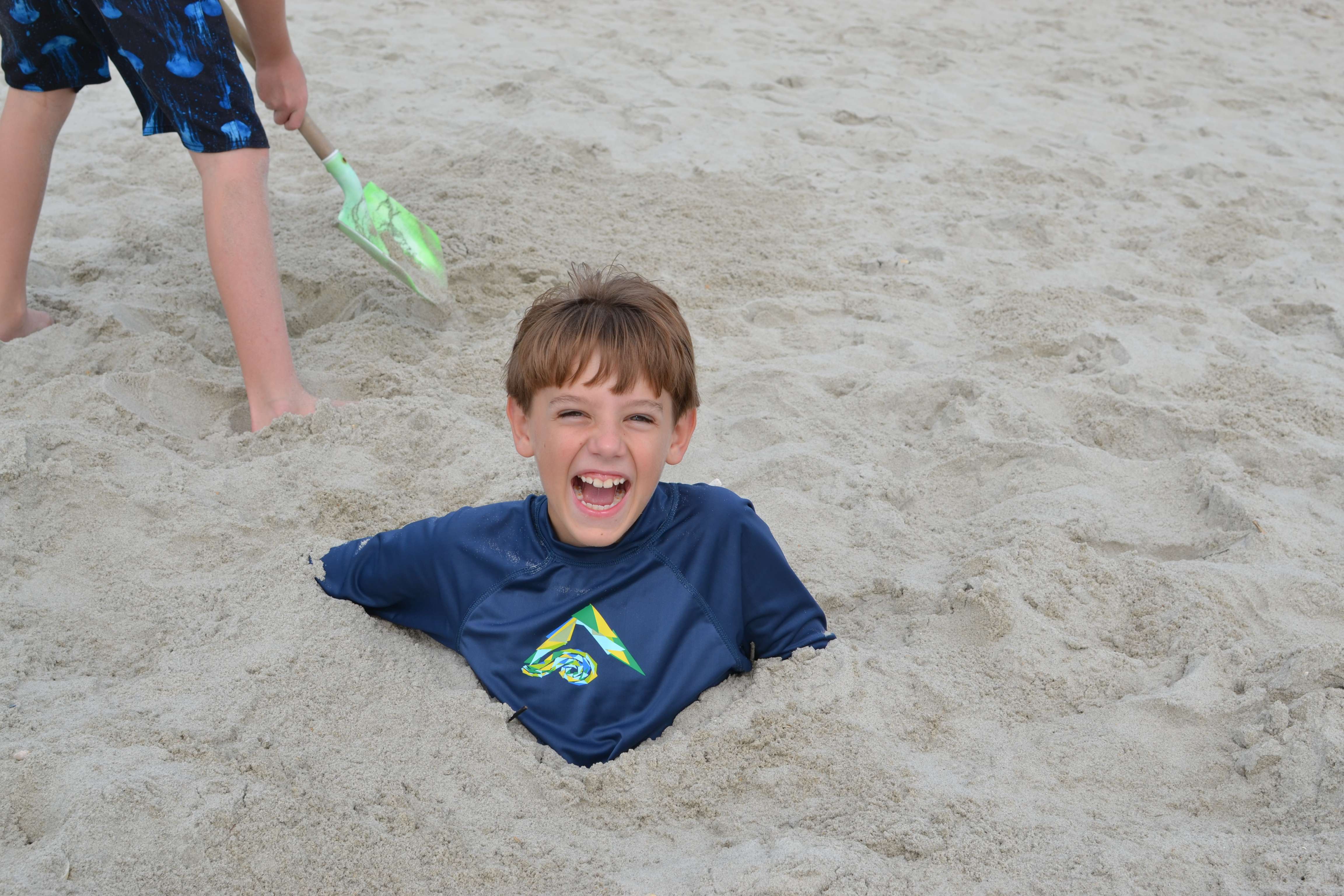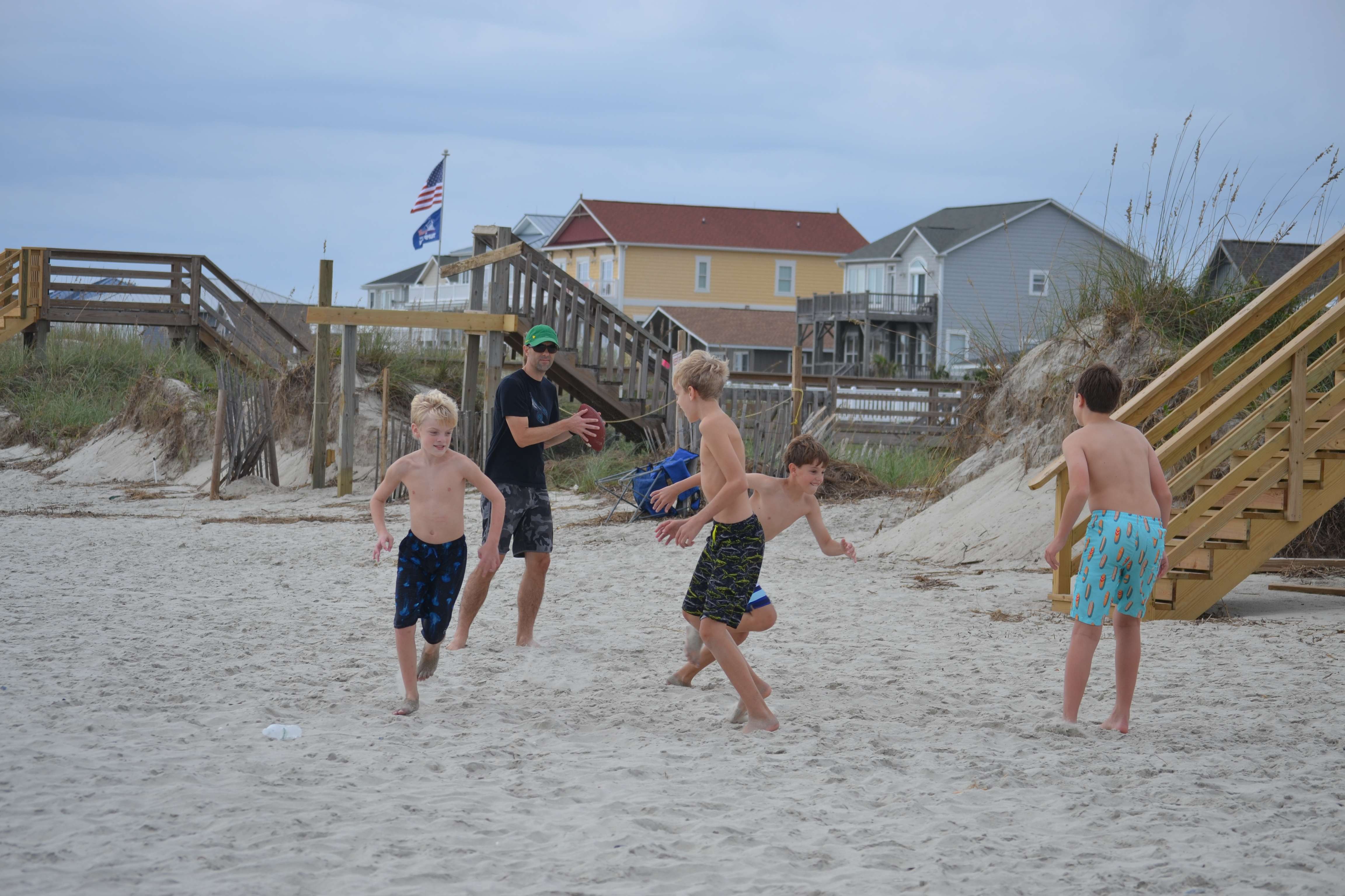 The water was cold so the kids didn’t go in for long (or the adults at all). But the weather was still nice and the kids were able to build sand castles, bury each other in the sand, play football, and throw the frisbee. It was exactly what I expected of a fall beach visit – perfect weather for fun on the beach but not in the water.