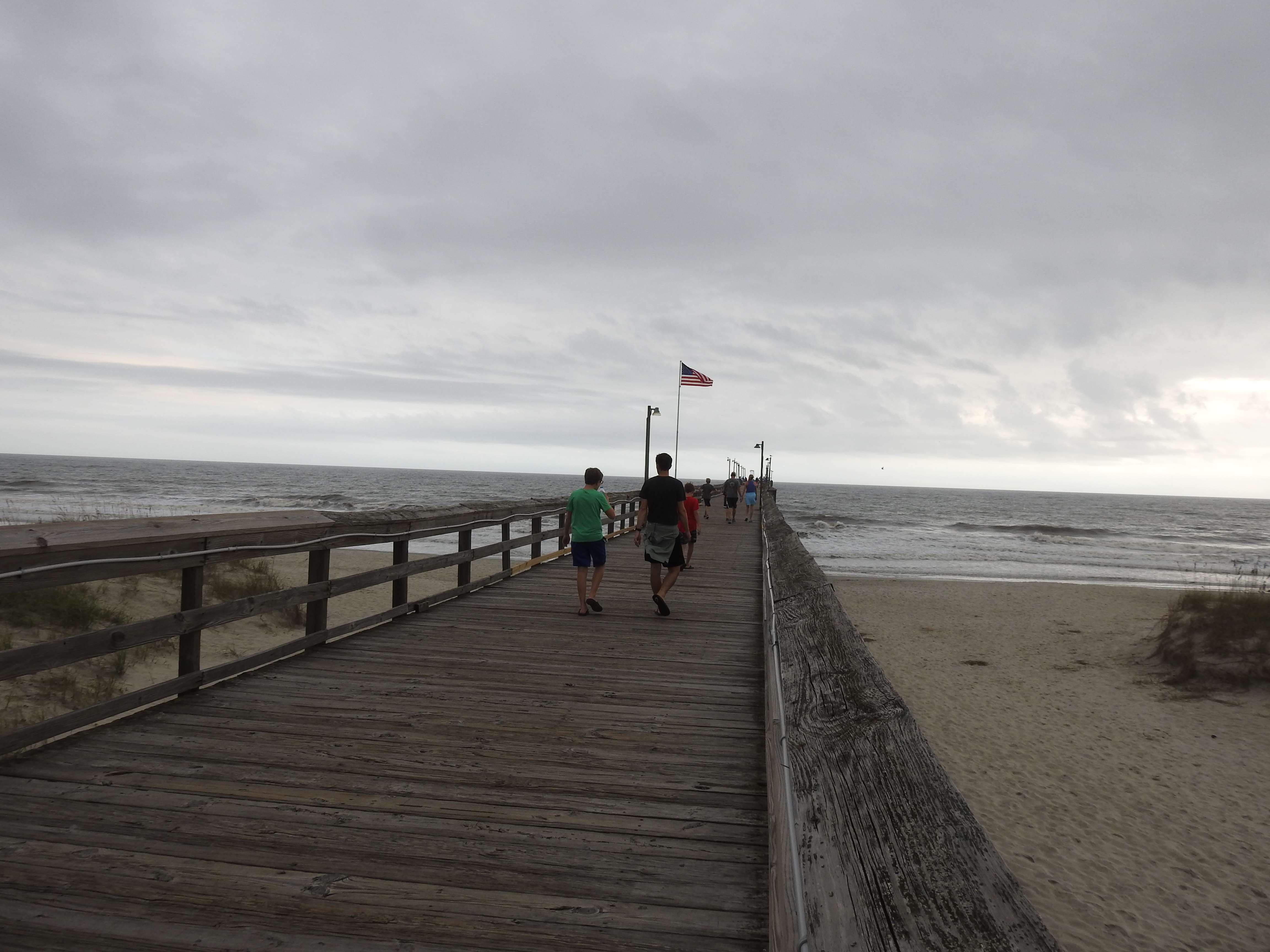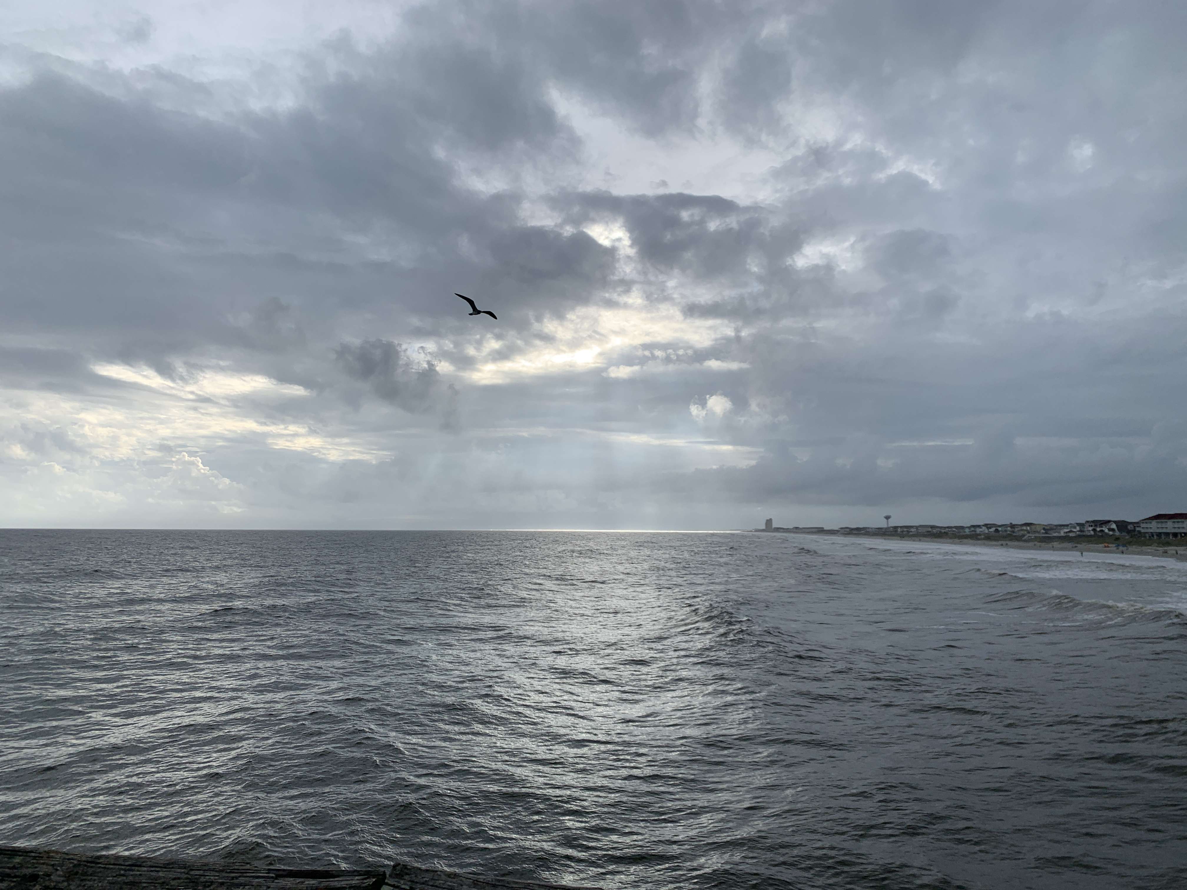 We found out that the damage to the pier was recent. Hurricane Isaias made landfall on Ocean Isle Beach as a Category 1 hurricane in August of this year and damaged the pier, as well as several other private boardwalks and beach access stairs along the beach. The 60+ year old pier will be rebuilt in the future, but for now the damaged section is roped off. The birds didn’t seem to mind having the end of the pier to themselves.